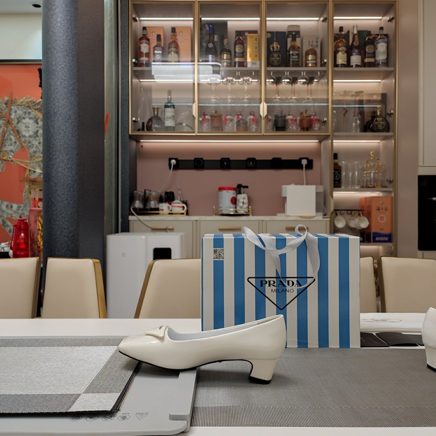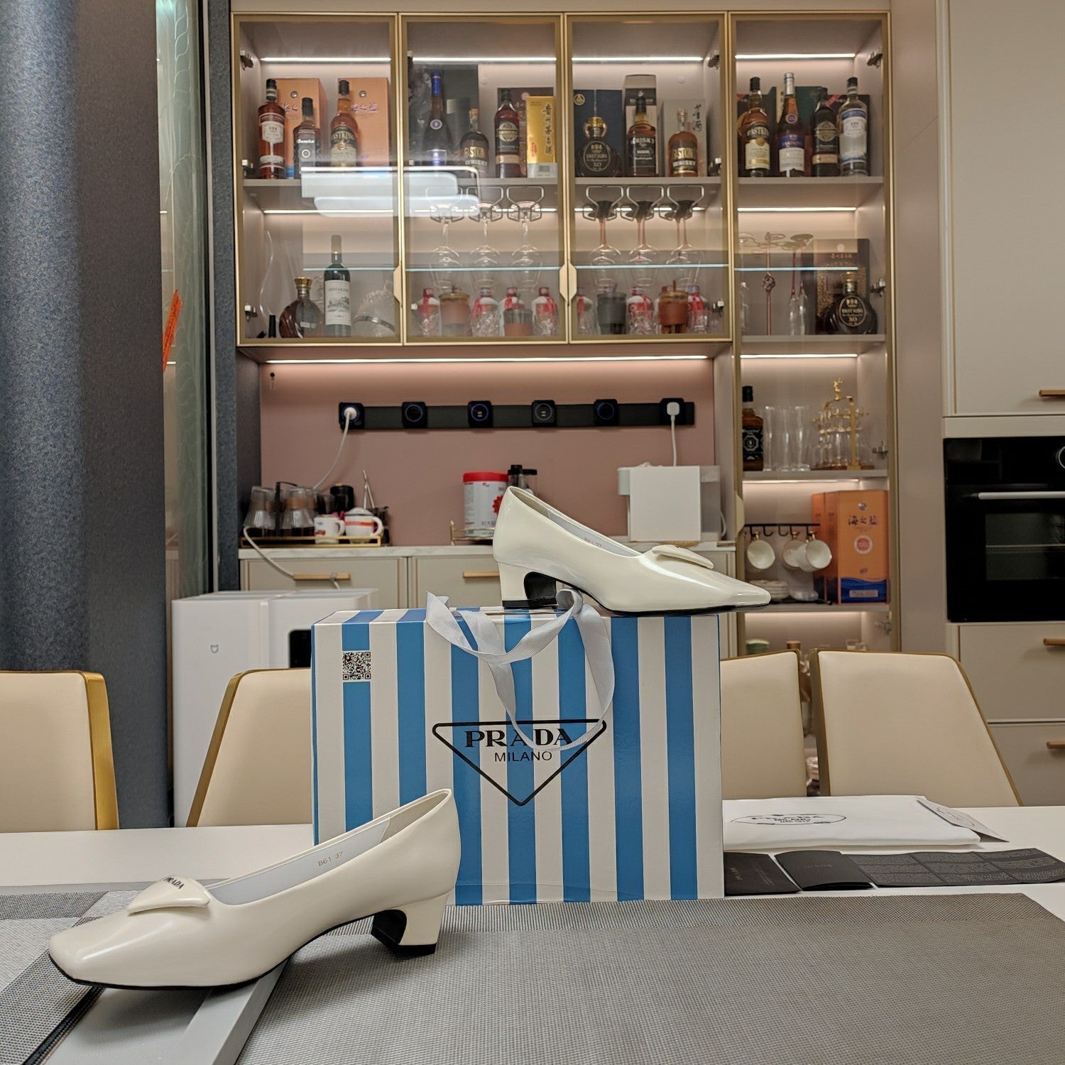 TRIANGLE LOGO PUMPS IN WHITE GLOSSY CALFSKIN
