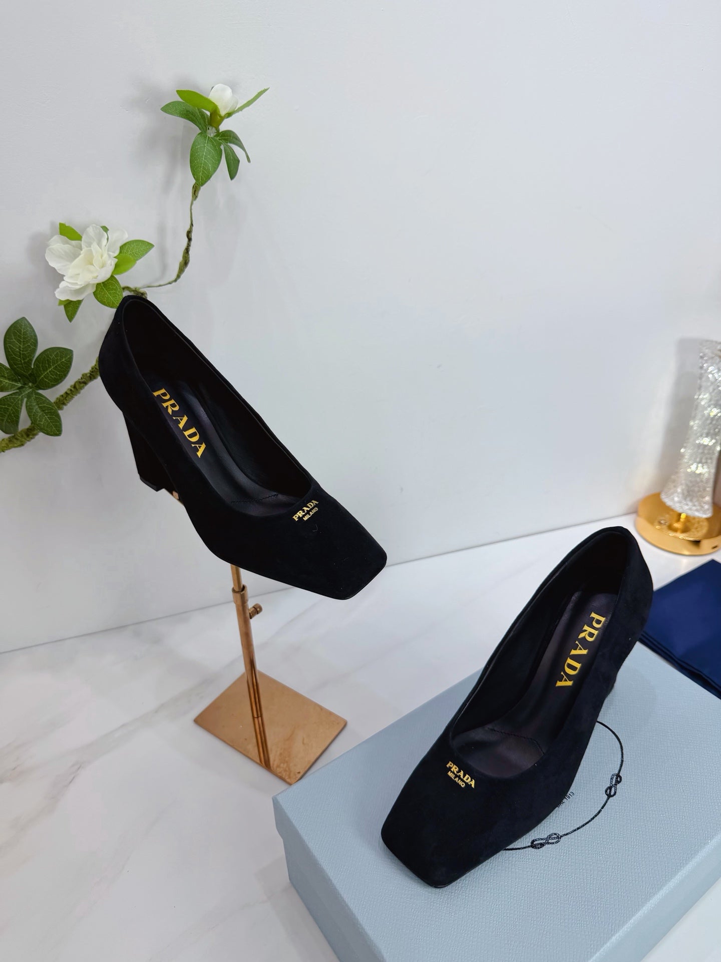 PRA 26SS Square-toe Block Heels 85 Black Suede 592360