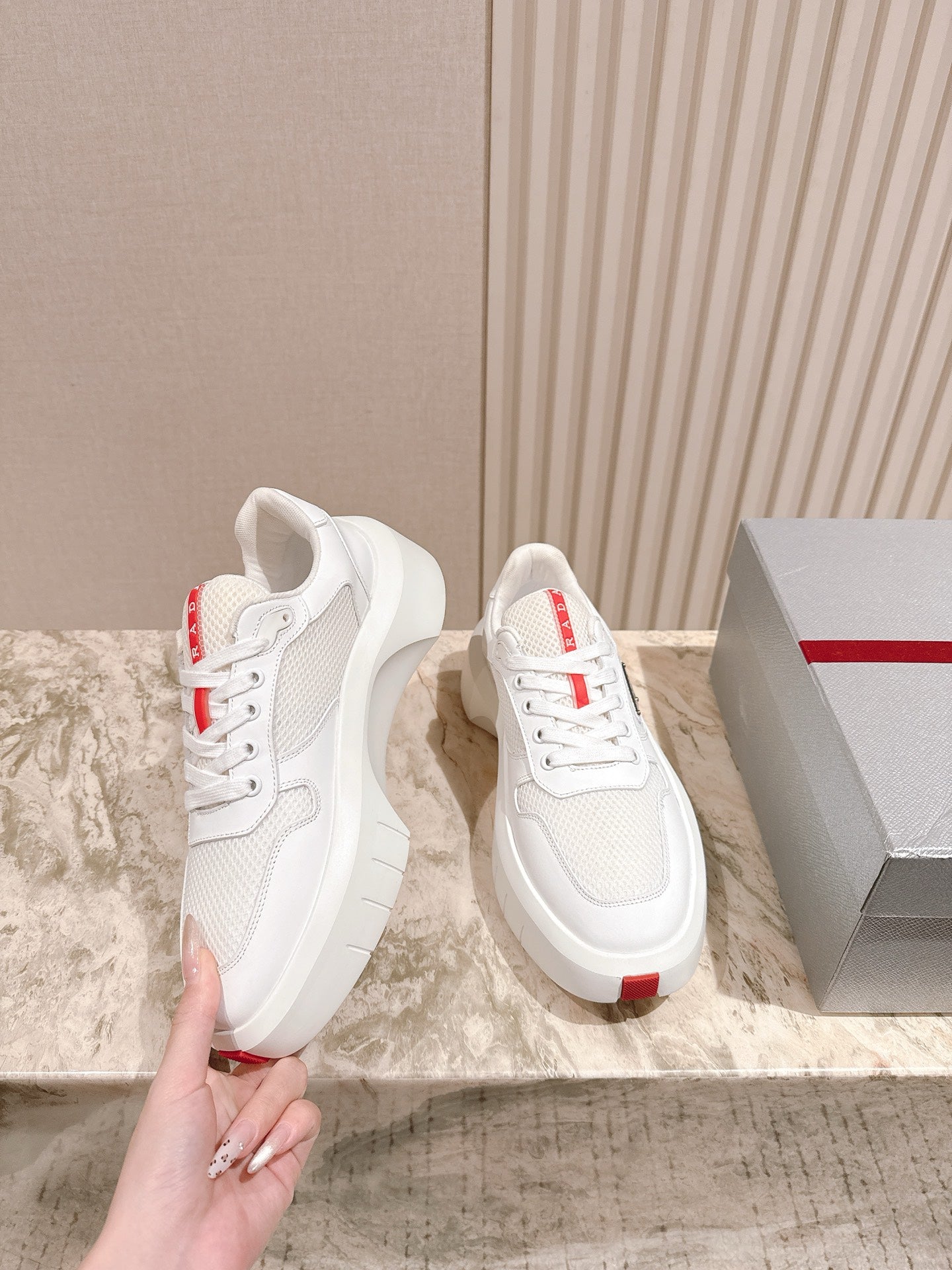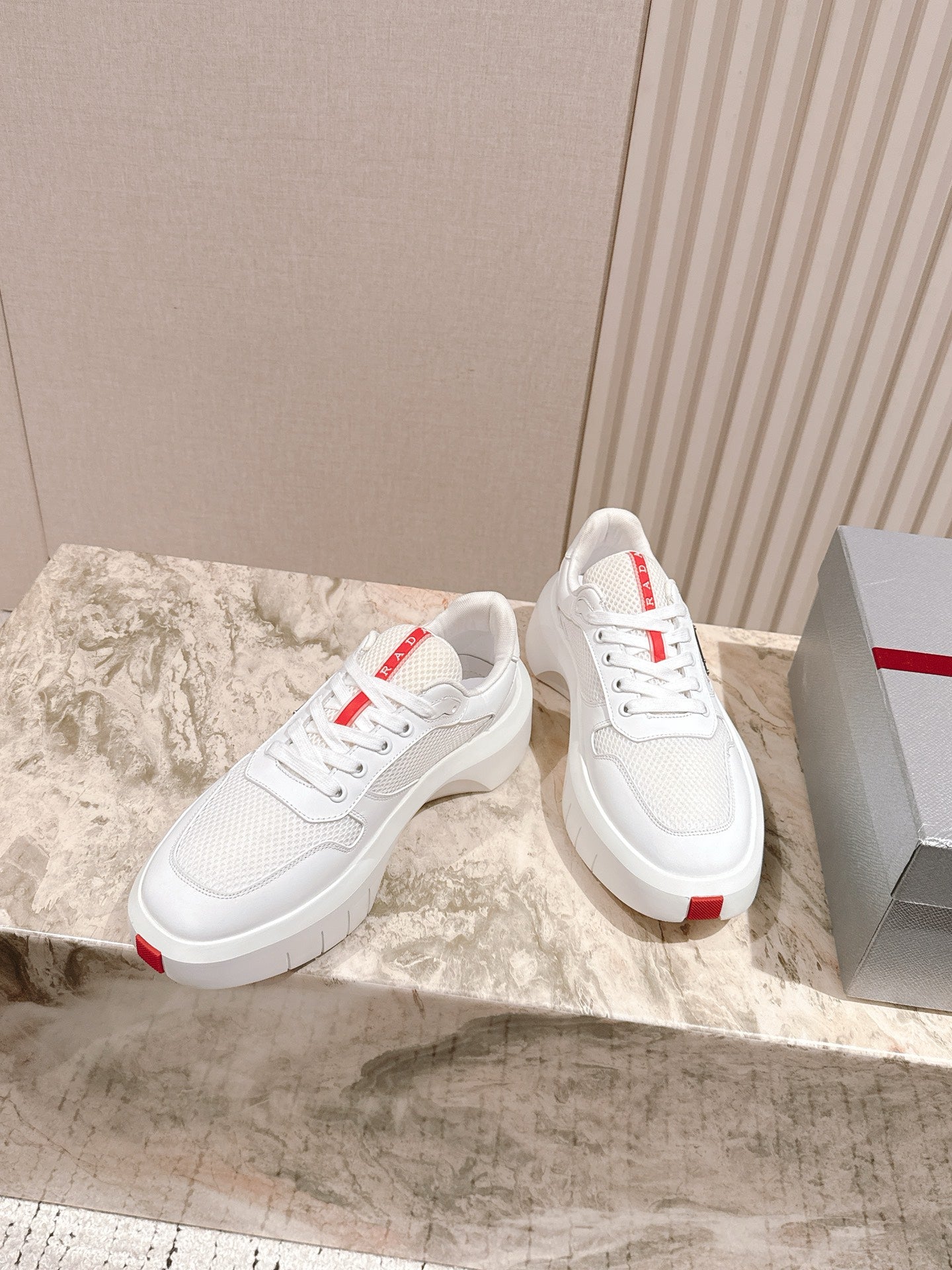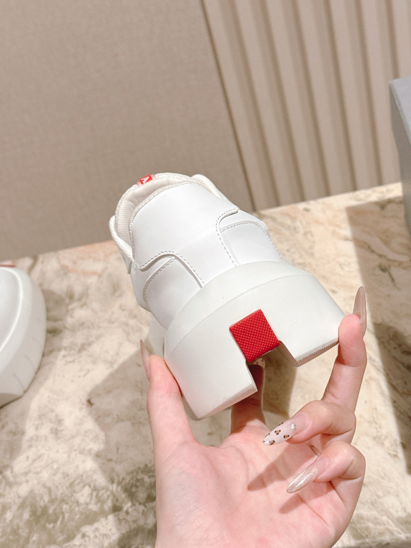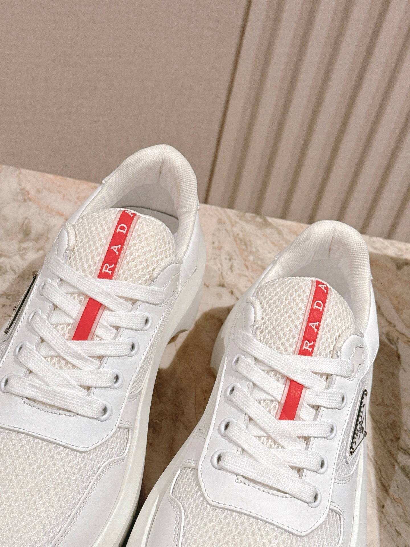 PRADA 25S SPORTY SNEAKERS 45MM WHITE RED COWHIDE