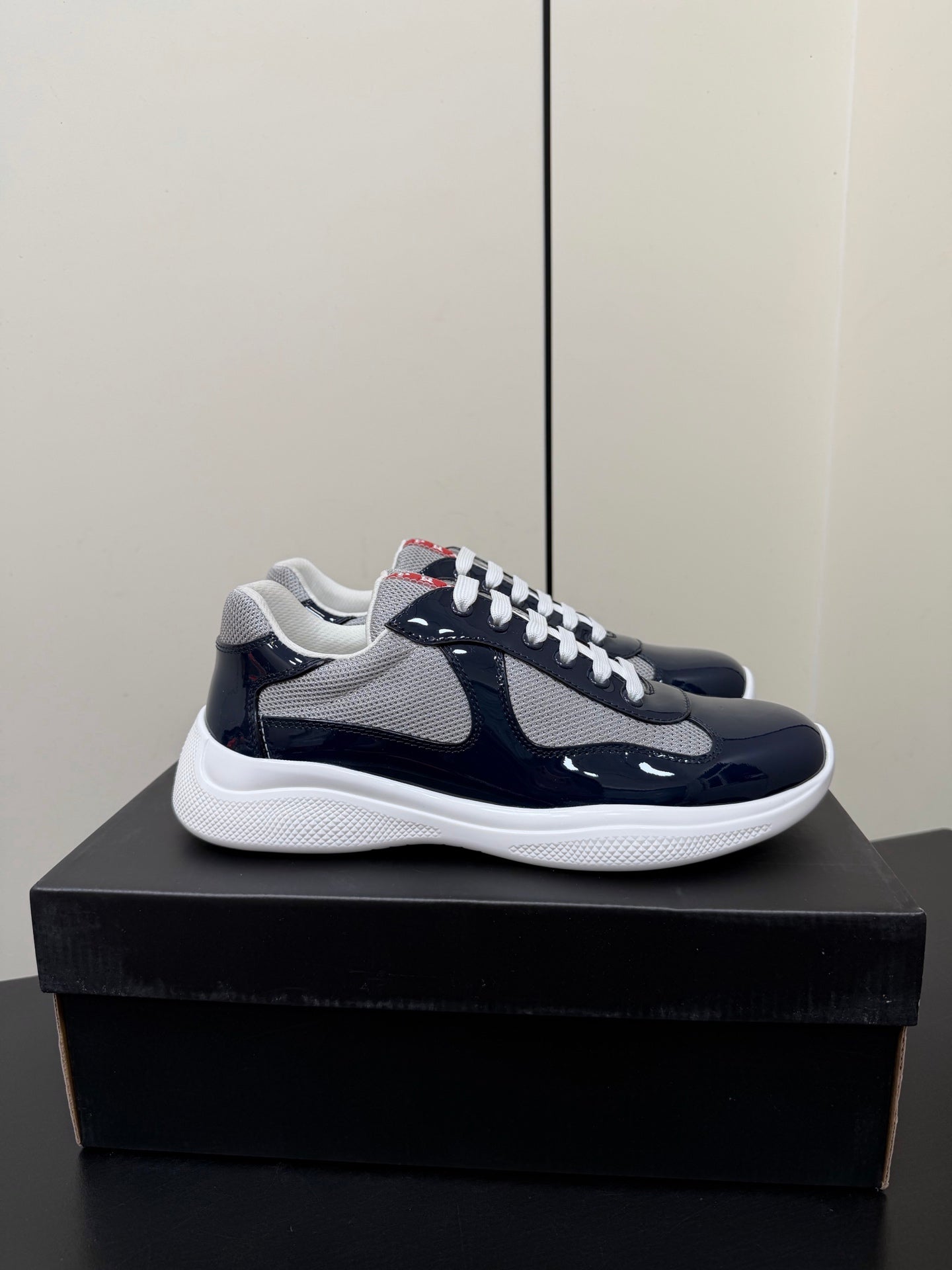 Prada America's Cup Sneaker Black White Patent Leather Mesh 618929