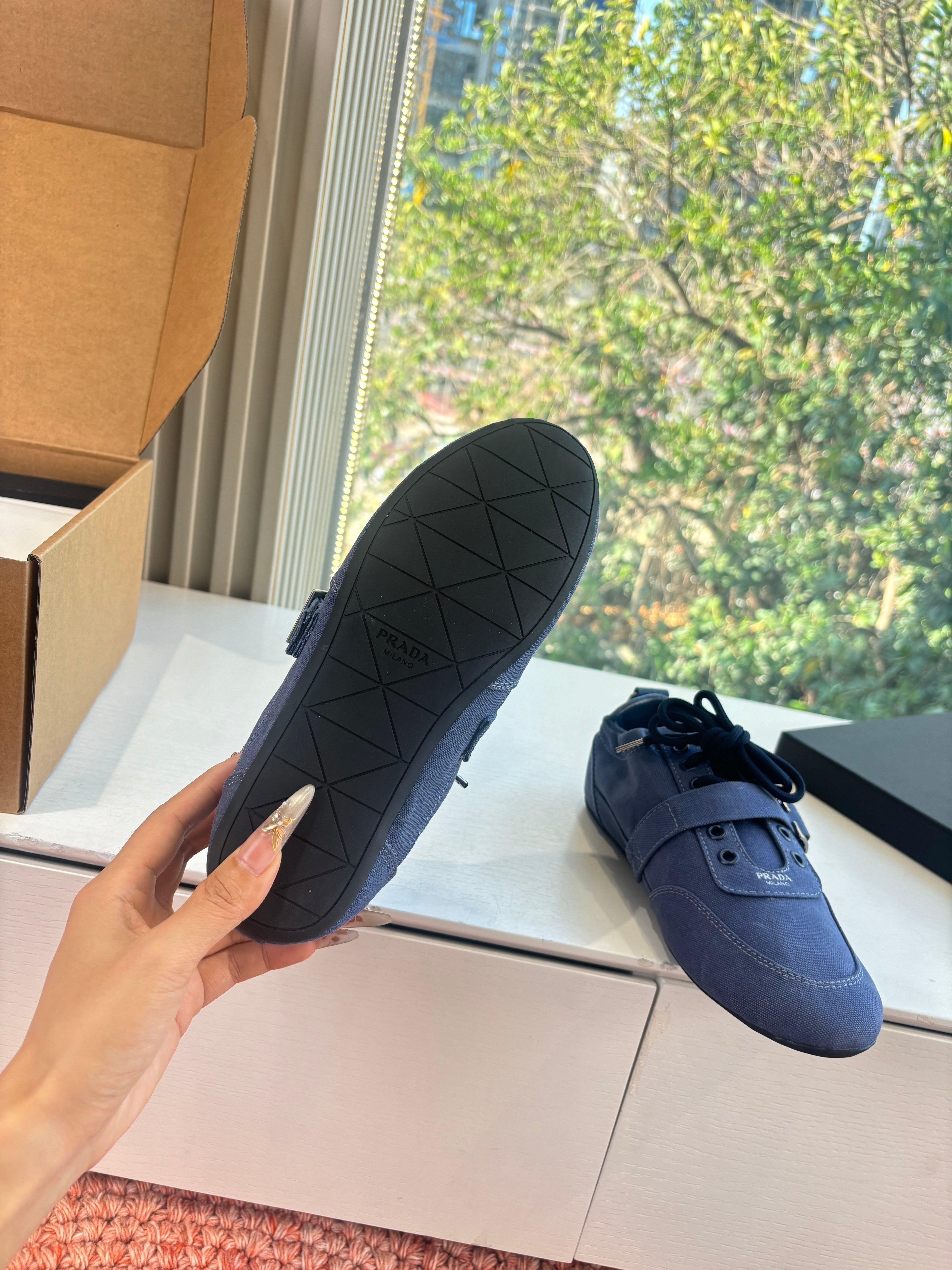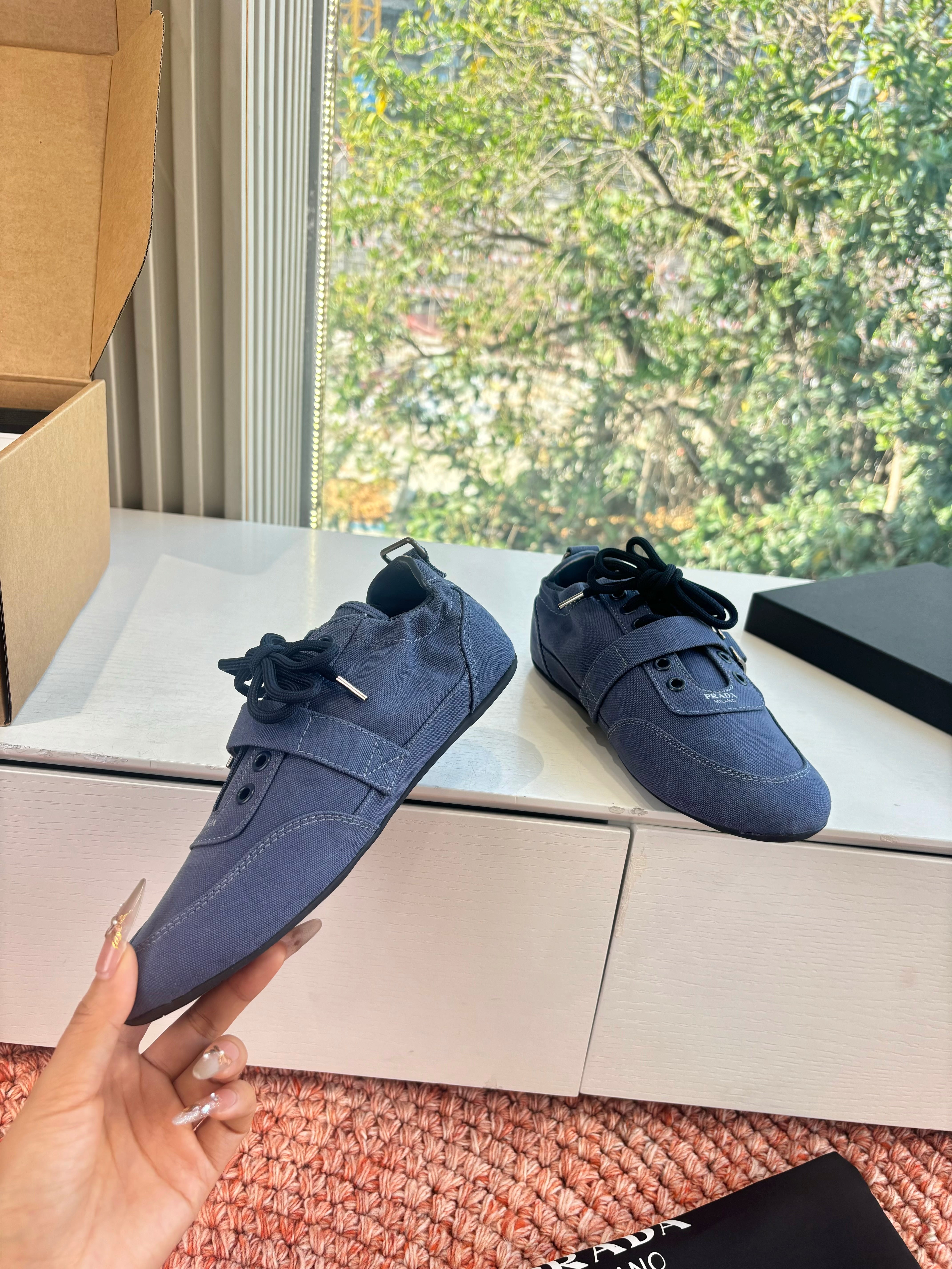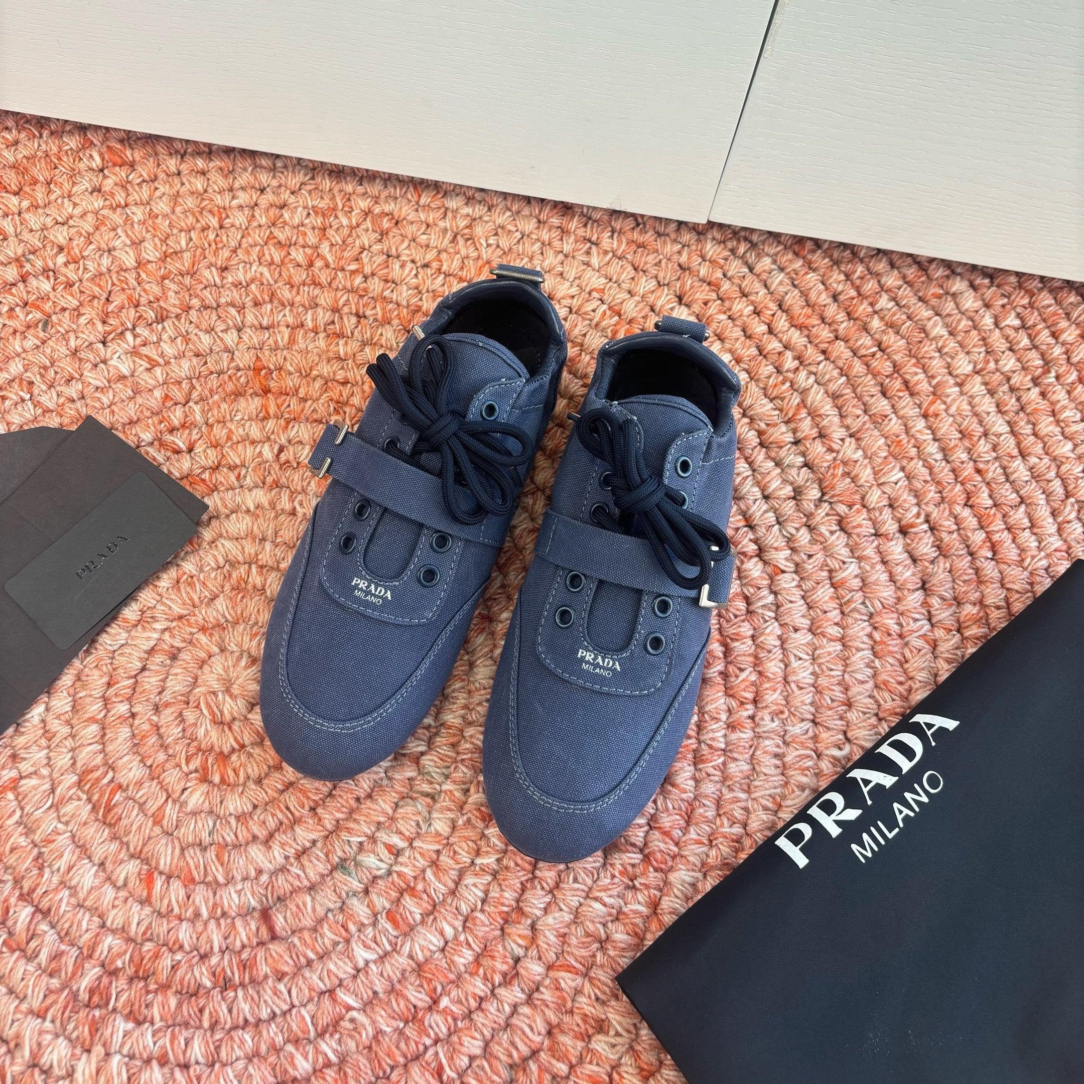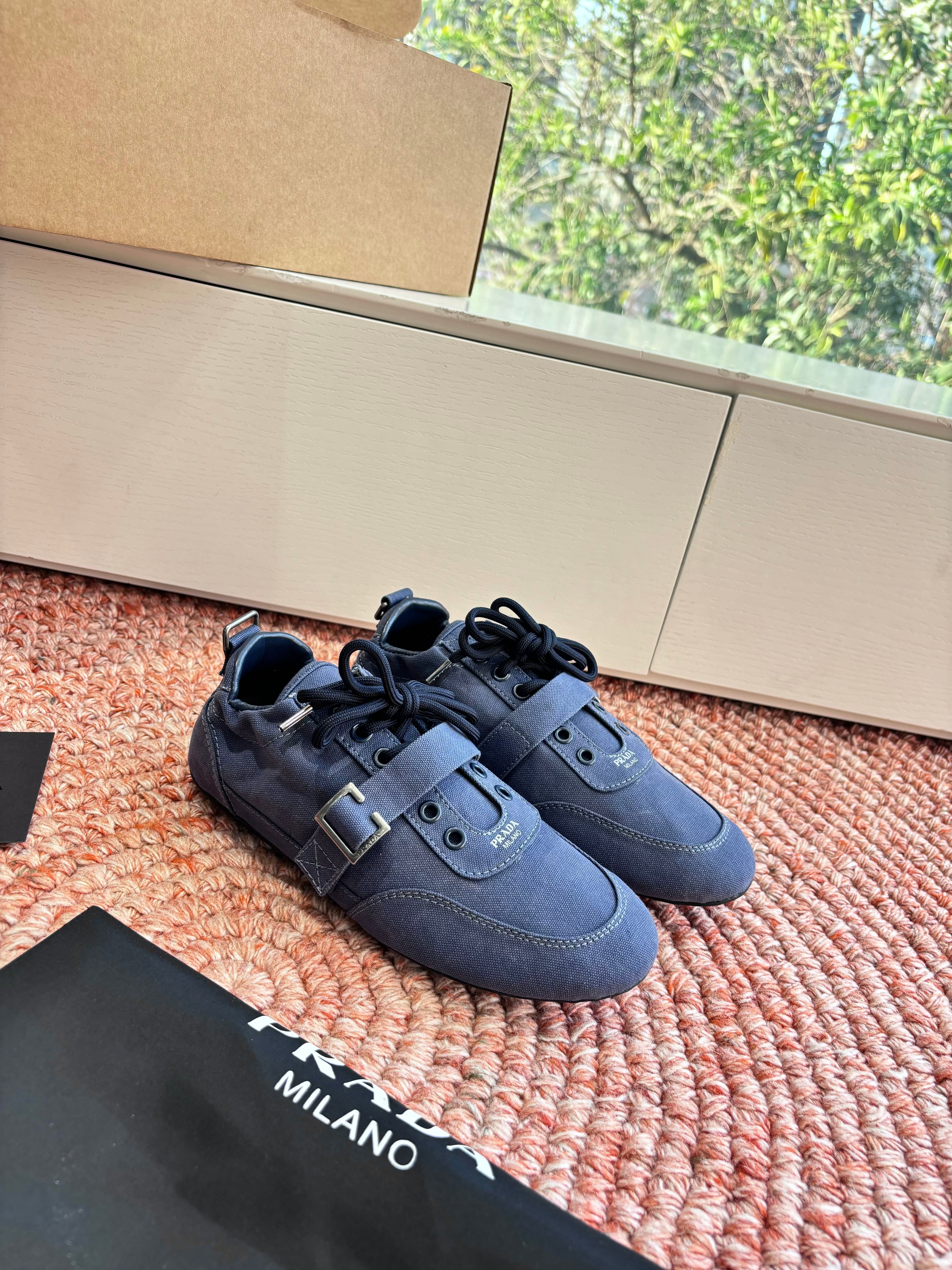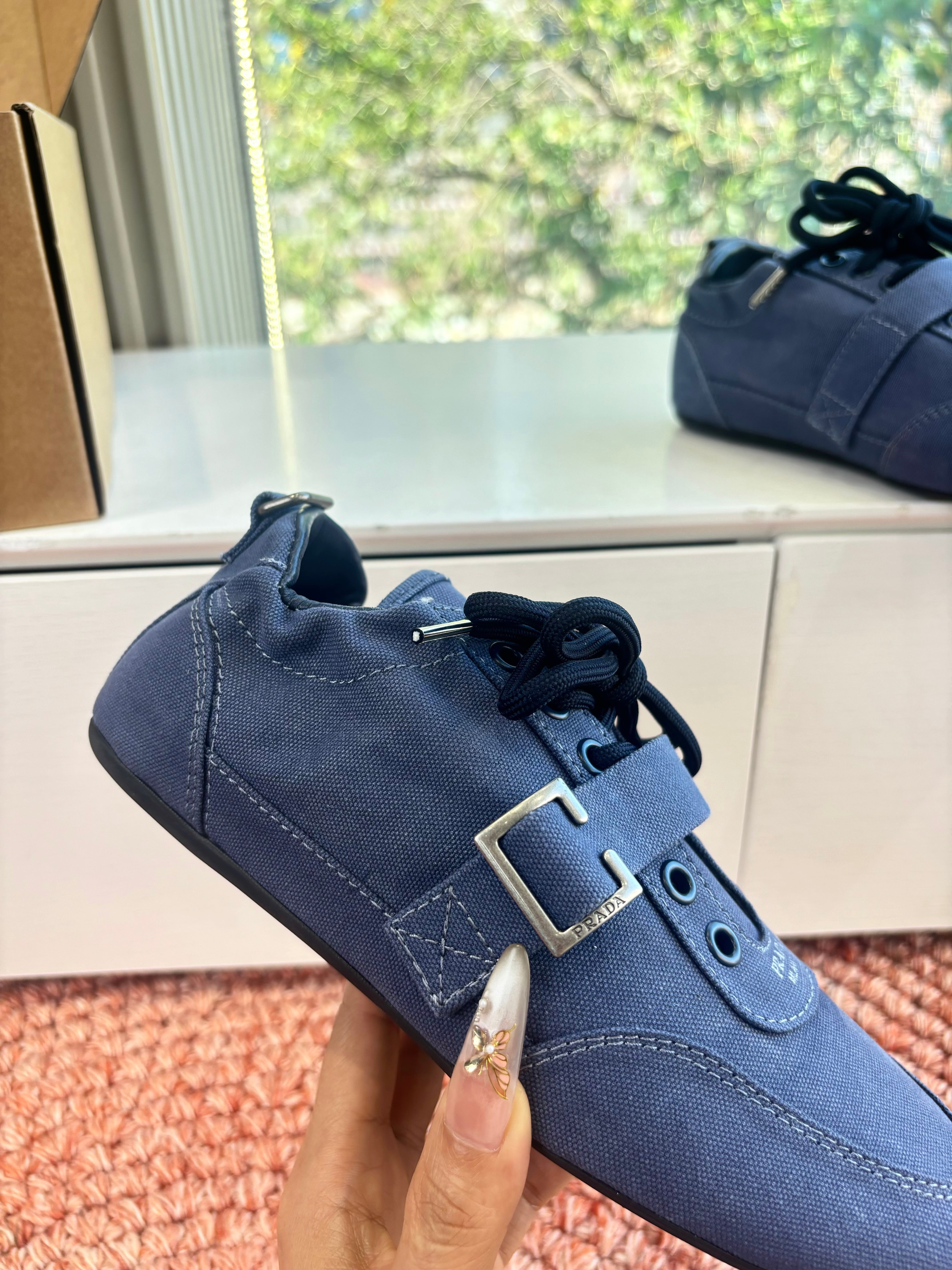 Prada Sneakers with Buckle and Strap Dark Blue Collapse Canvas 604167