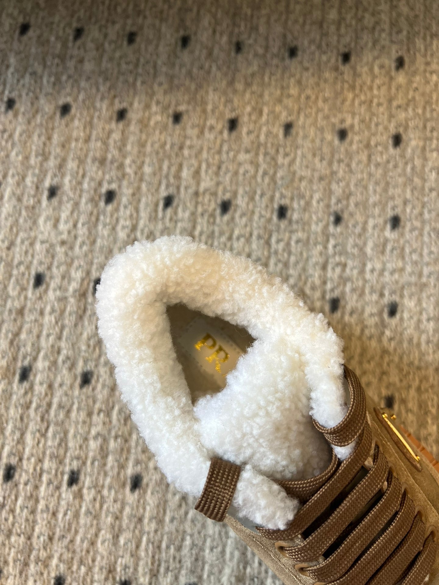 Prada 25s Mid-Top Sneaker Light Brown Suede And Wool 538433