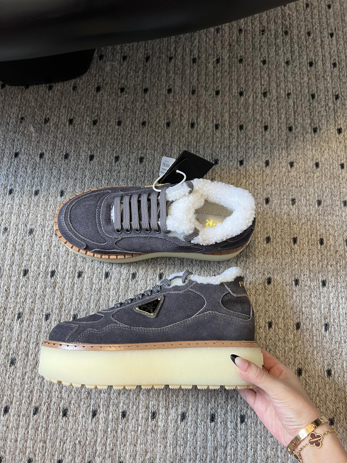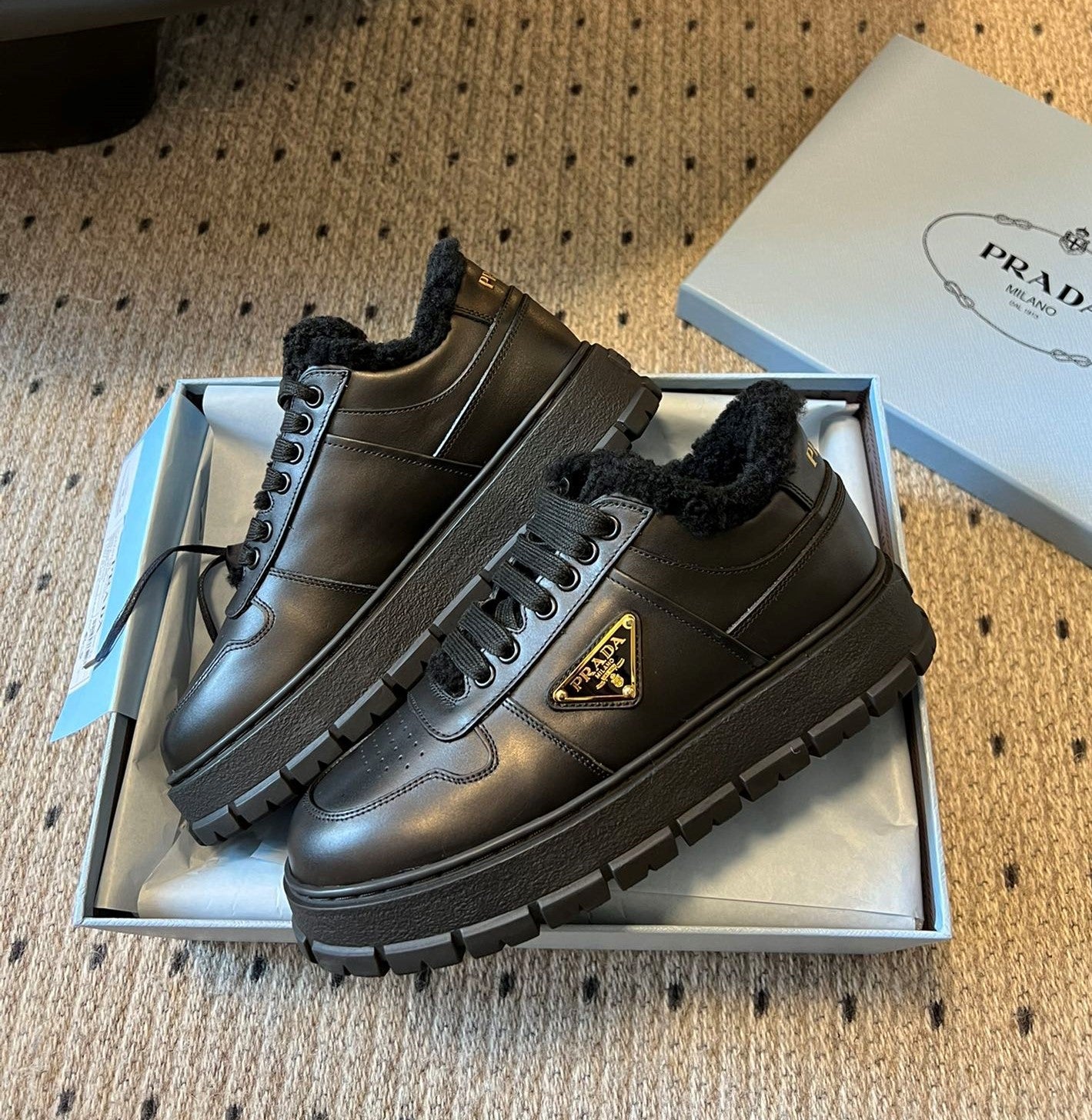 Prada 25s Sneakers Dark Brown Sheepskin 535498