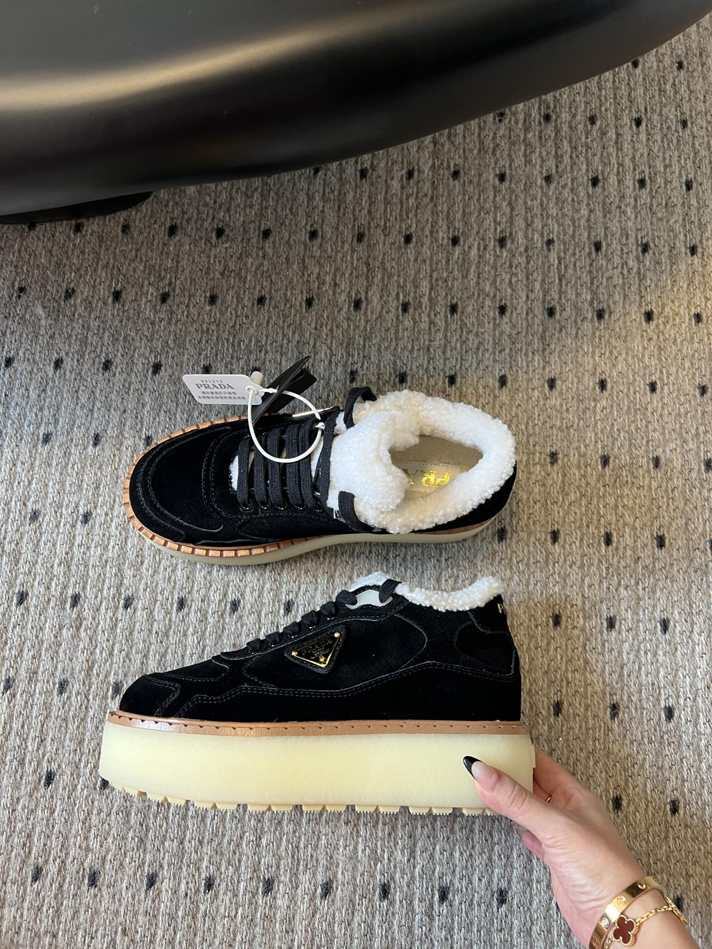 Pra Sneaker Black Cowhide Lace Wool 478563