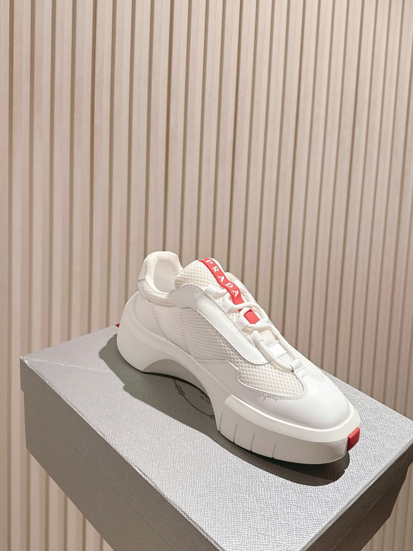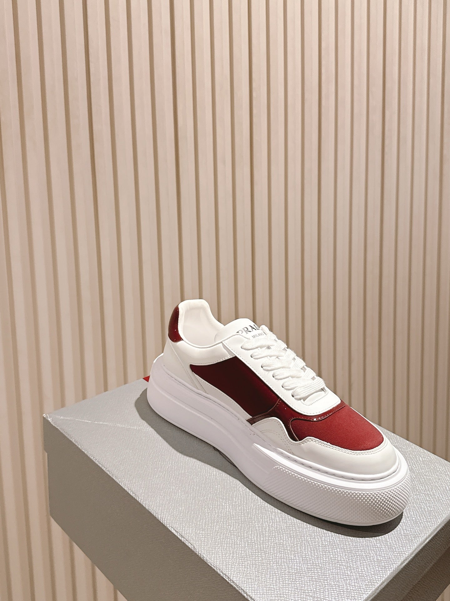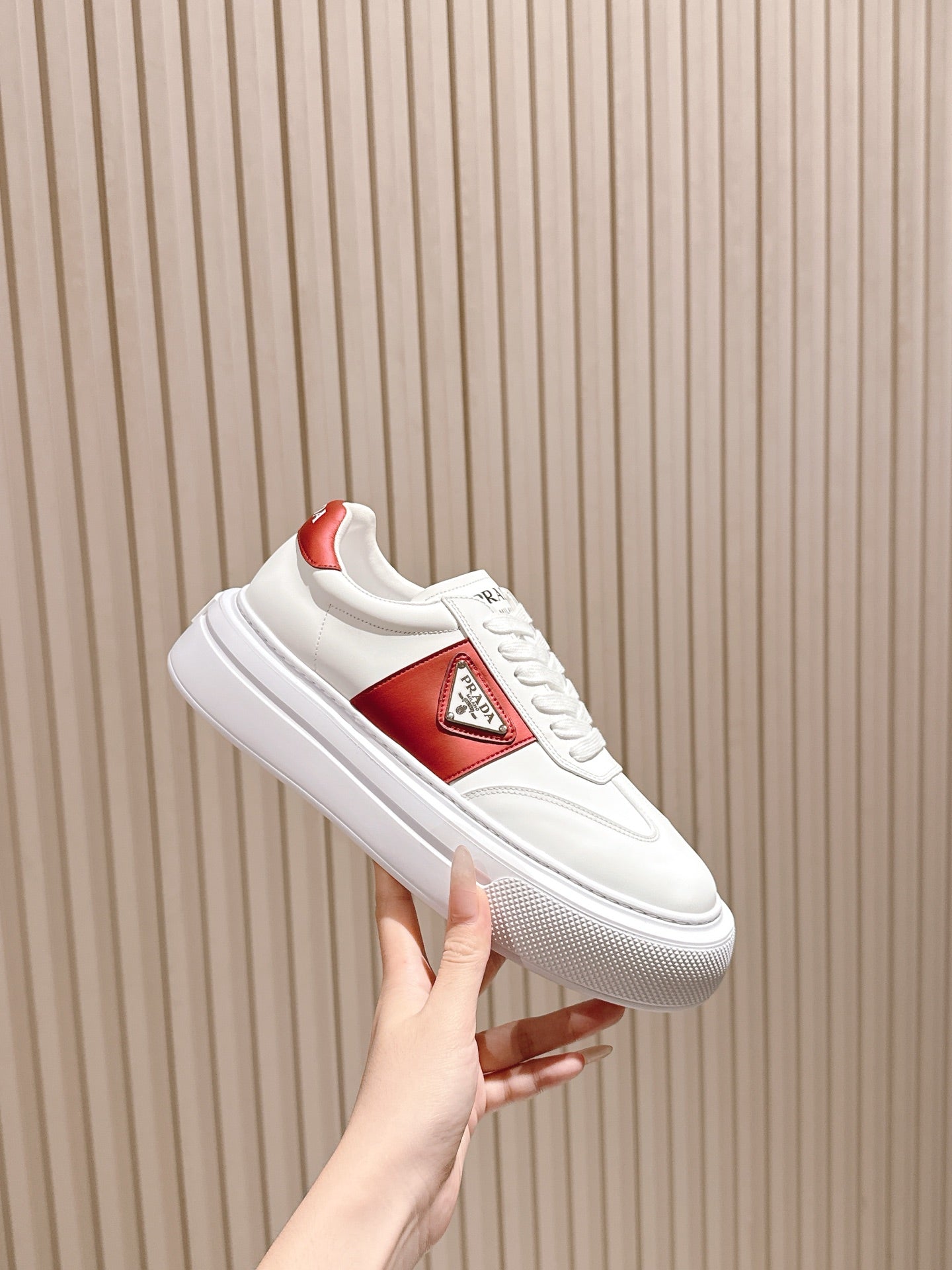 Prada 25s Platform Sneakers White Red Cowhide 538422