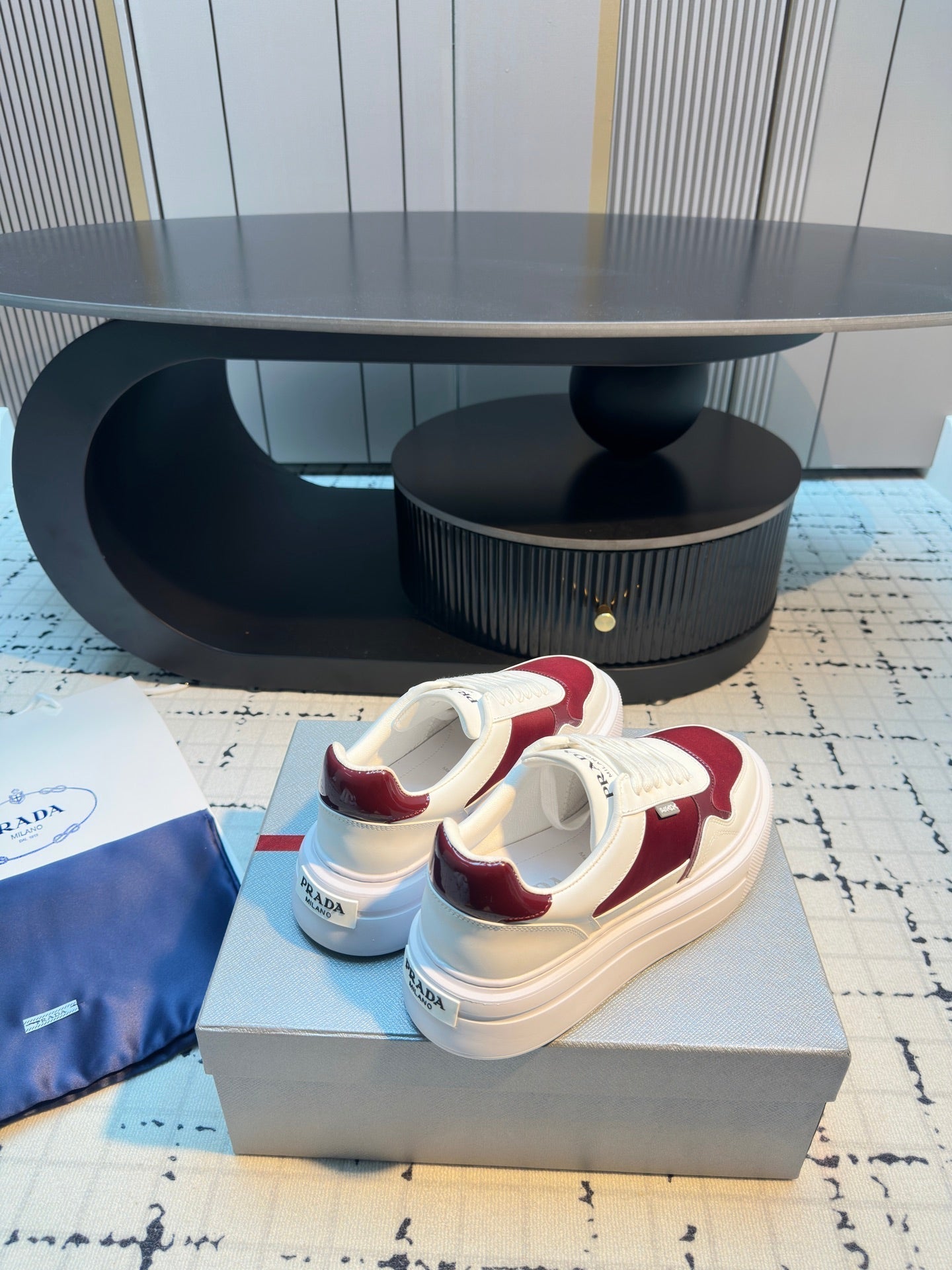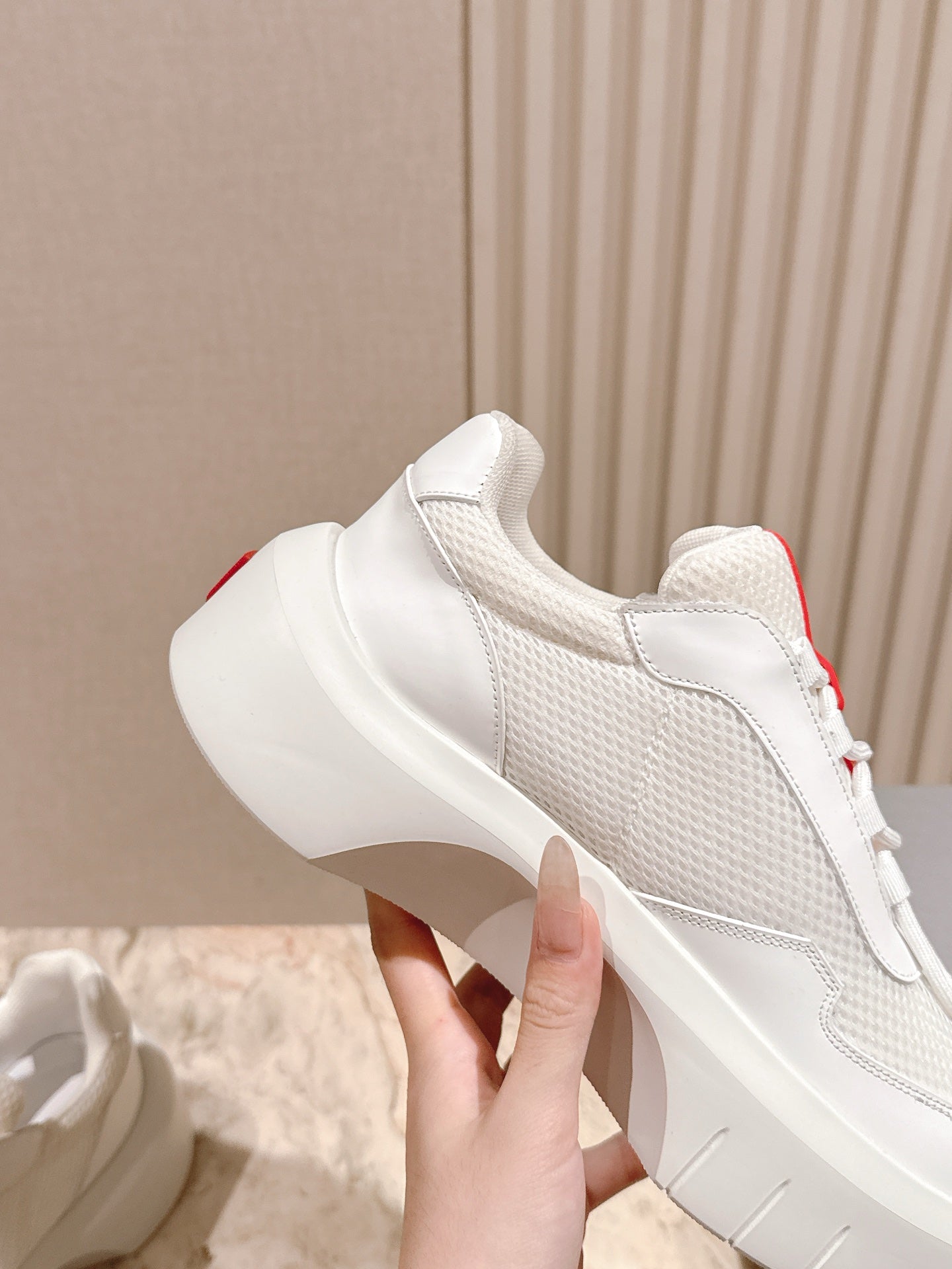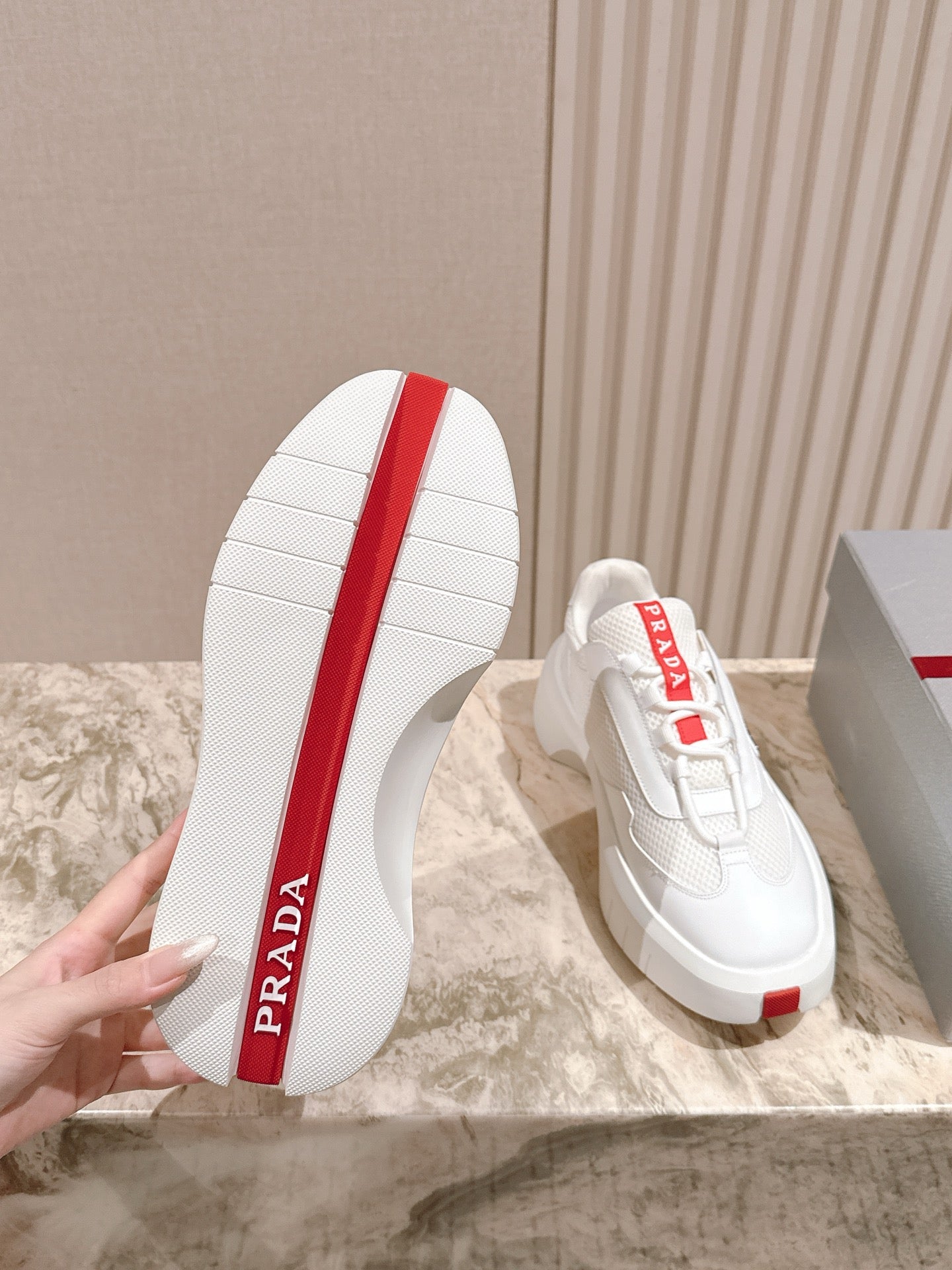 Prada 25s Platform Sneakers White Red Cowhide 538422