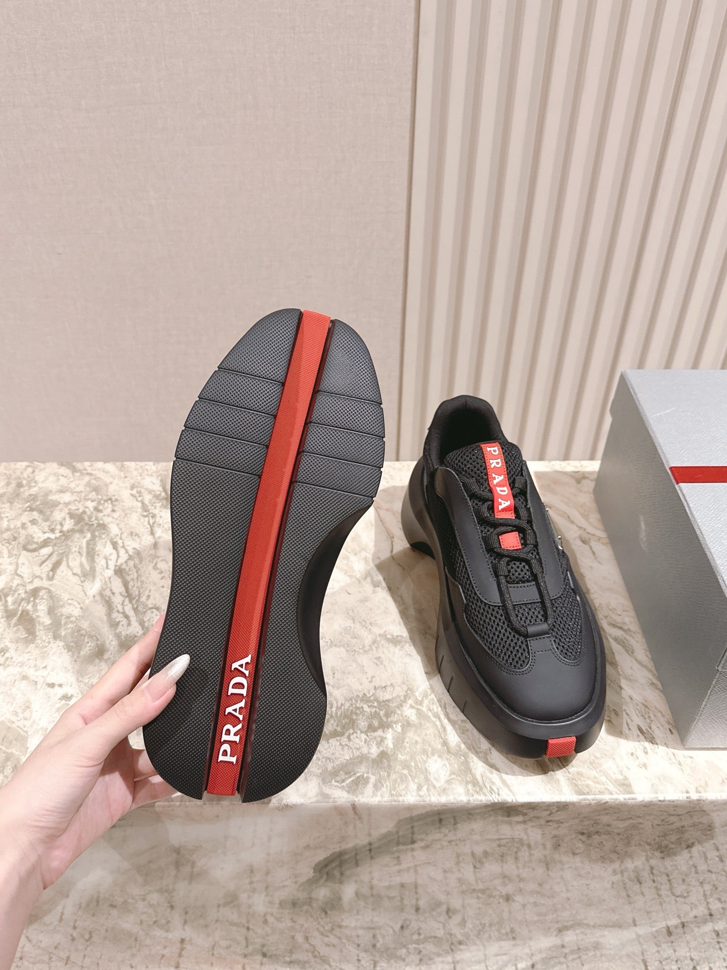 PRA 25s America's Cup Sneakers Black Red Mesh & Cowhide 449691