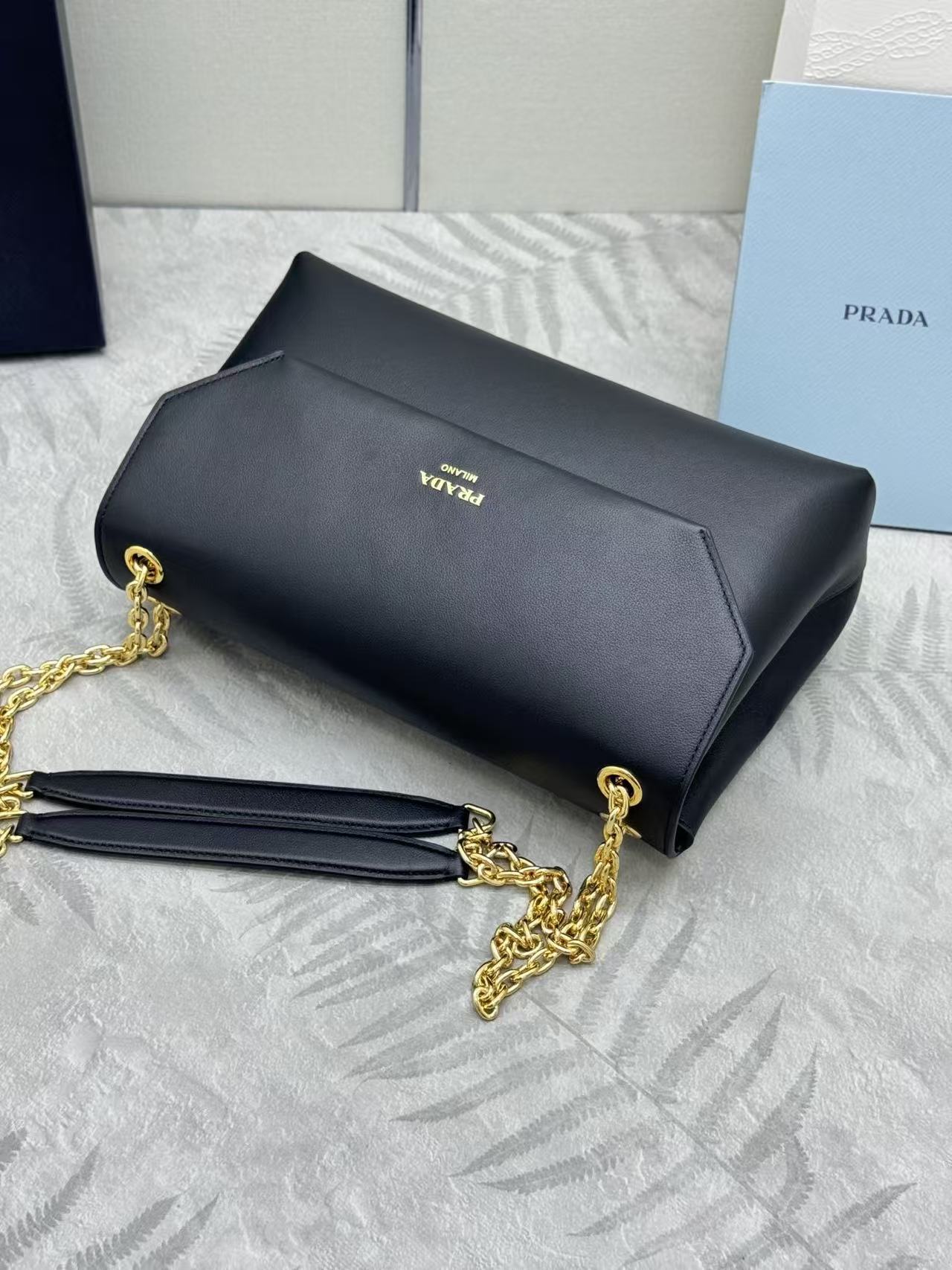 Prada Doux Medium Leather Shoulder Bag Black Calfskin