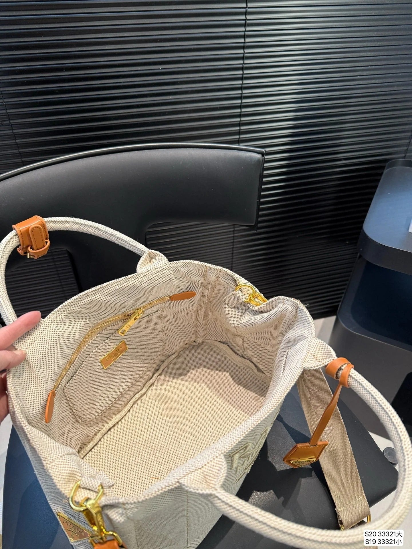 EMBROIDED LOGO LARGE HANDBAG 30 IN BLACK LINEN BLEND