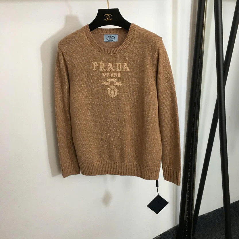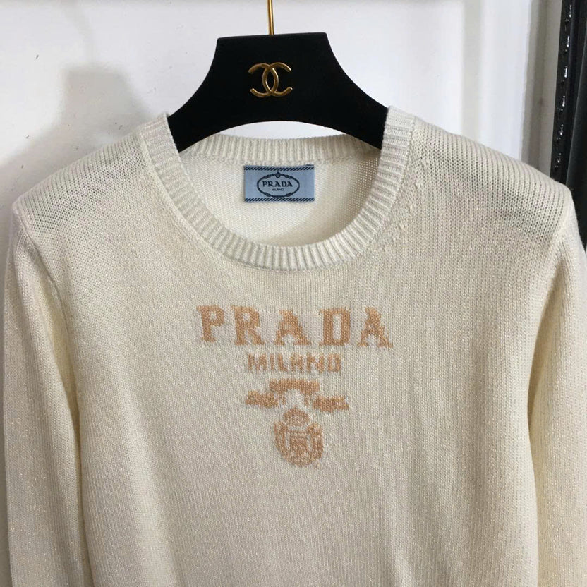 Prad Logo Crew-Neck Sweater in Bright Silk Blend Wool