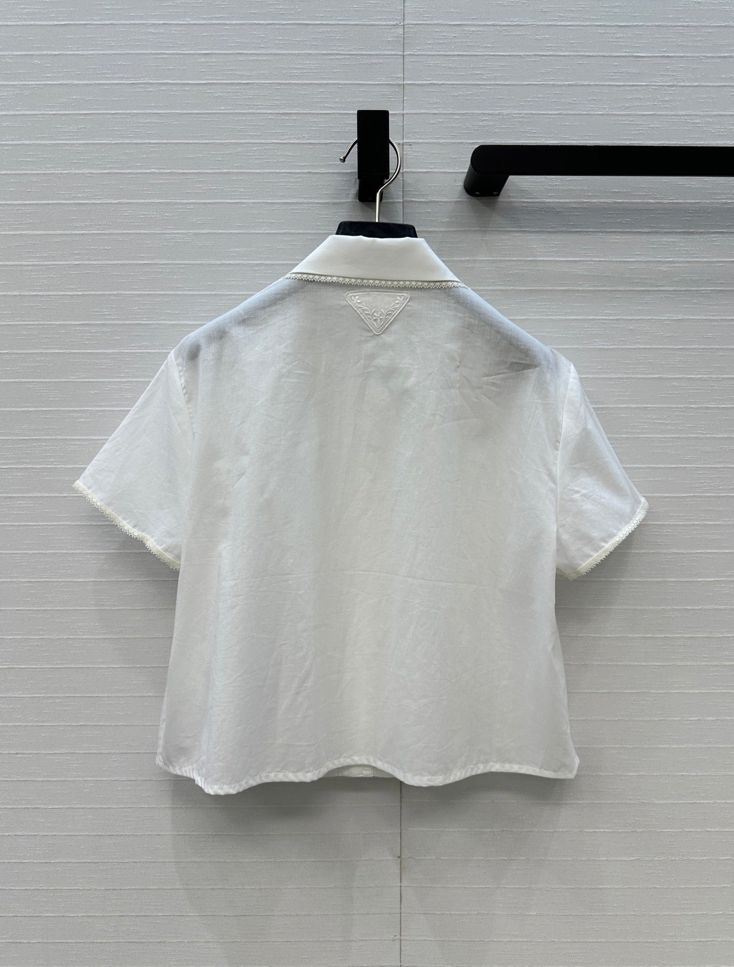Prada 25 Lace Short-sleeved Shirt White Cotton