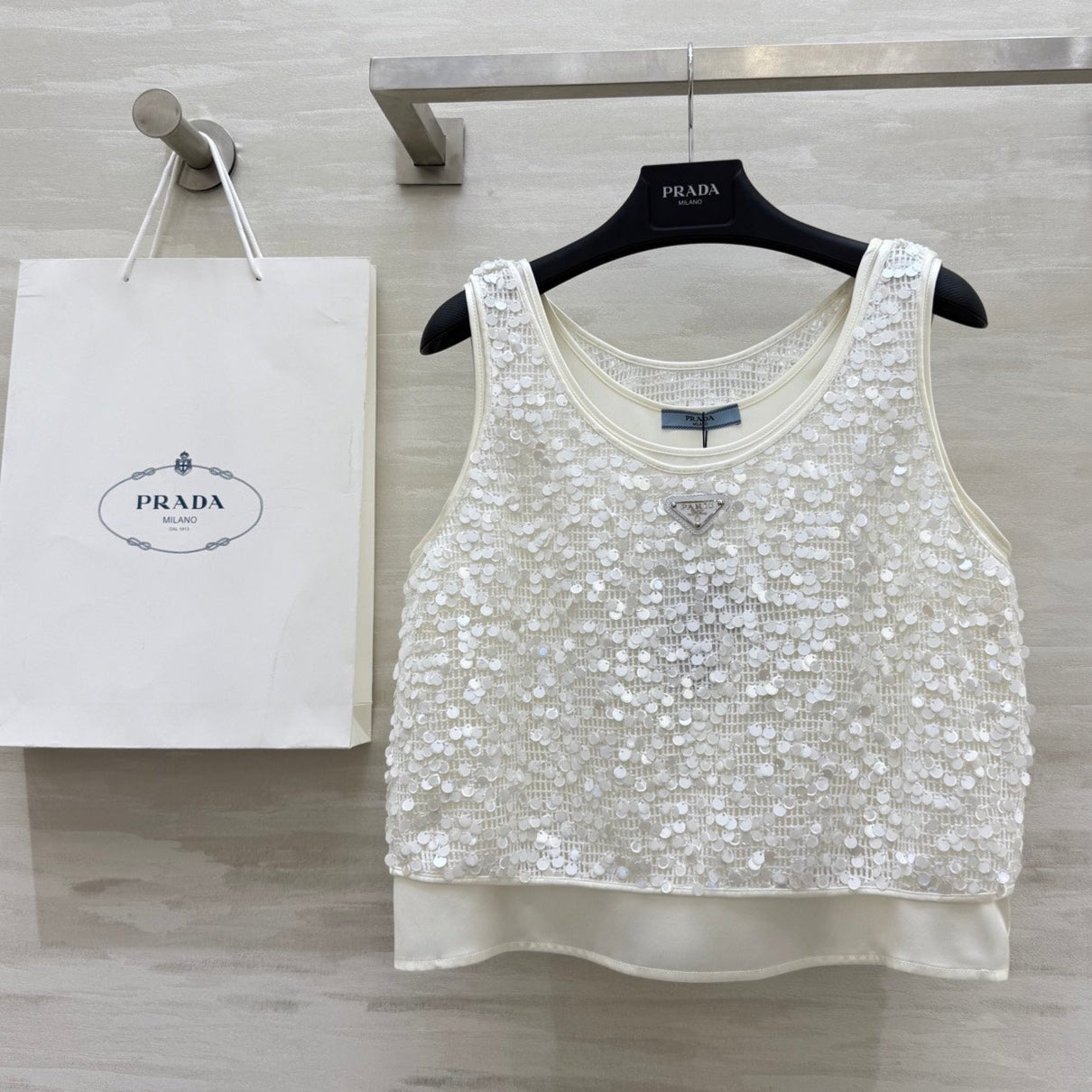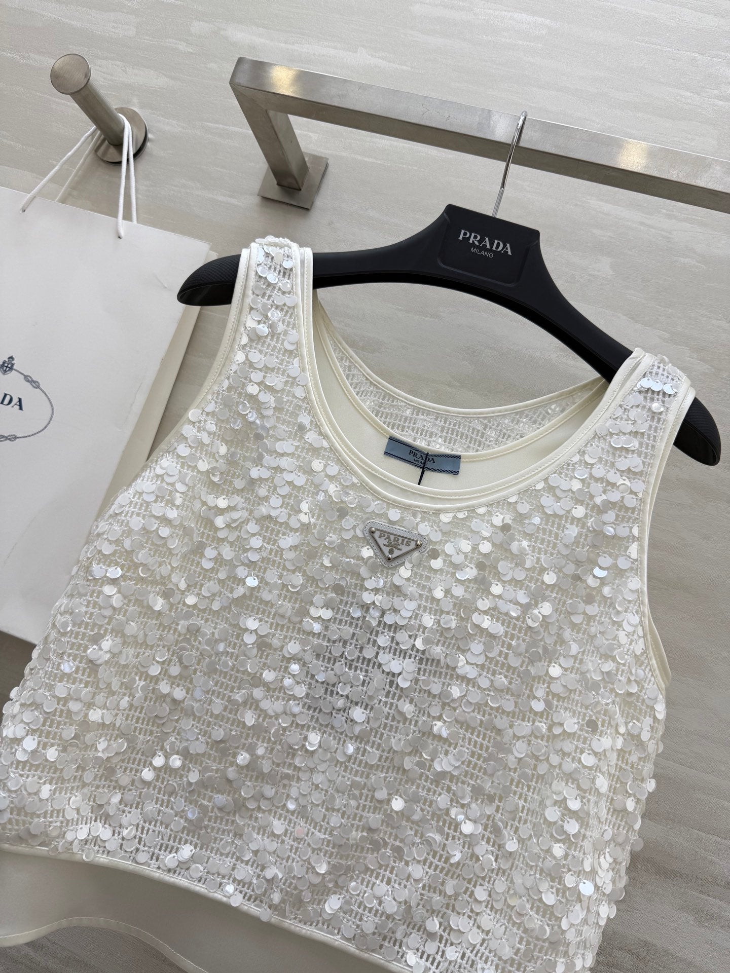 Prada 25 Sequin Vest White Polyester