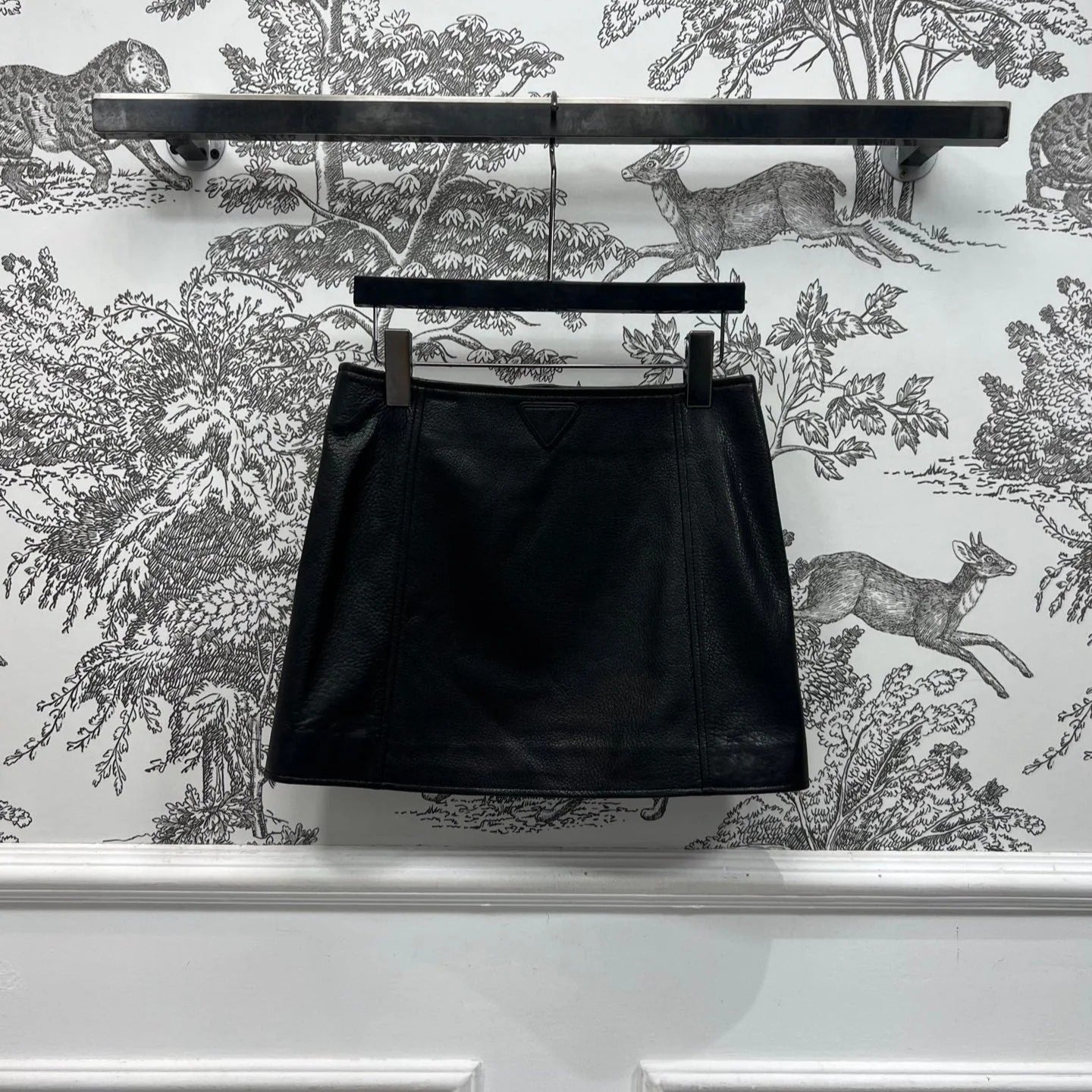 PRADA SHORT LEATHER SKIRT WITH ZIPPER 274475