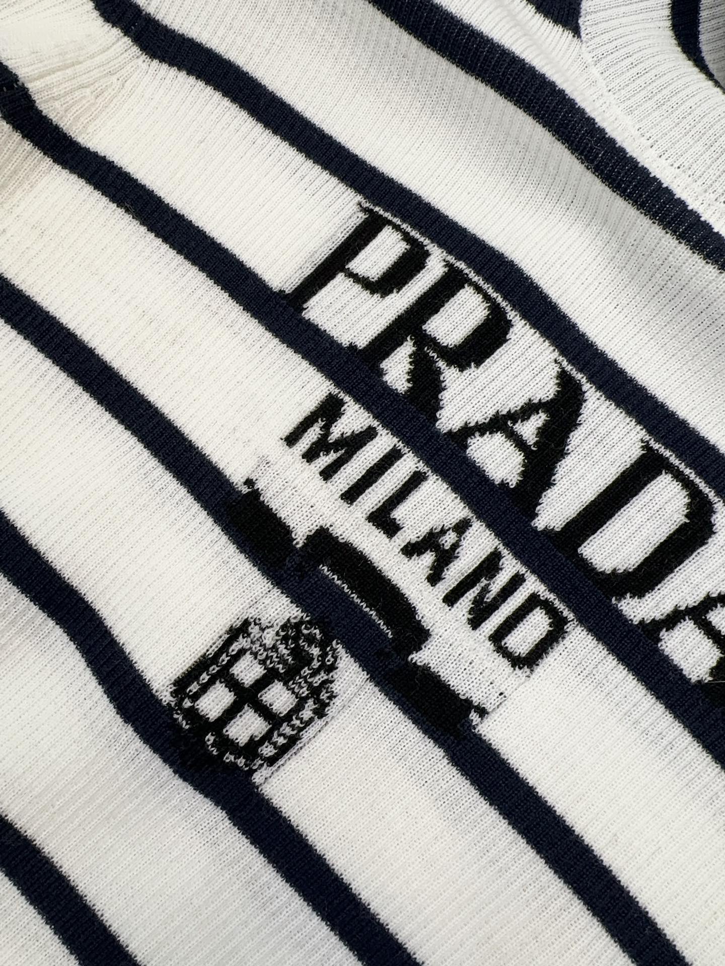 Prada Striped Knitted Turtleneck Sweater Black mix White Wool
