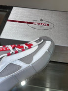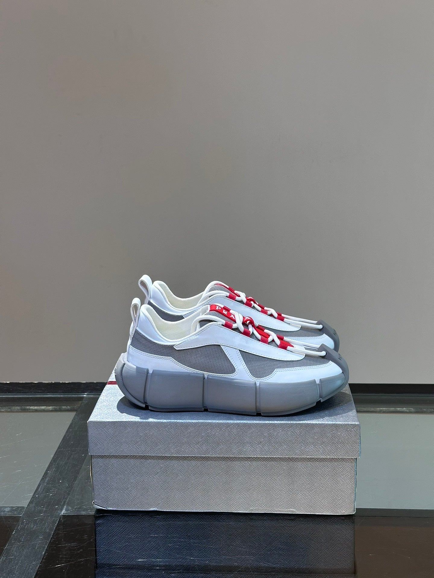 • Material: Cowhide Upper with Breathable Mesh Panels, Soft and Comfortable, Breathable Tongue Decorated with PRADA Brand Letter Logo, Rubber Thick Sole with Red Tag Tongue Echo