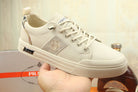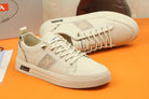 PRA TRAINER IN BEIGE CREAM CALFSKIN AND TAN EMBROIDERED FABRIC