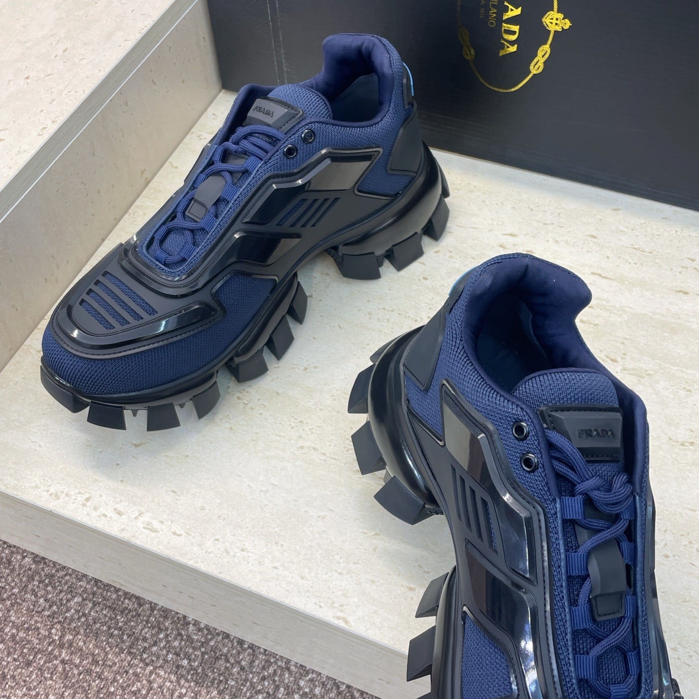 Prada Cloudbust Thunder Dark Blue Black Rubber Knit Fabric 102201