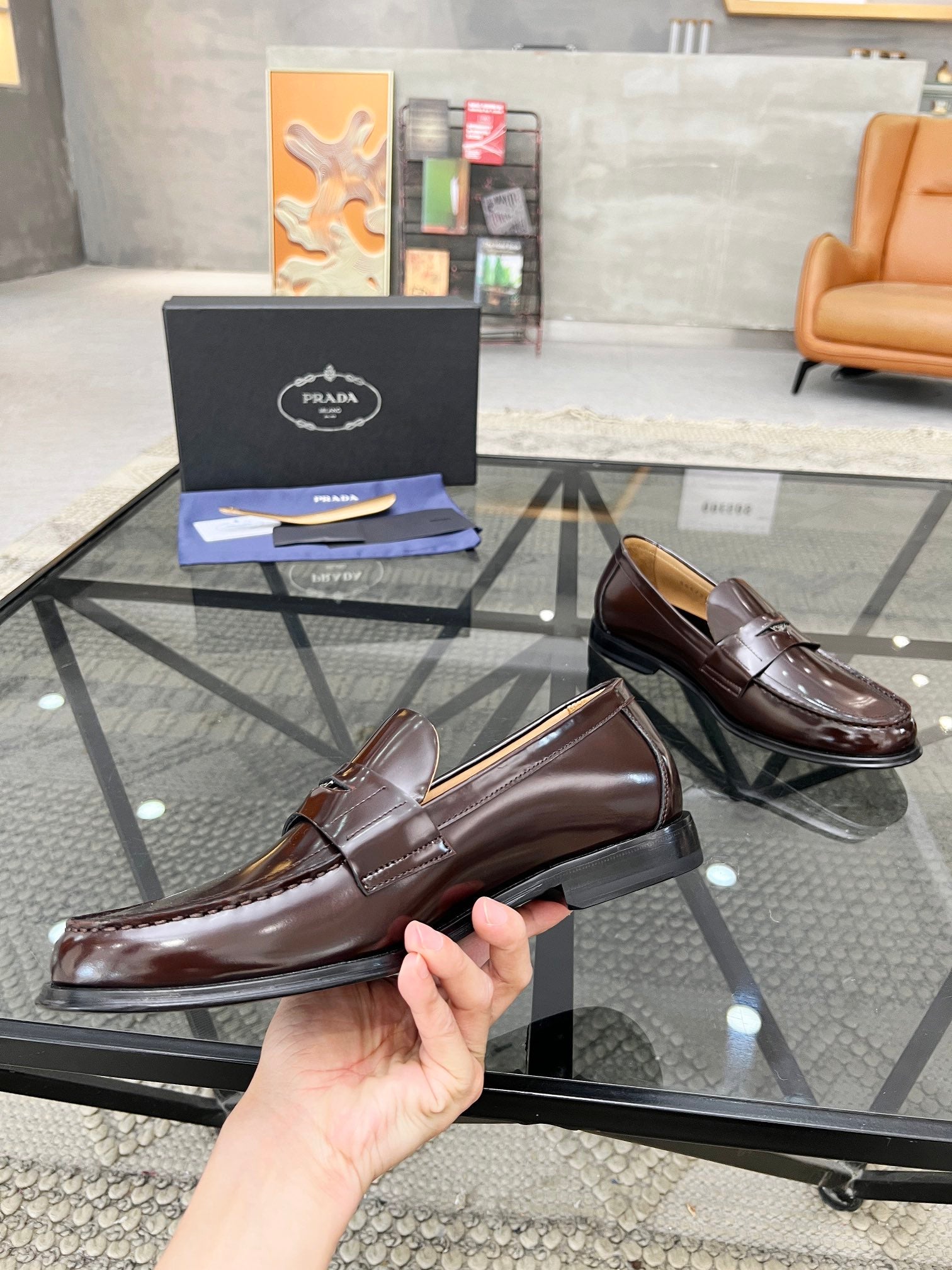 PRA LOAFER IN GLOSSY CHOCOLATE BROWN CALFSKIN