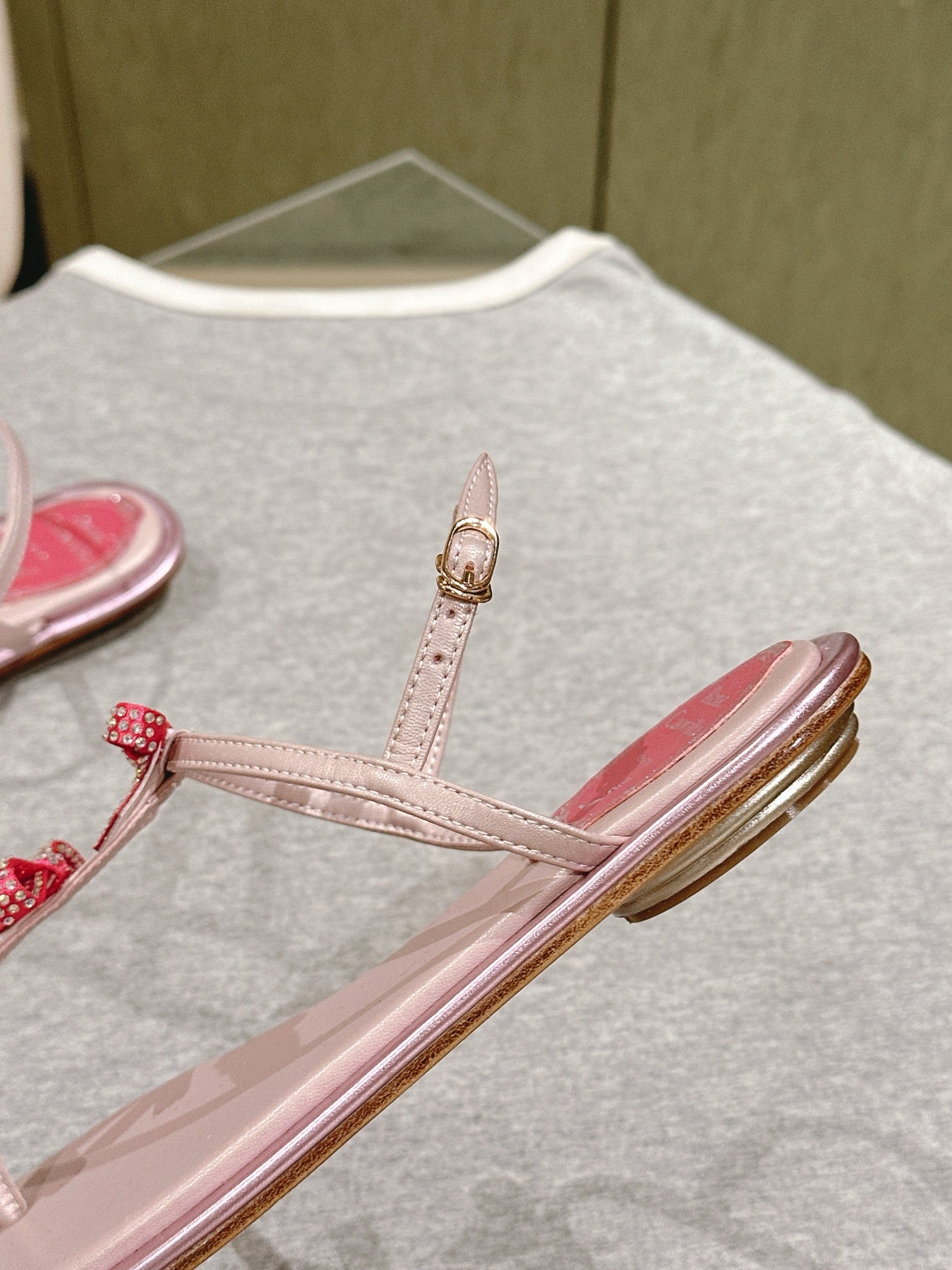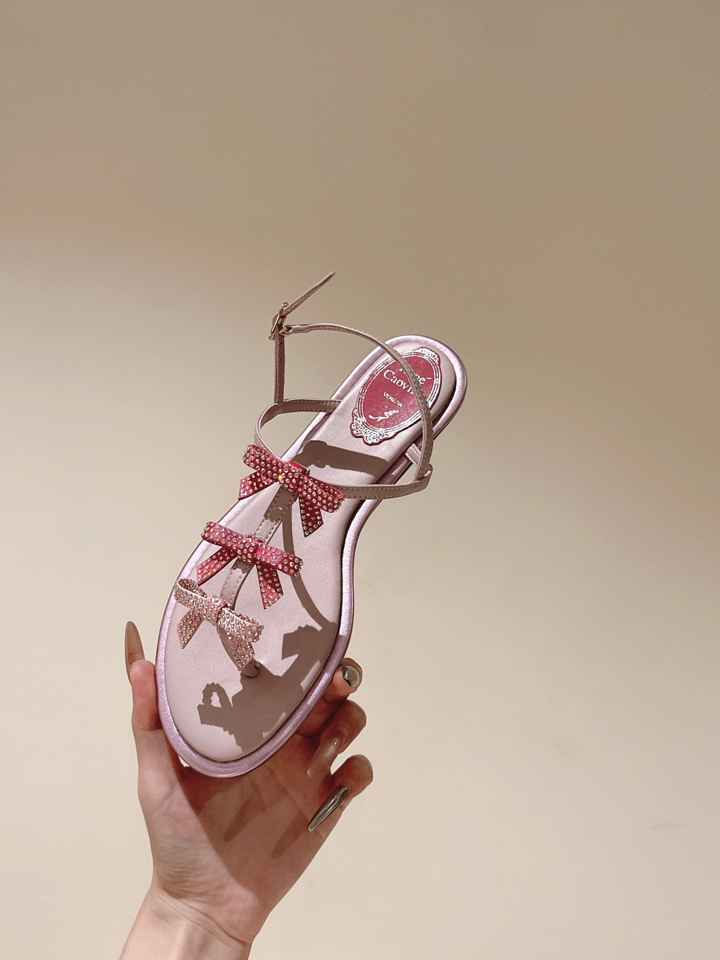 RC 25C Thong Diamond Sandals Pink Gold Sheepskin Rhinestone 339505