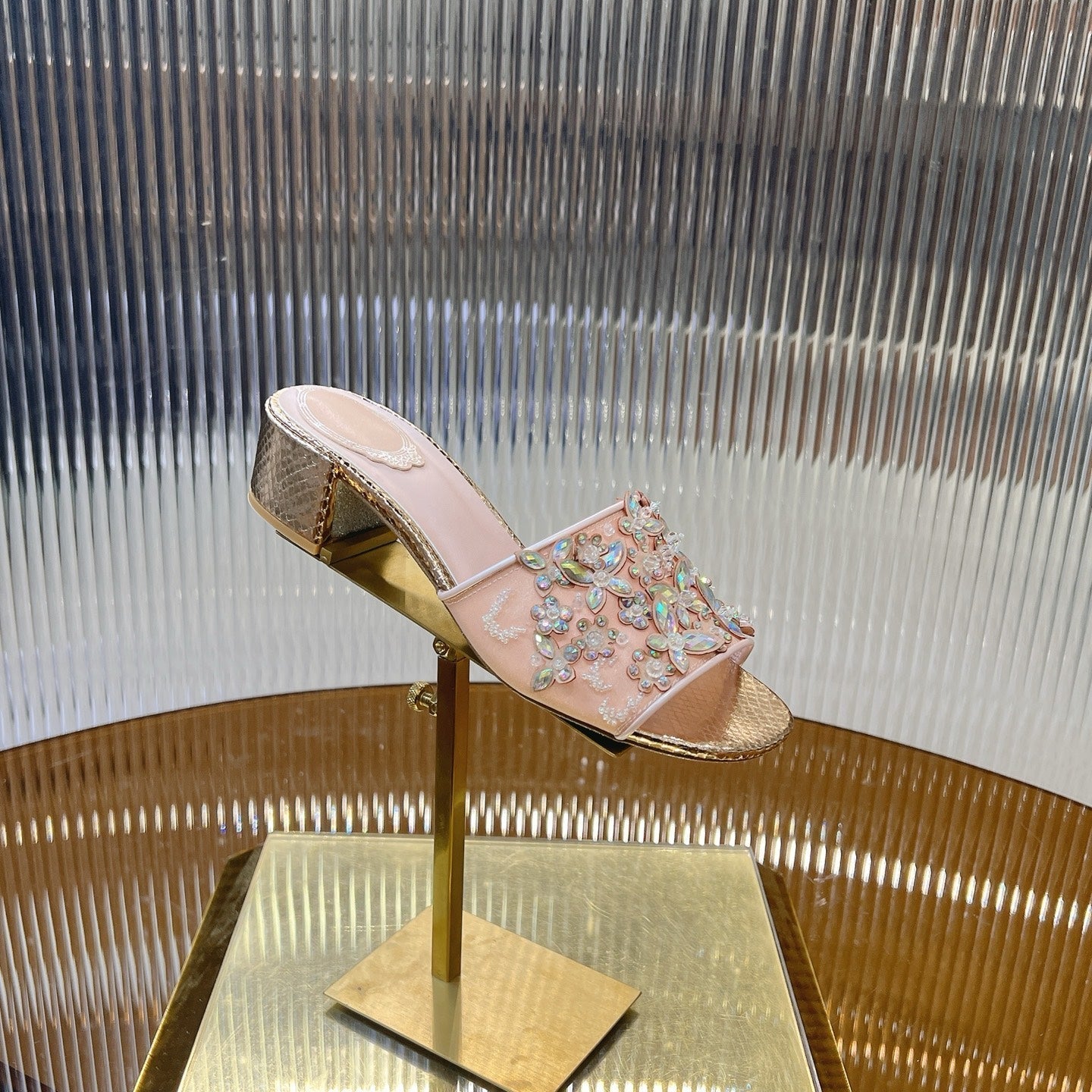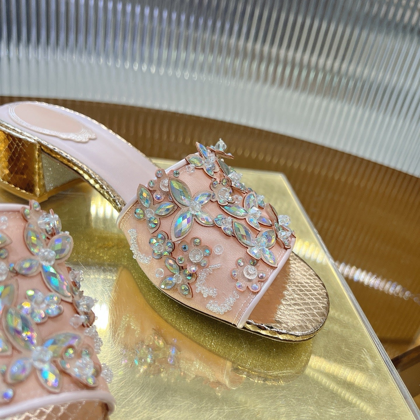 RC 25 Butterfly Flower Rhinestone Satin Sandals Pink Sheepskin 242920