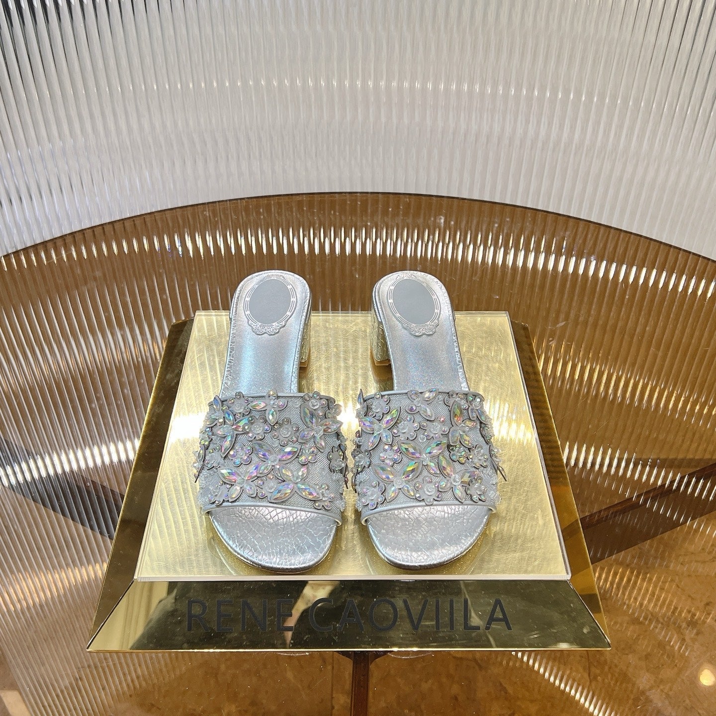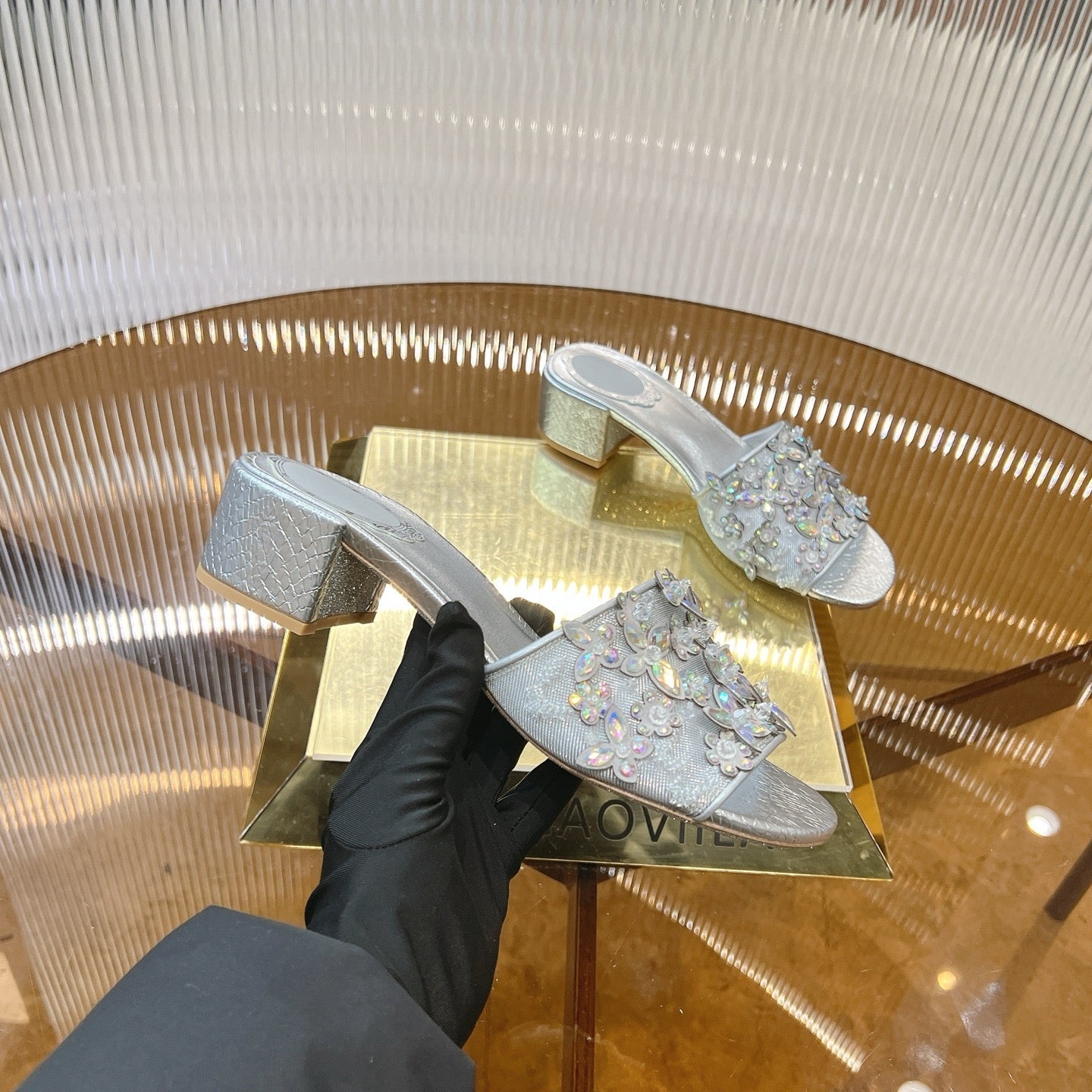RC 25 Butterfly Flower Rhinestone Satin Sandals Silver Sheepskin 242919