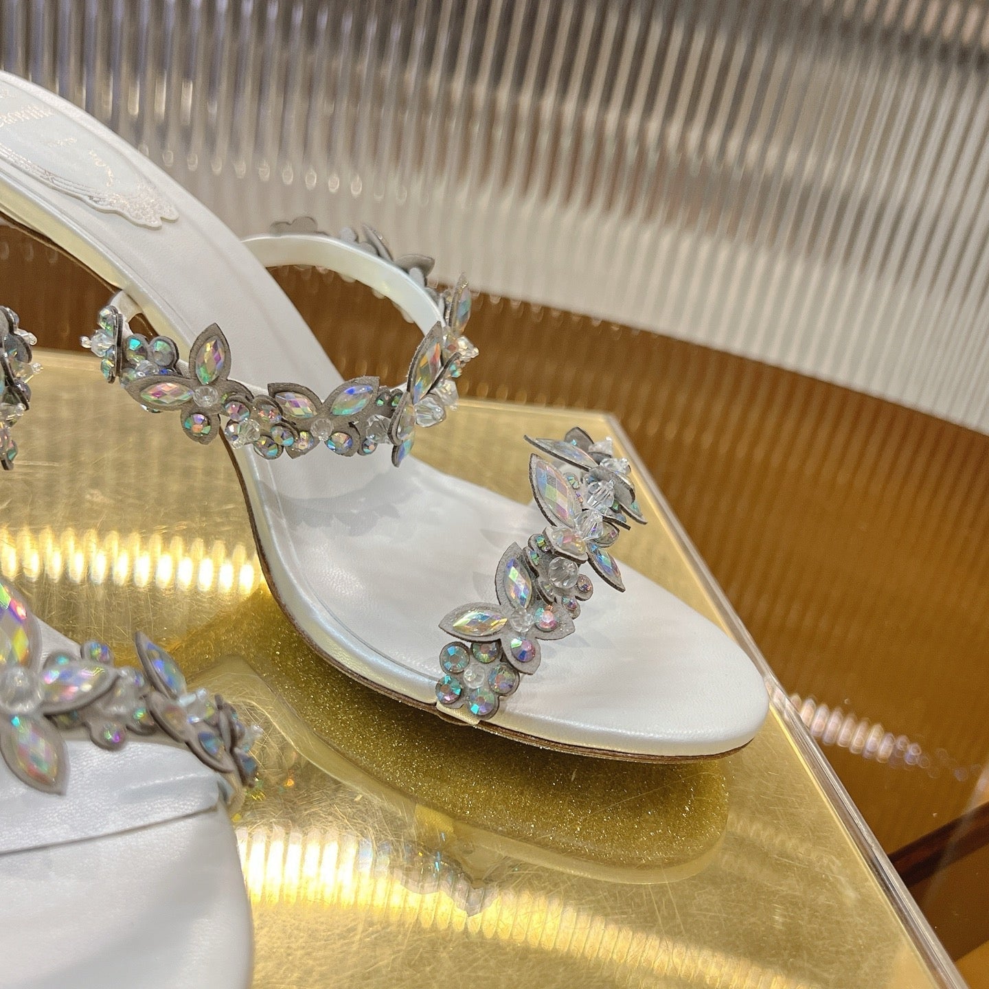 RC 25 Butterfly Flower Thick Heel Sandals White Sheepskin 242922
