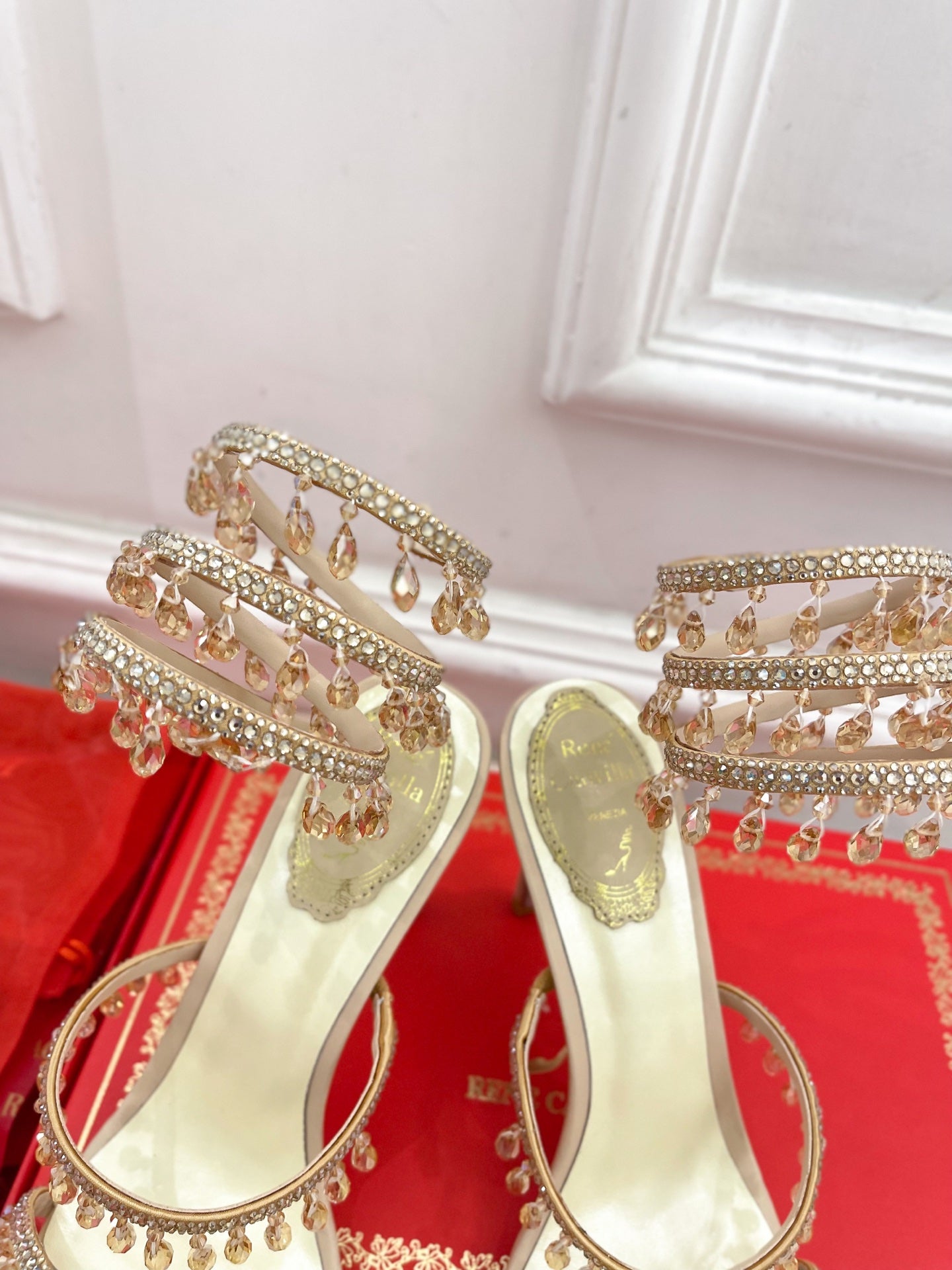RC 25 Crystal Chandelier Sandals White Sheepskin 221963