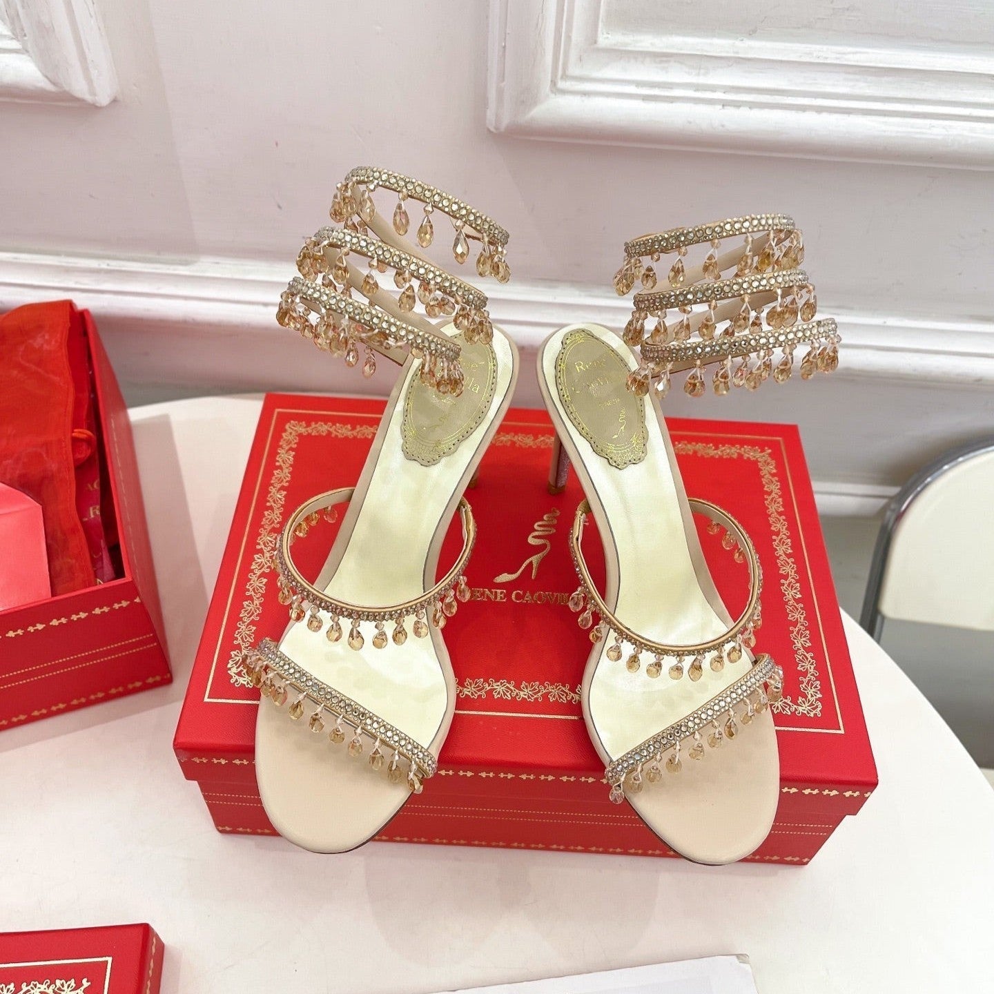 RC 25 Crystal Tassel High-Heeled Sandals Pink Nude Silk Crystal Diamond 251008