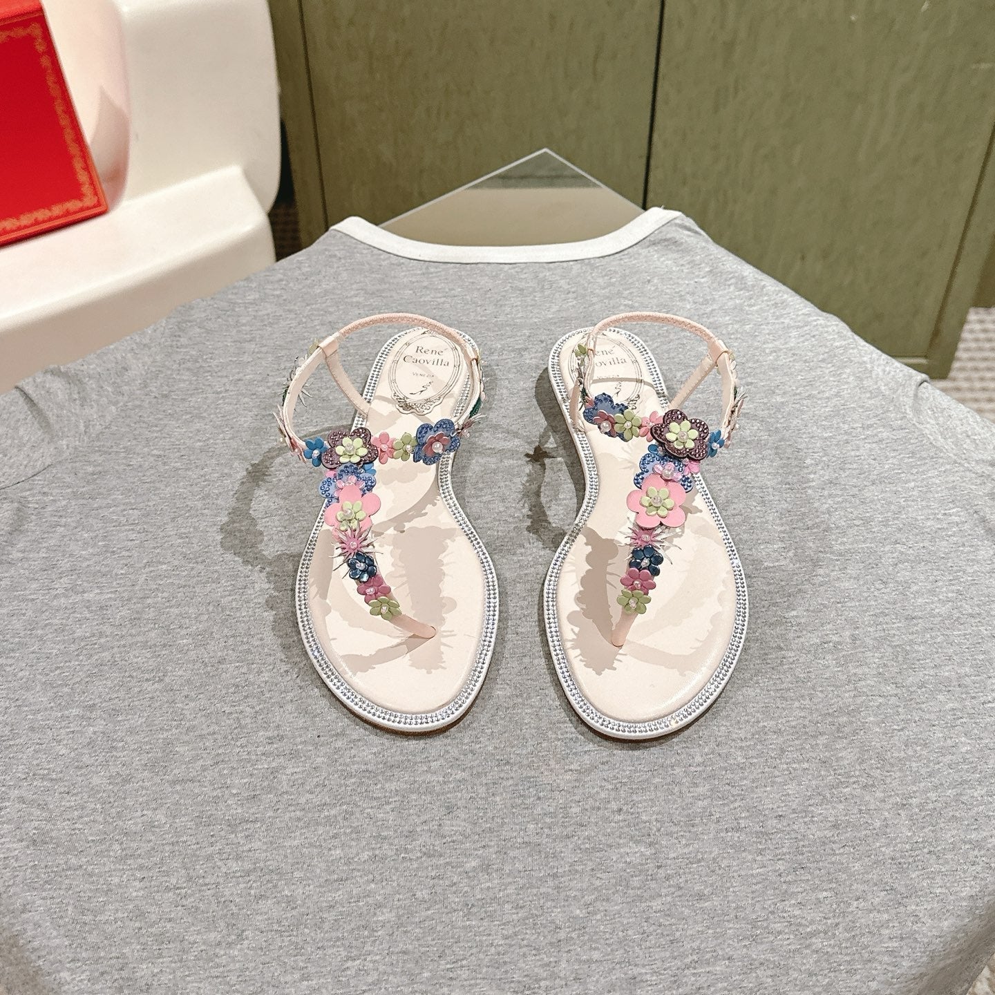 RC 25 Thong Multicolor Flower Flat Sole Light Pink Silk Rhinestones 268067