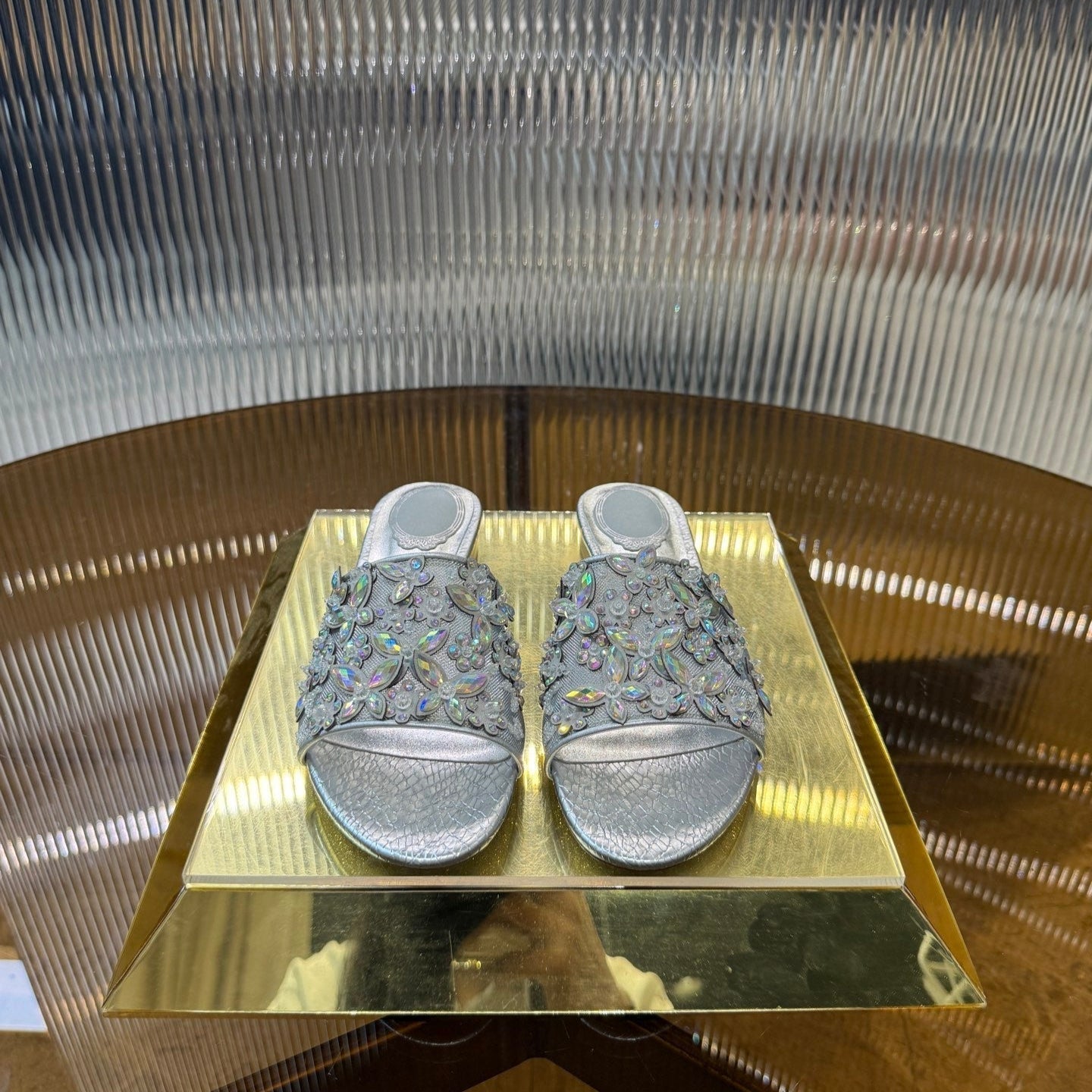 RC 25C Butterfly Flower Flat Sandals Slippers Sliver Sheepskin Rhinestone 275770