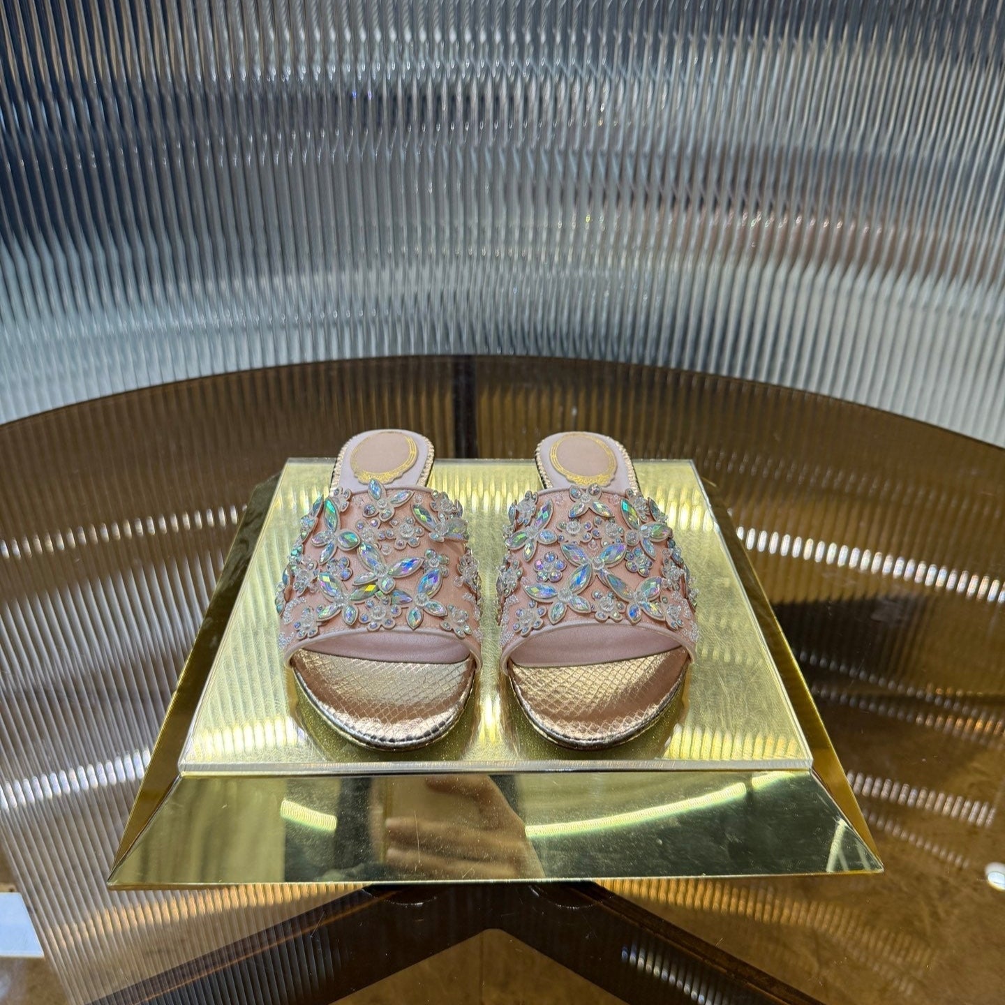 RC 25C Butterfly Flower Sandals Slippers Pink Sheepskin Rhinestone 275771