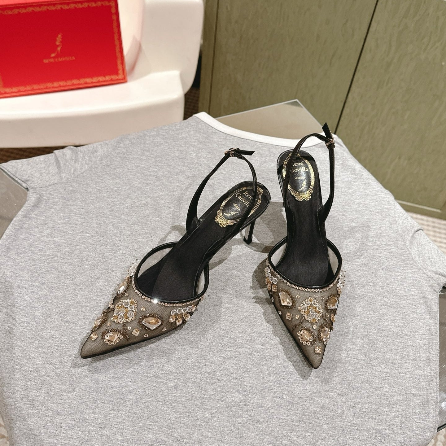 RC 25C Slingback Diamond High Heel Multicolor Silk Rhinestones 268077