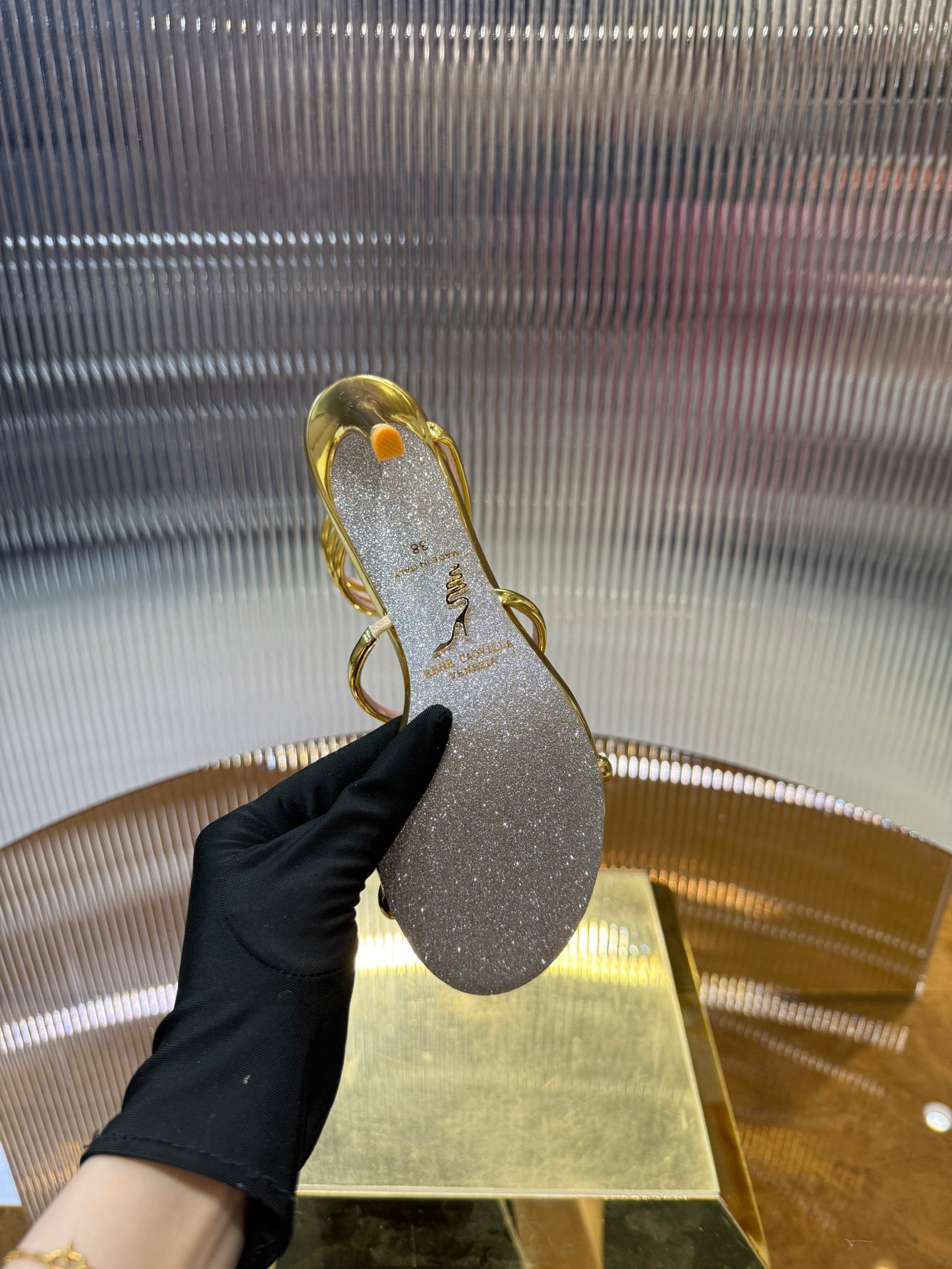 RC 25C Snake-Shaped Sandals 9.5cm Gold Sheepskin 310629
