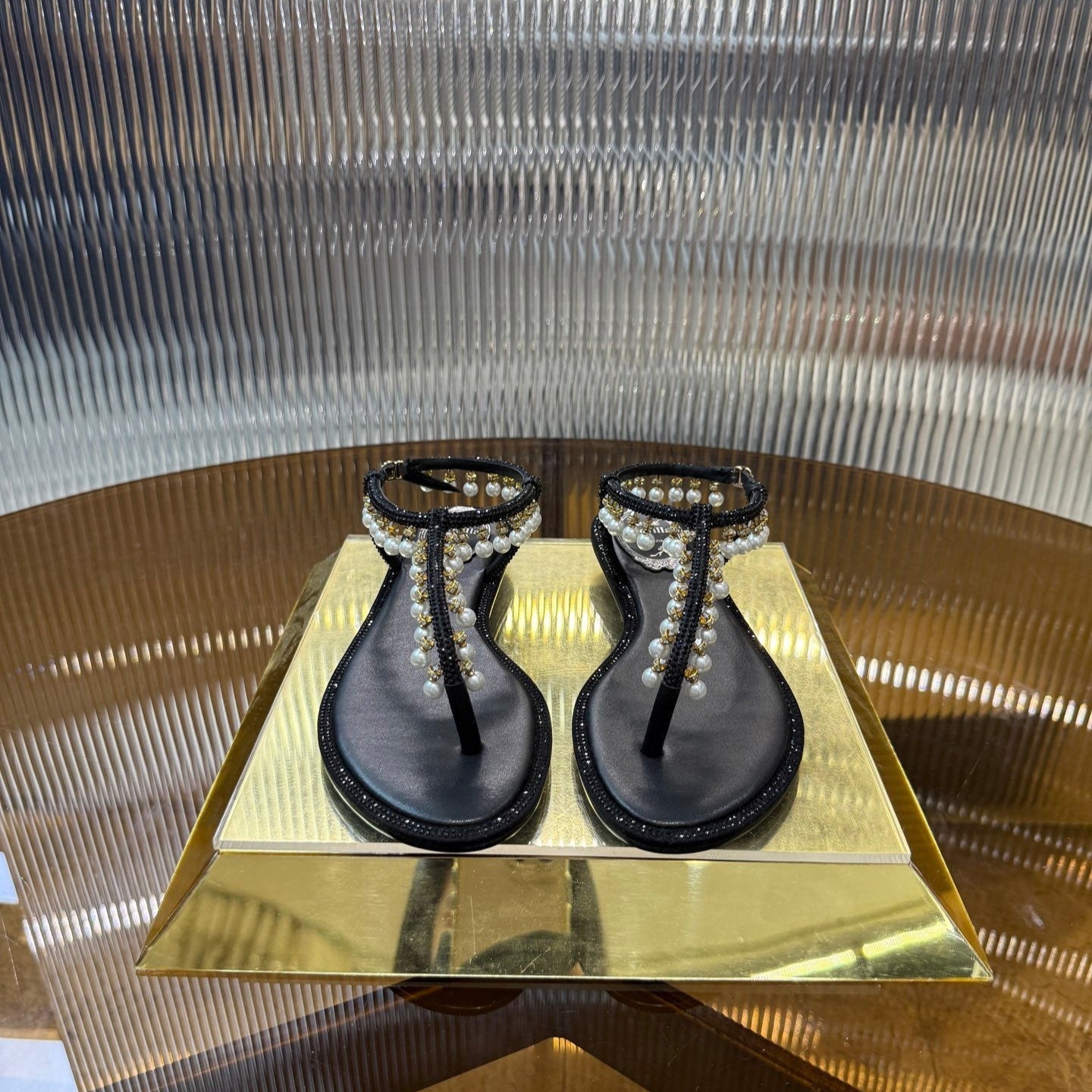 RC 25C Thong Diamond Flat Sandals Black Silk Rhinestone 275773