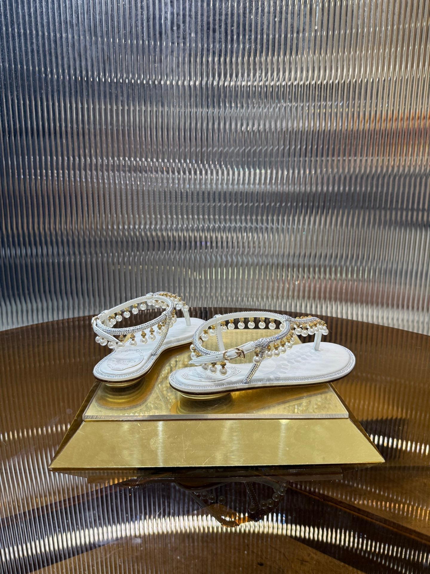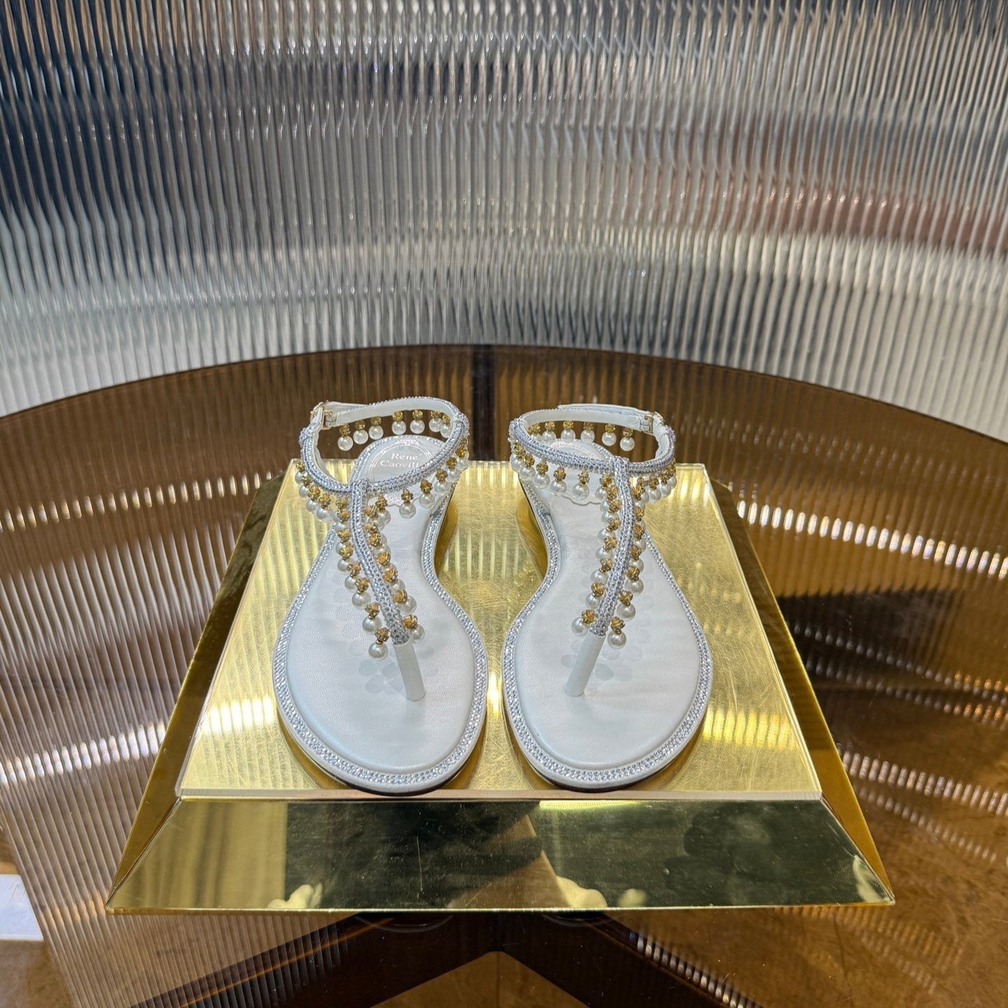RC 25C Thong Diamond Flat Sandals White Silk Rhinestone 275772