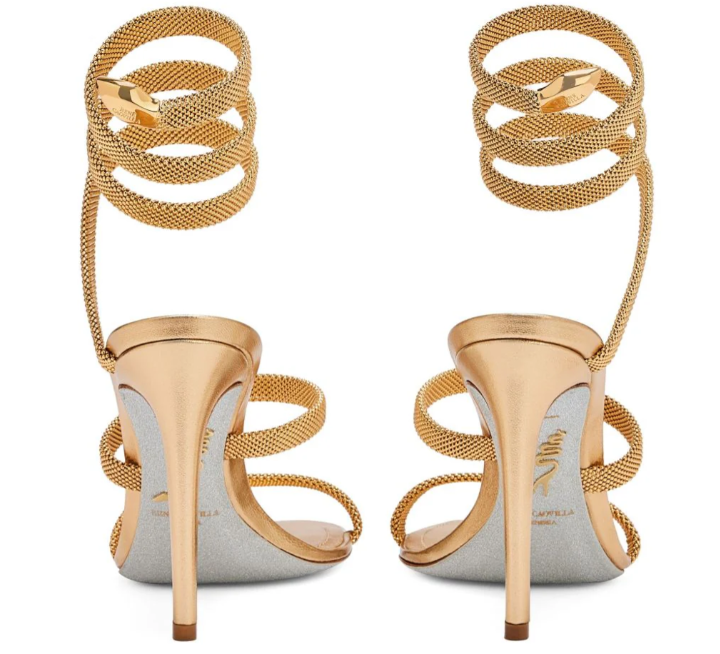 RC Cleo 105mm Crystal-Embellished Sandals Beige Satin Leather