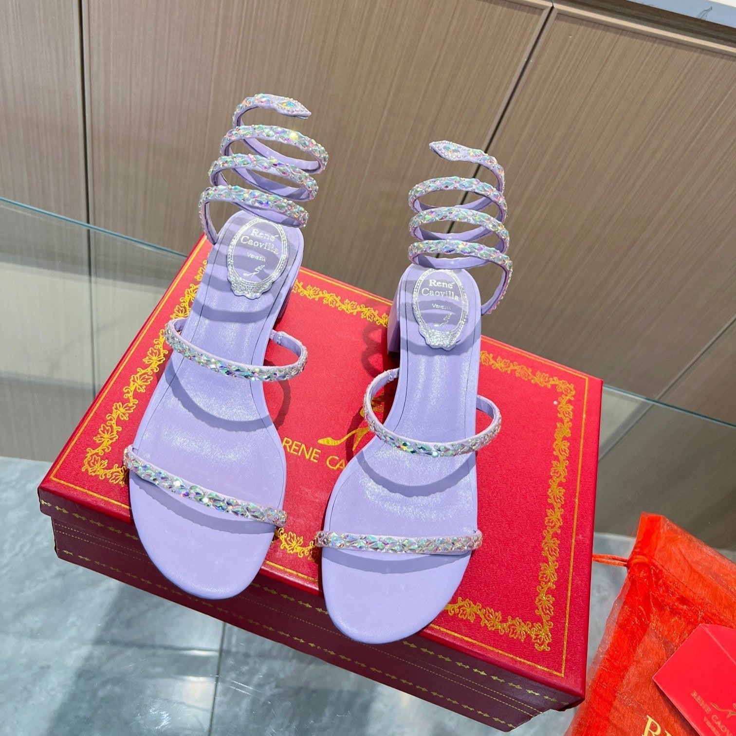RC Diamond Sandals Purple Silk Creole Glass Diamond 341985