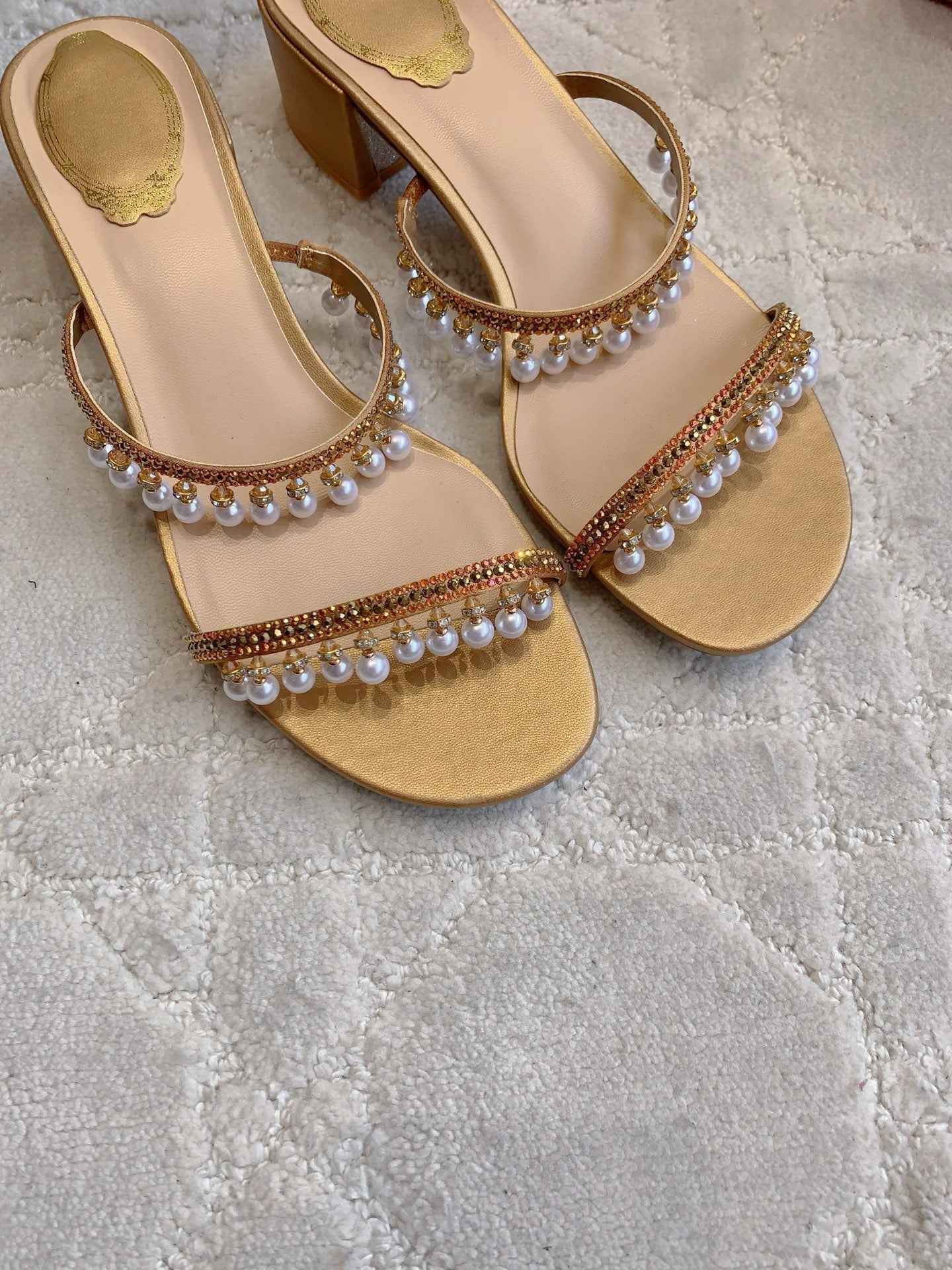 RC Pearl Slippers Gold Sheepskin 328433