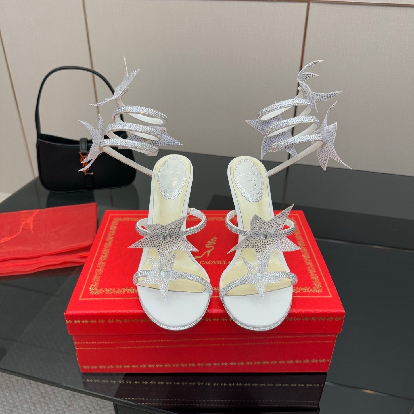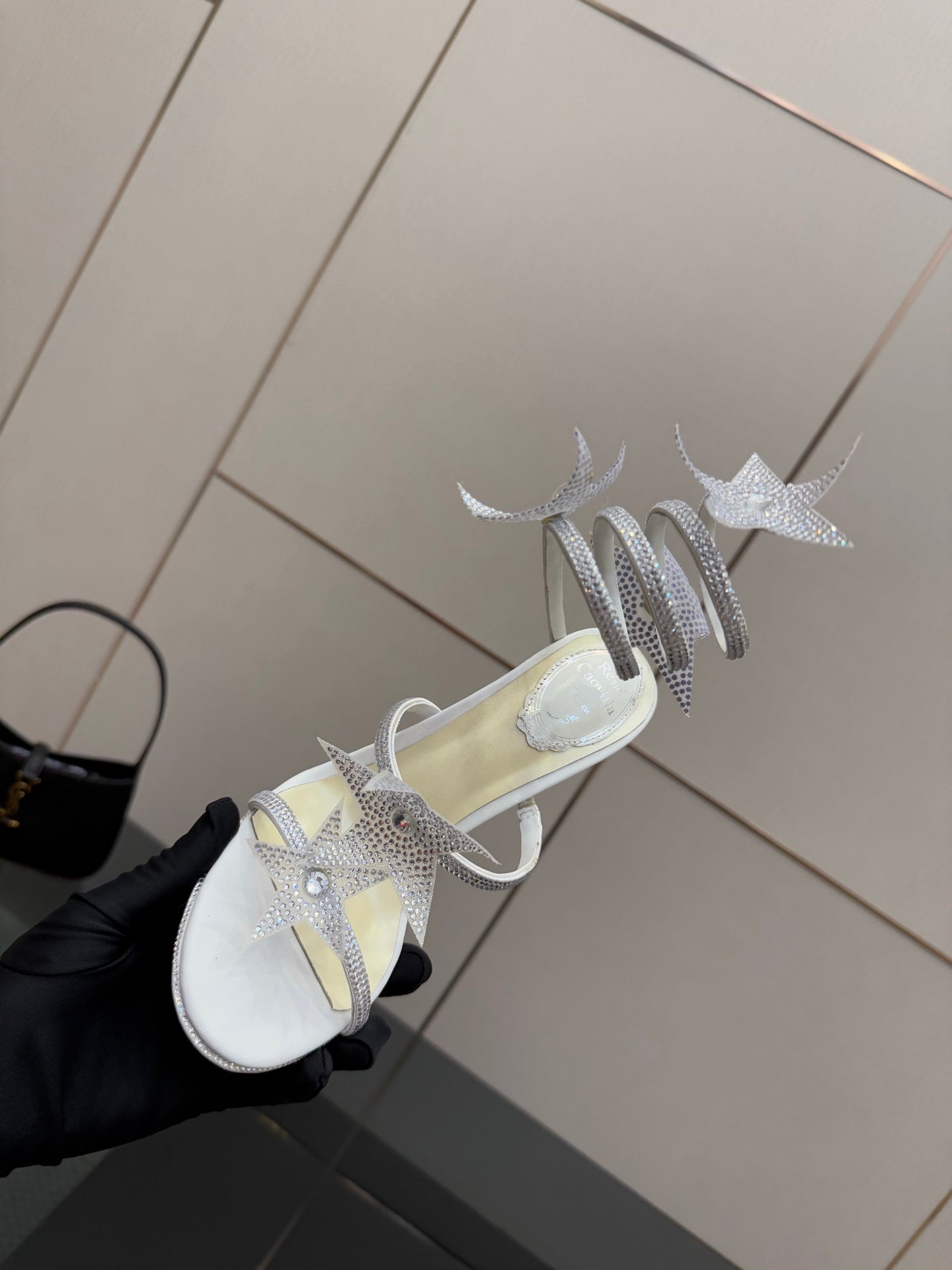 RC Sandals 9.5cm White Rhinestone Silk 302585