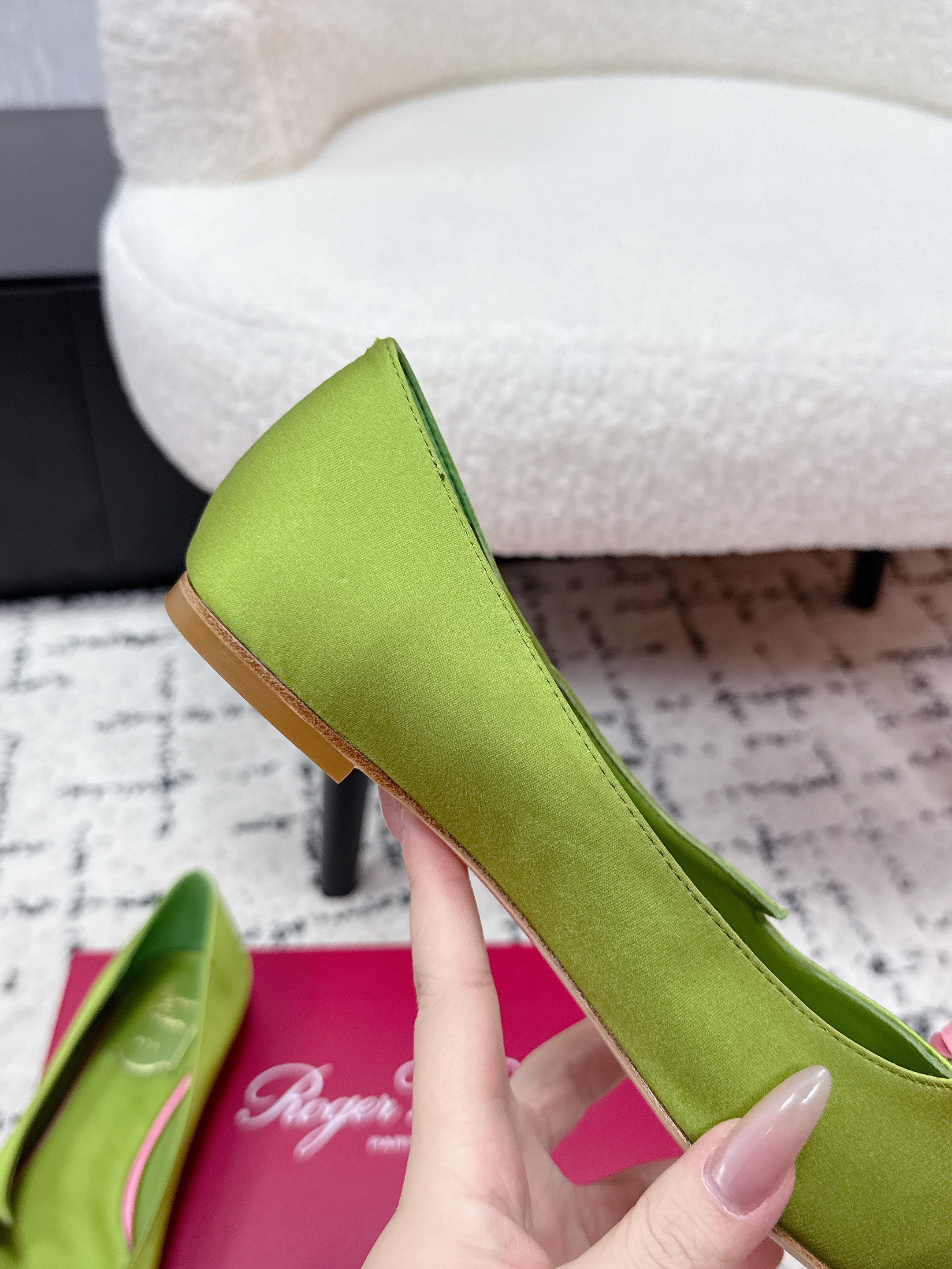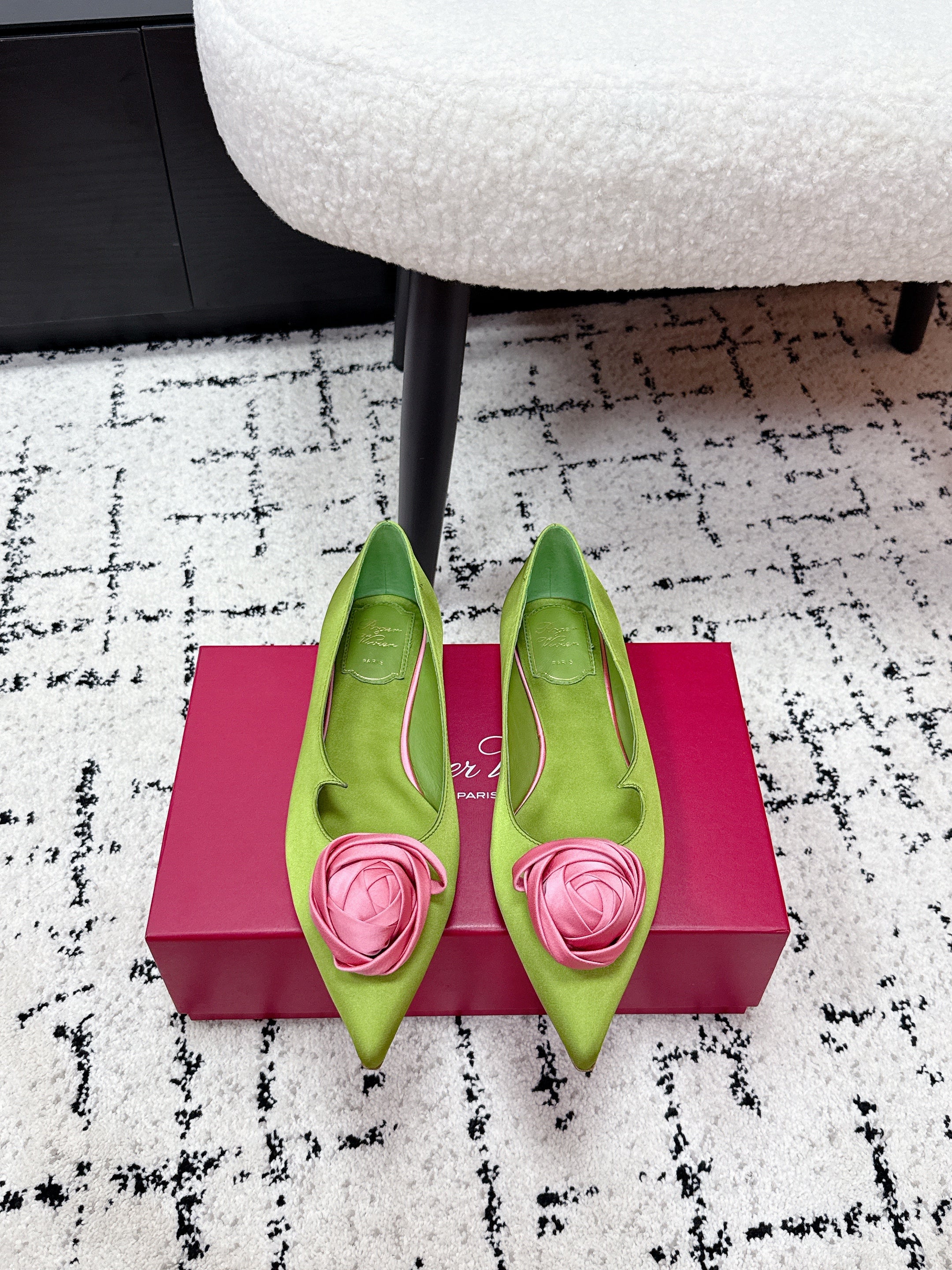 RV Rose Vivier Flower Slingback Flat Pink Green Satin 617284