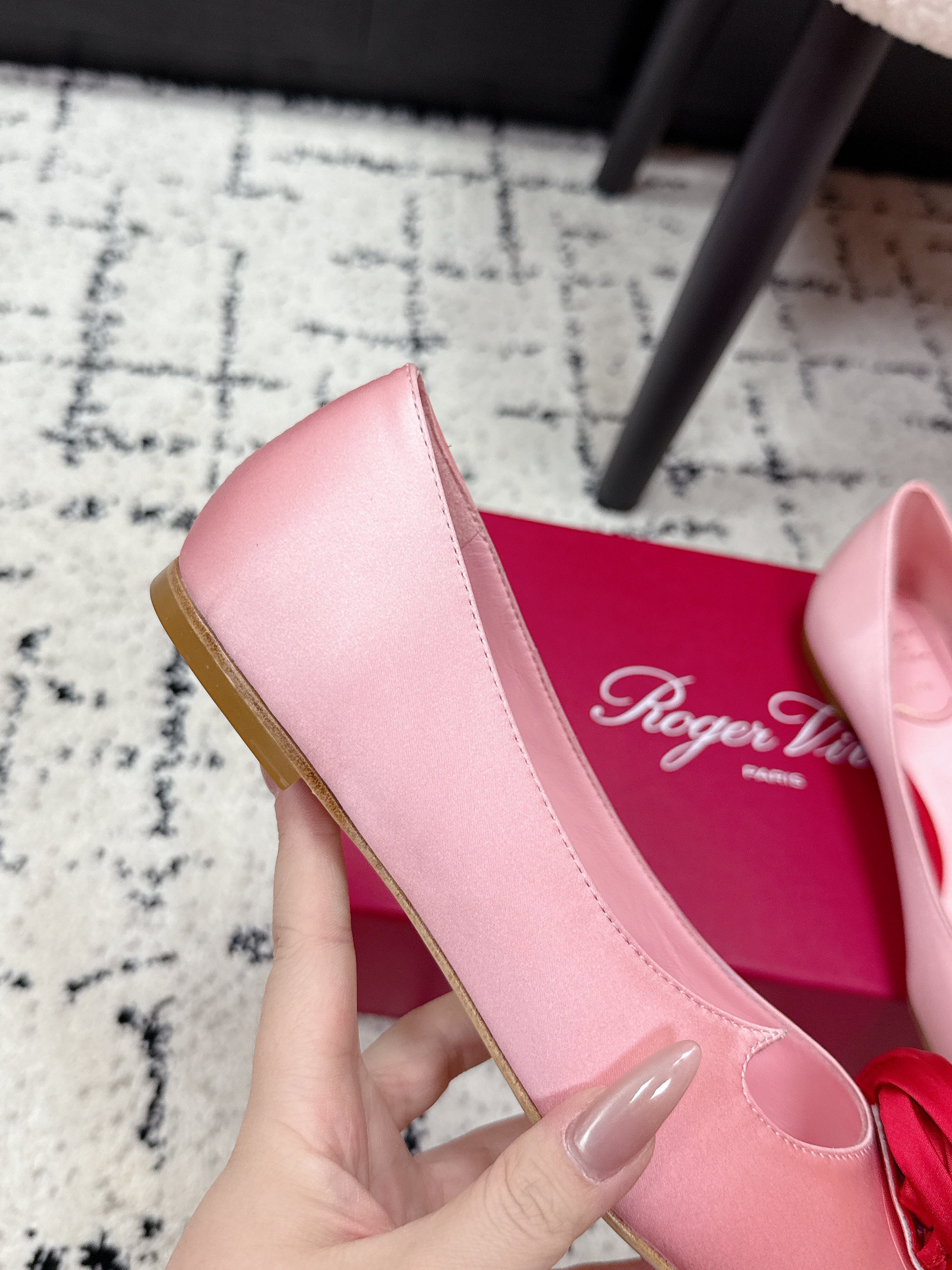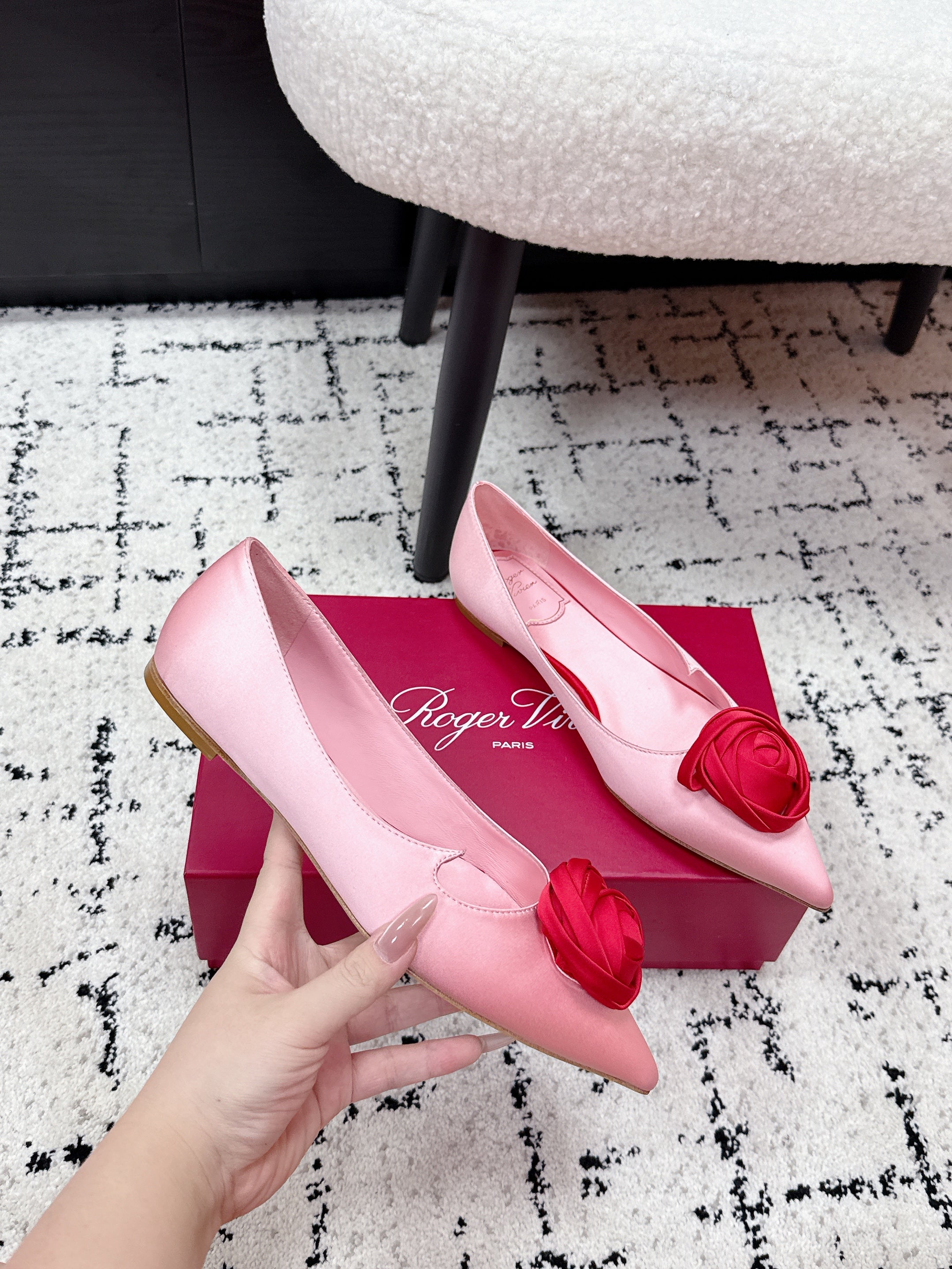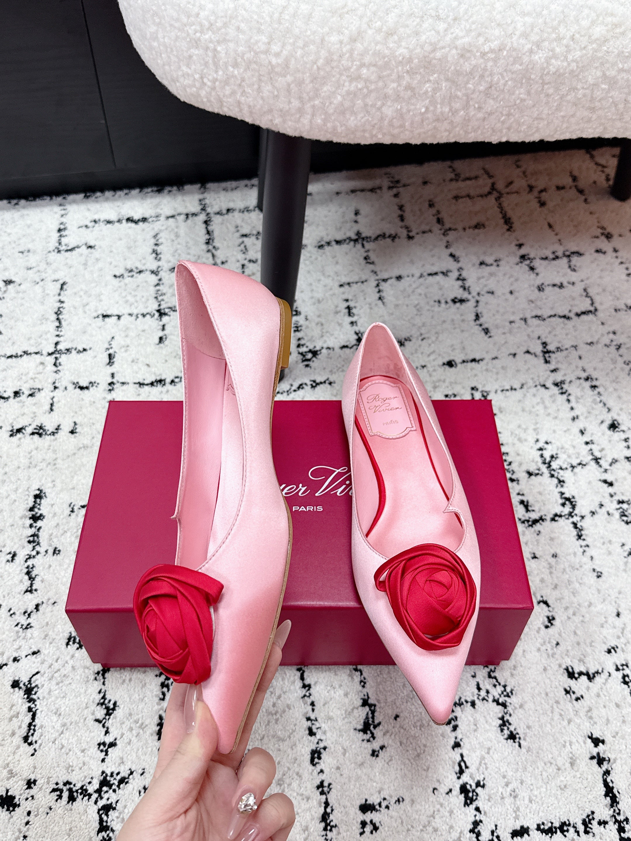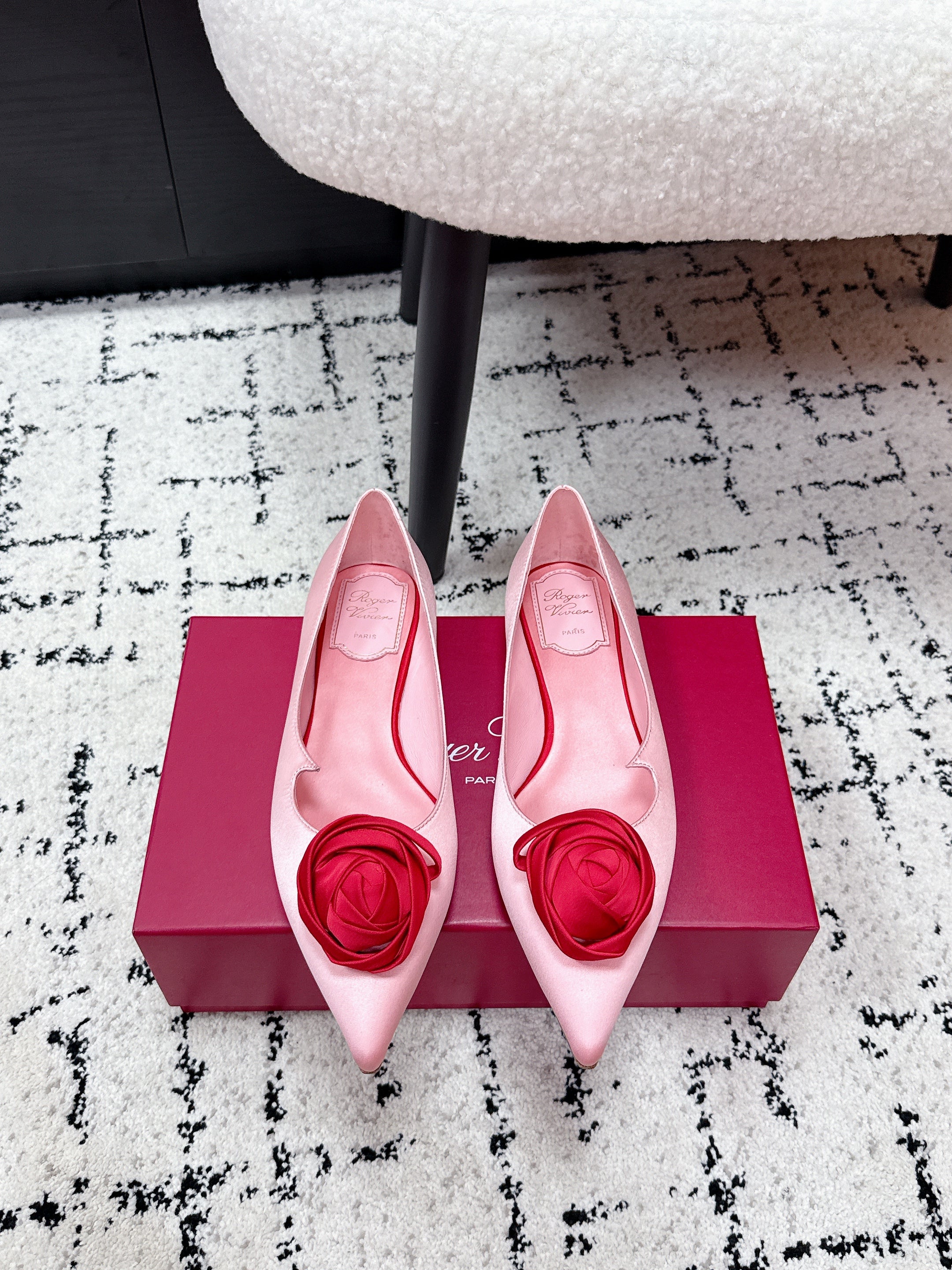 RV Rose Vivier Flower Slingback Flat Pink Red Satin 617286