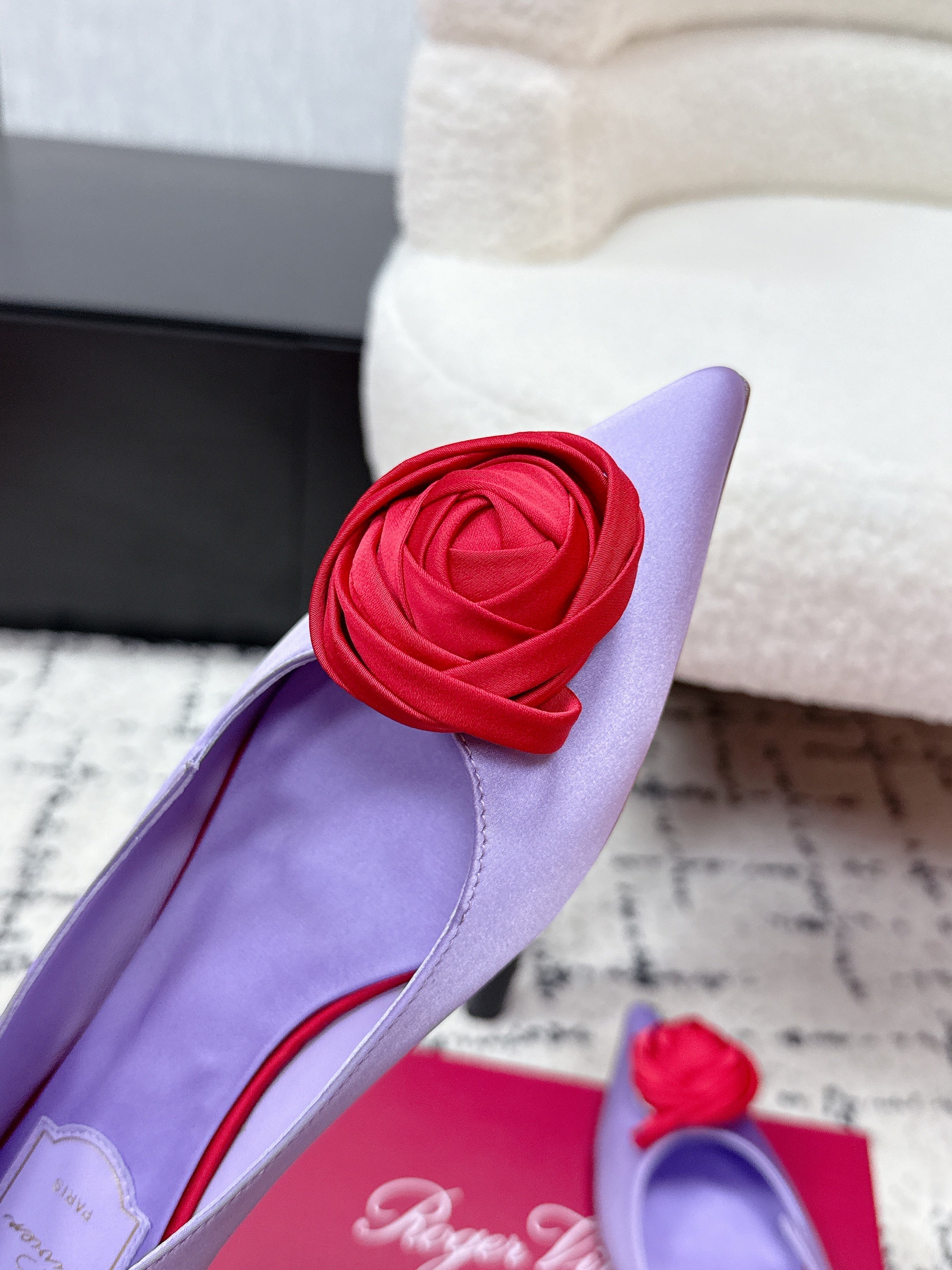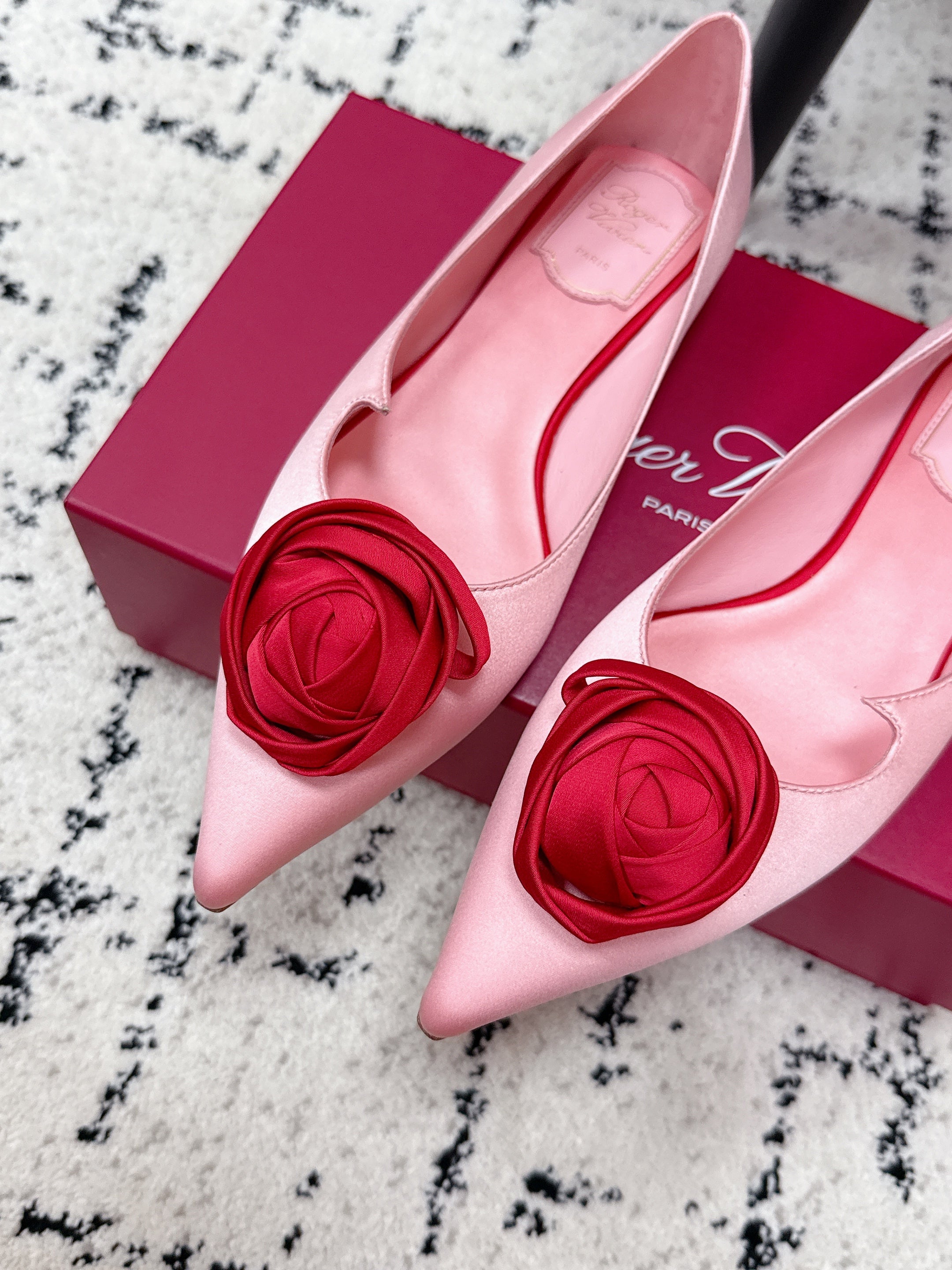 RV Rose Vivier Flower Pumps 10cm Pink Red Satin 617294