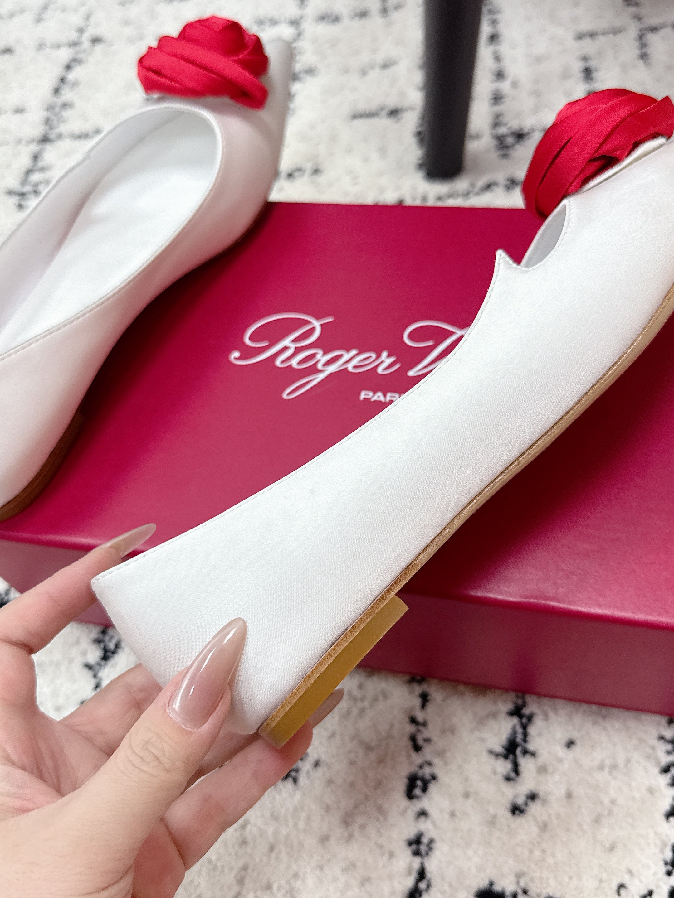 RV Rose Vivier Flower Slingback Flat White Red Satin 617288