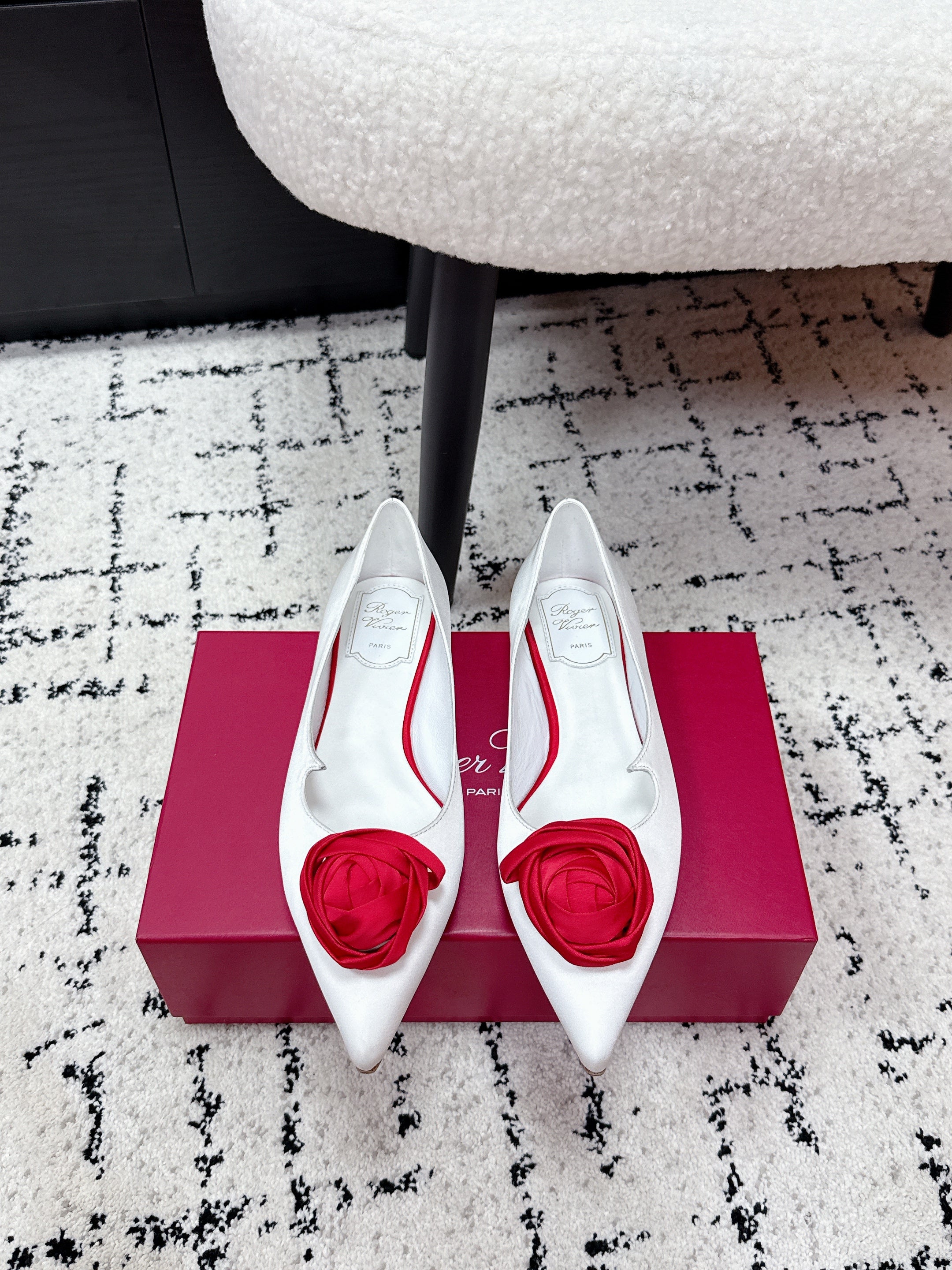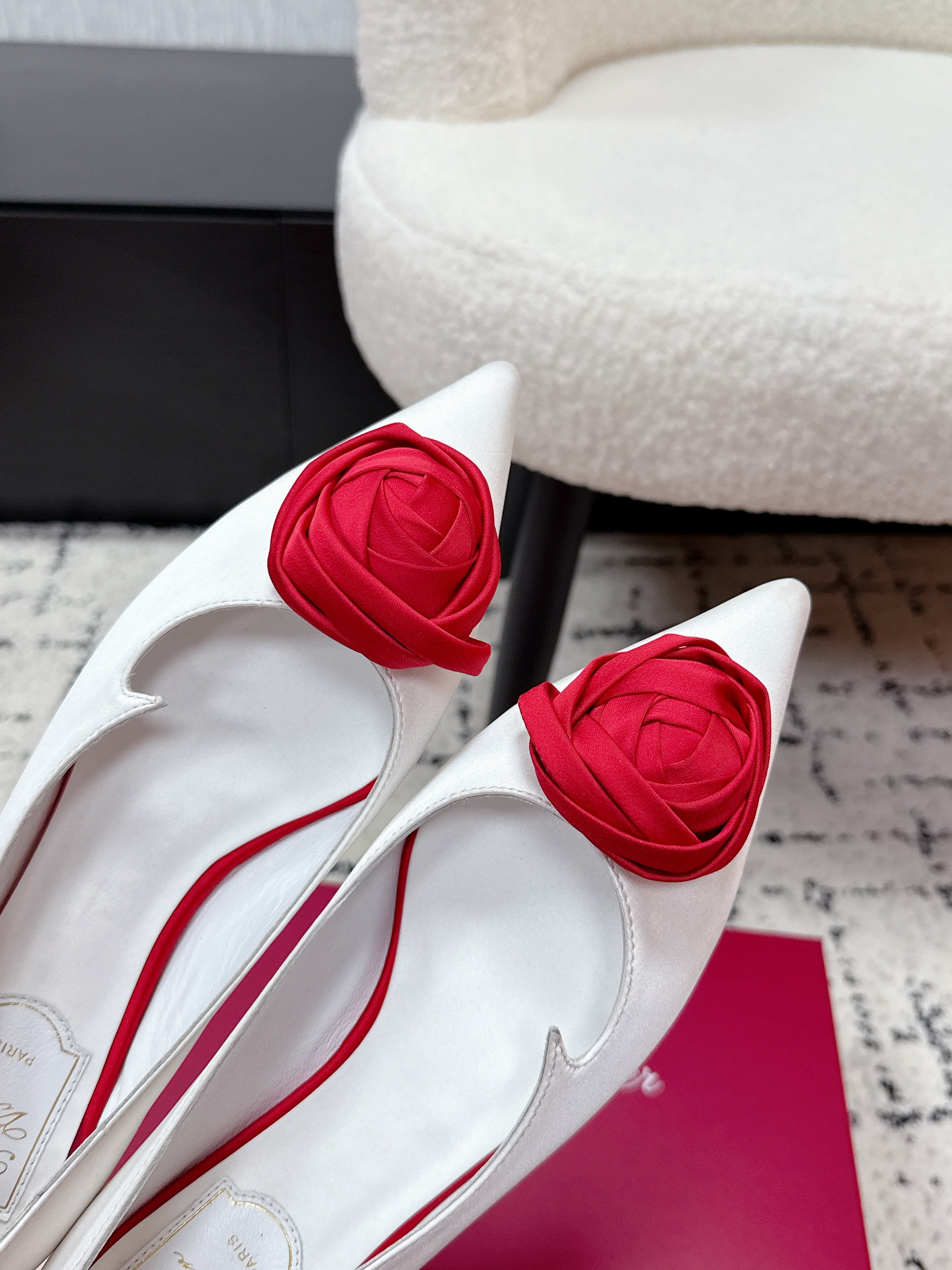 RV Rose Vivier Flower Pumps 10cm White Red Satin 617293