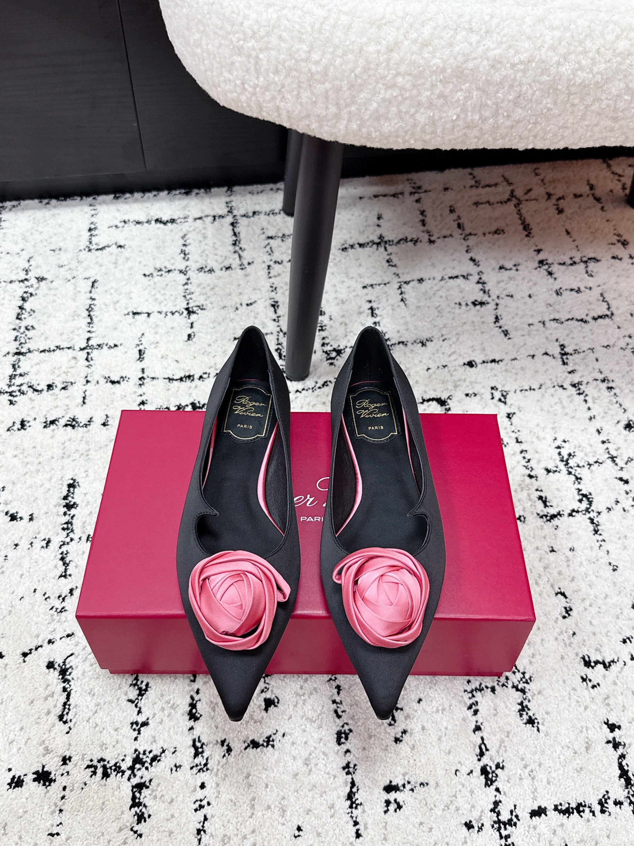 RV Rose Vivier Flower Slingback Flat Black Pink Satin 617289