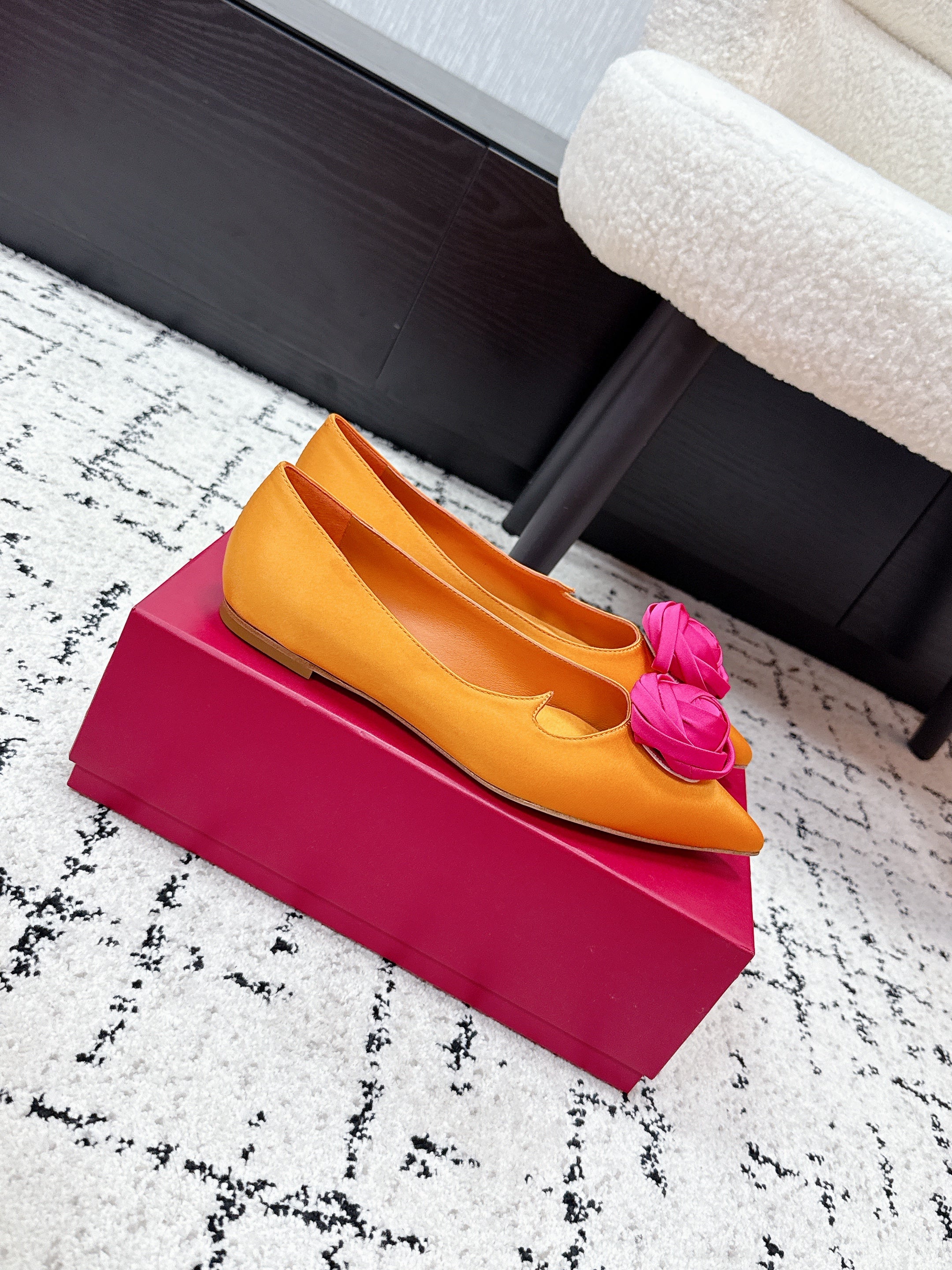 RV Rose Vivier Flower Slingback Flat Orange Pink Satin 617290