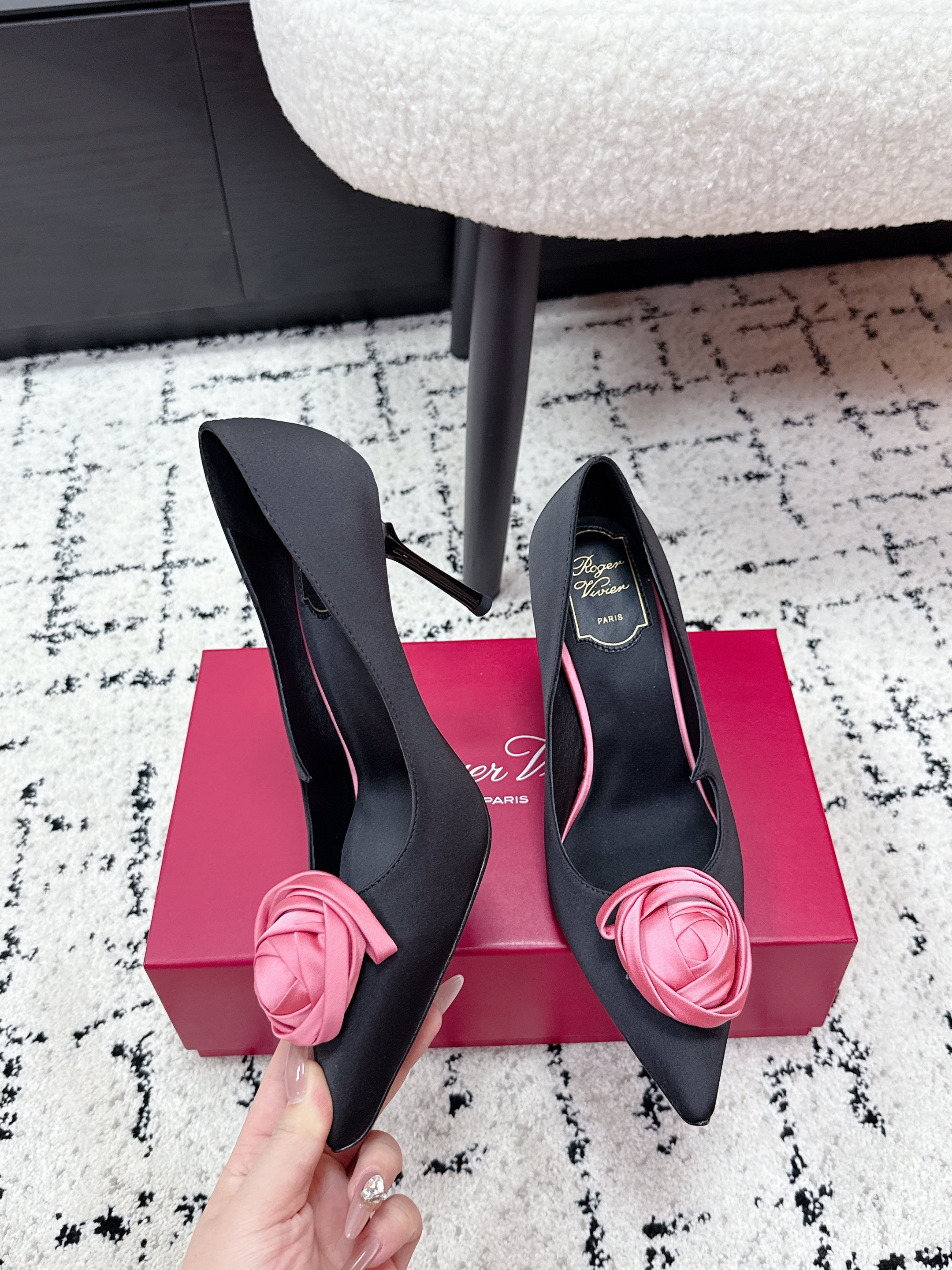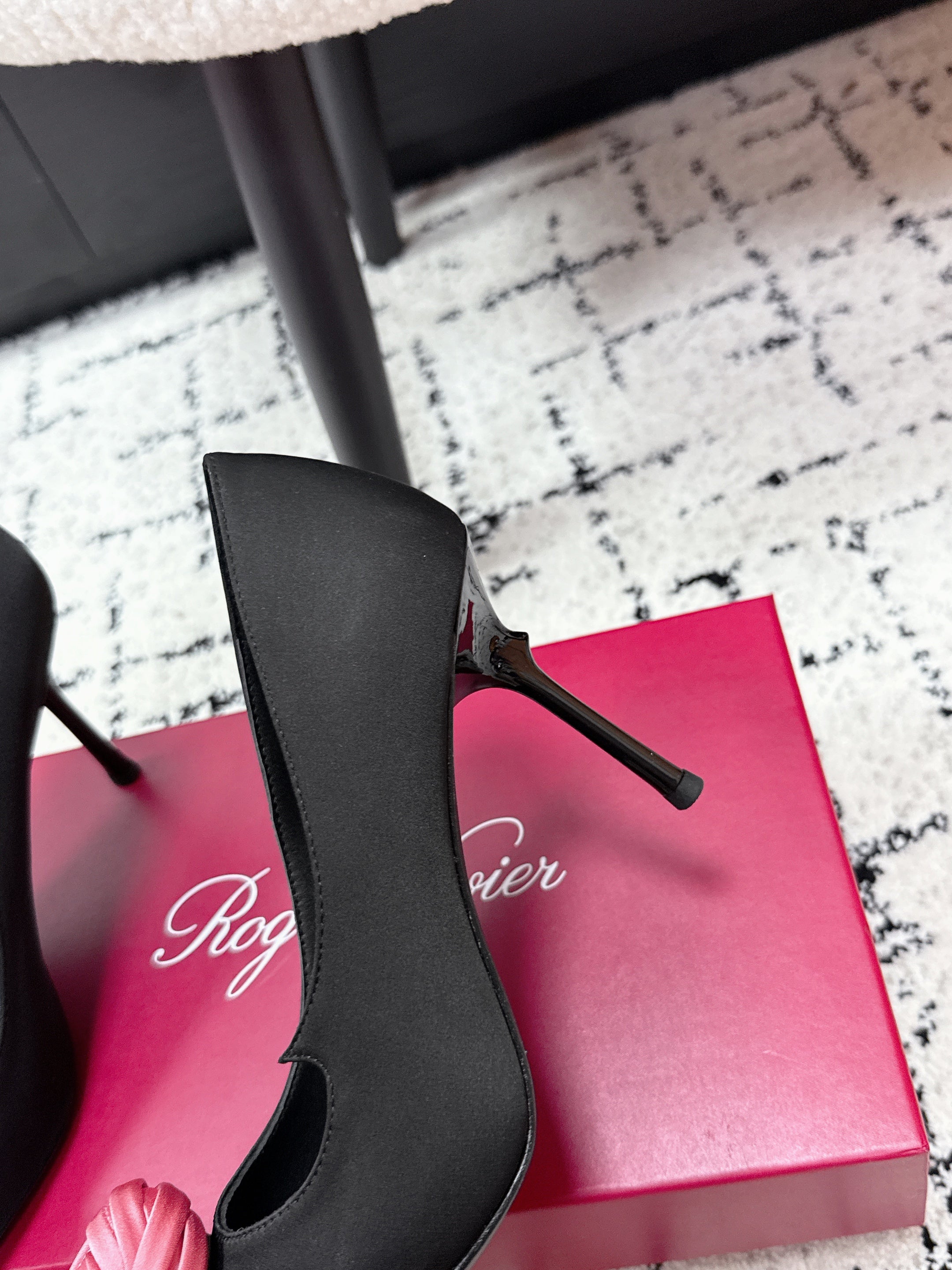 RV Rose Vivier Flower Pumps 10cm Pink Black Satin 617291