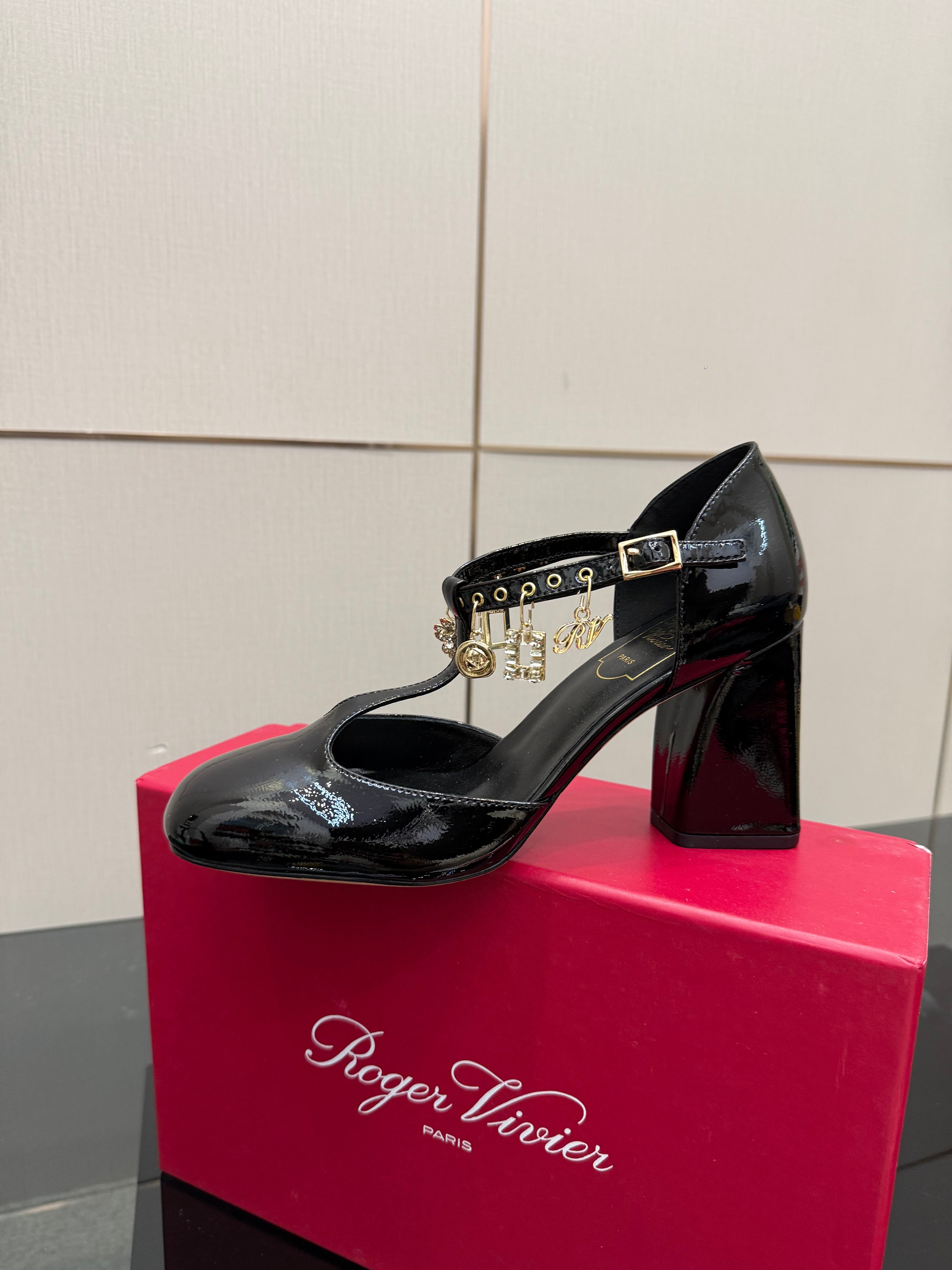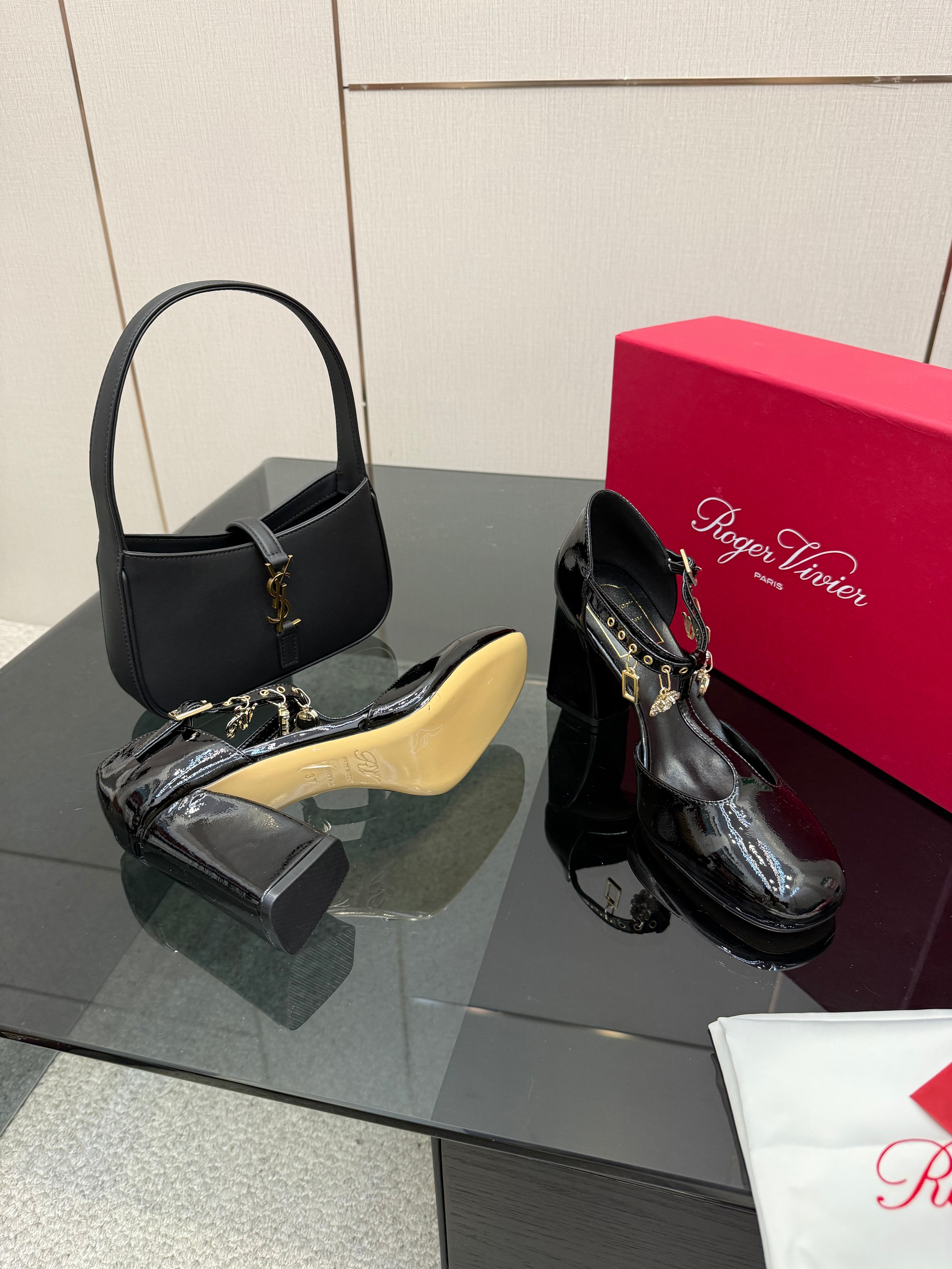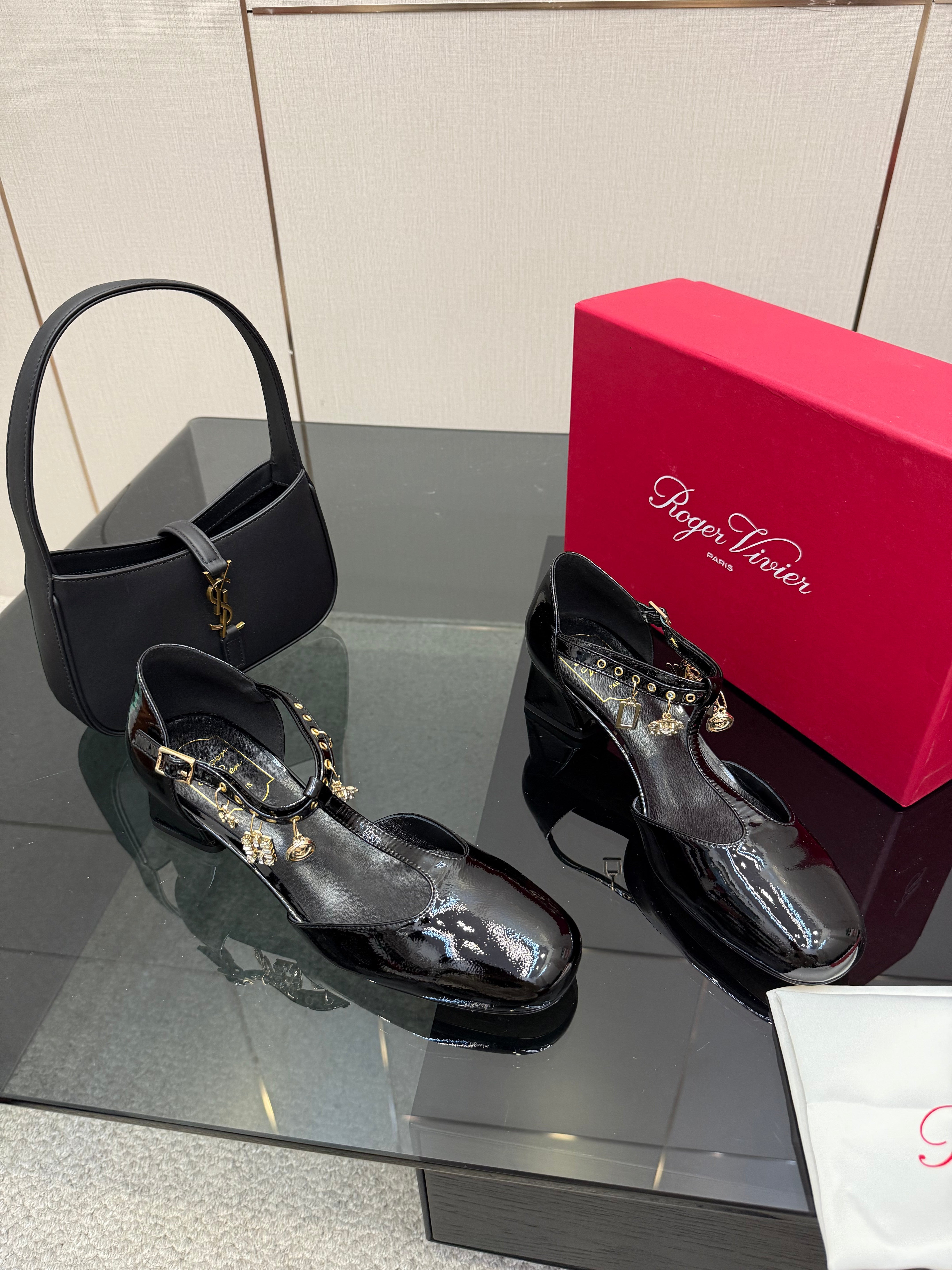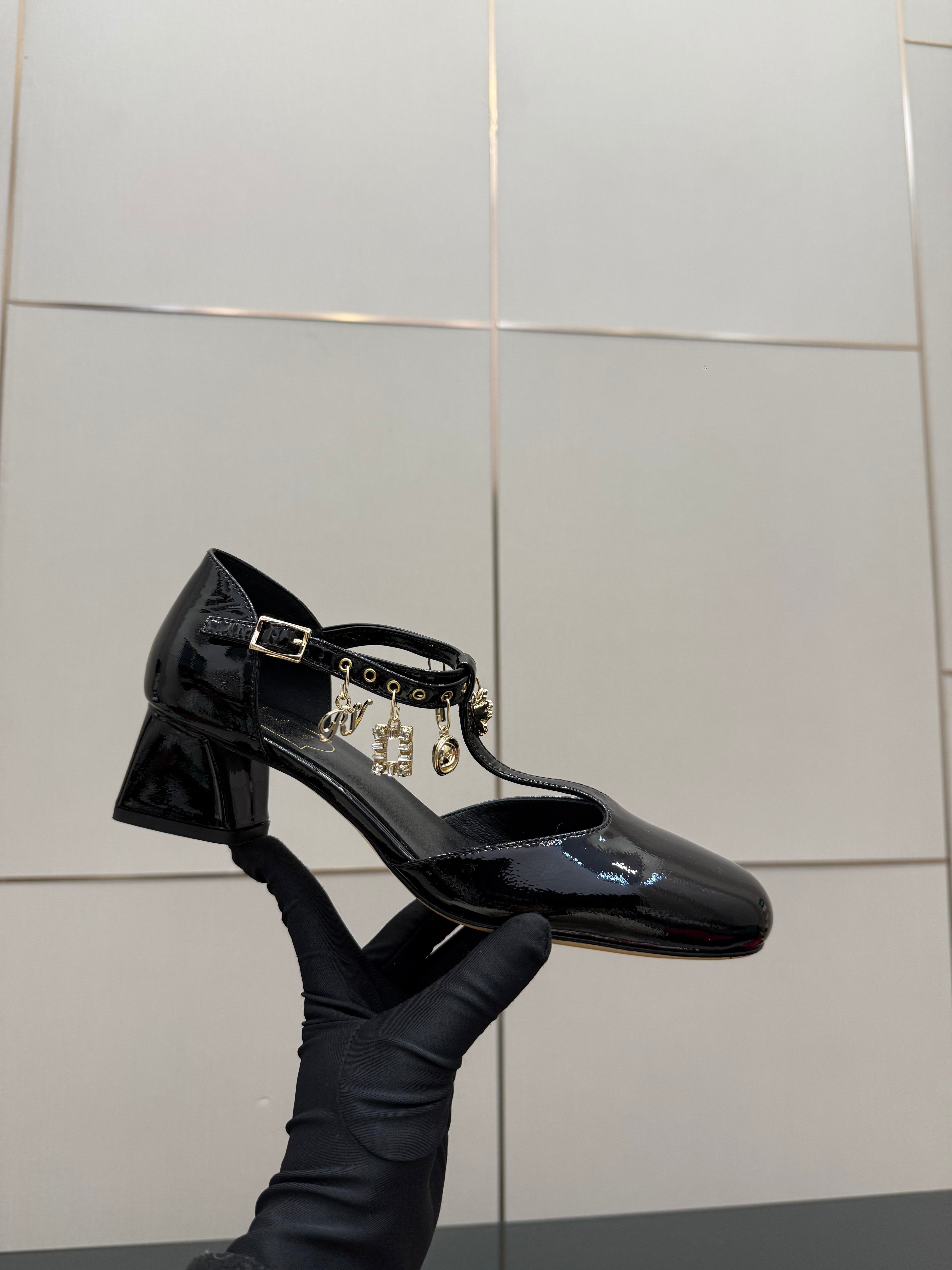 RV 26WF New T-Strap Rhinestone Strap Sandals 7cm Black Patent Leather 629891