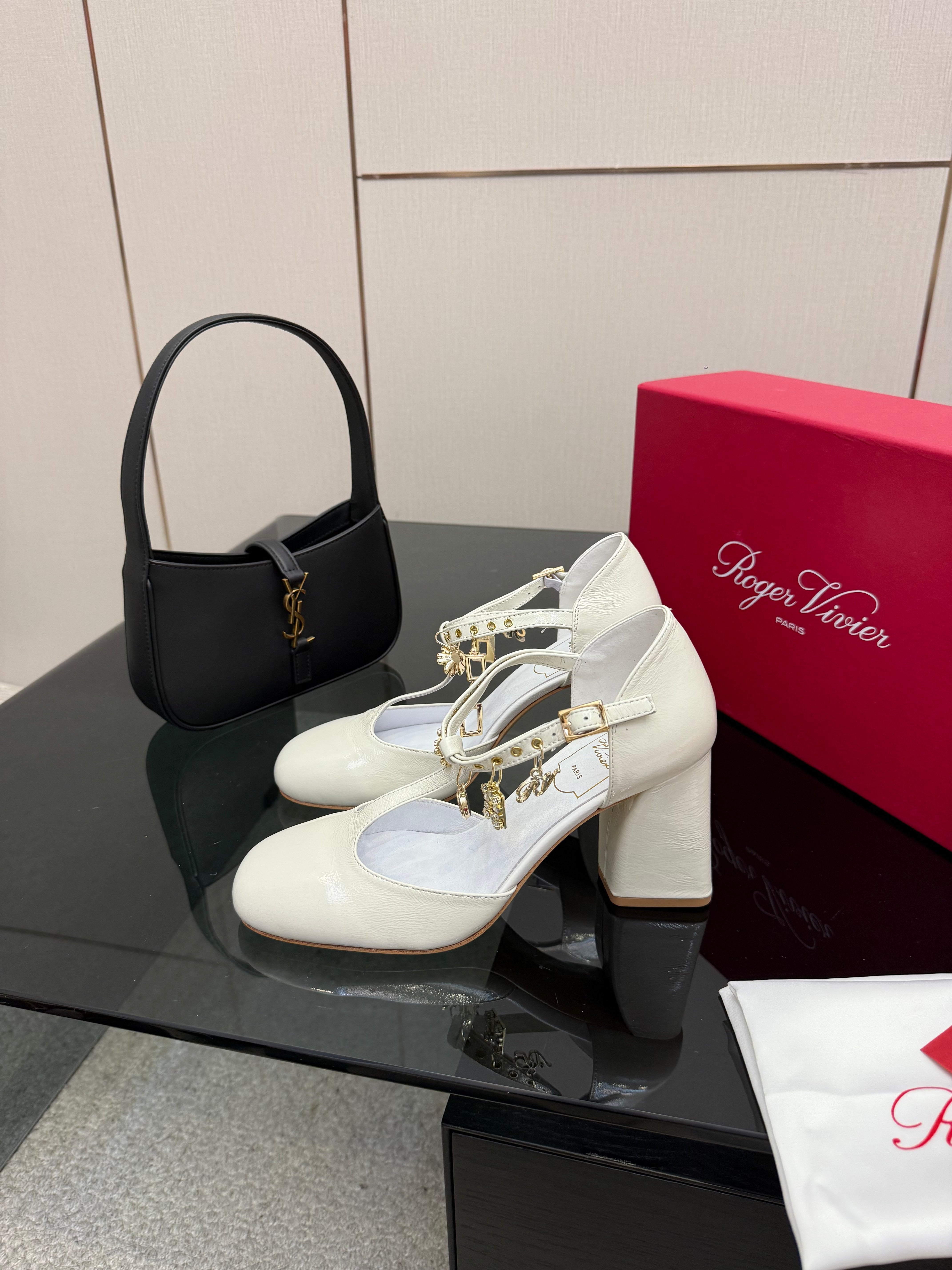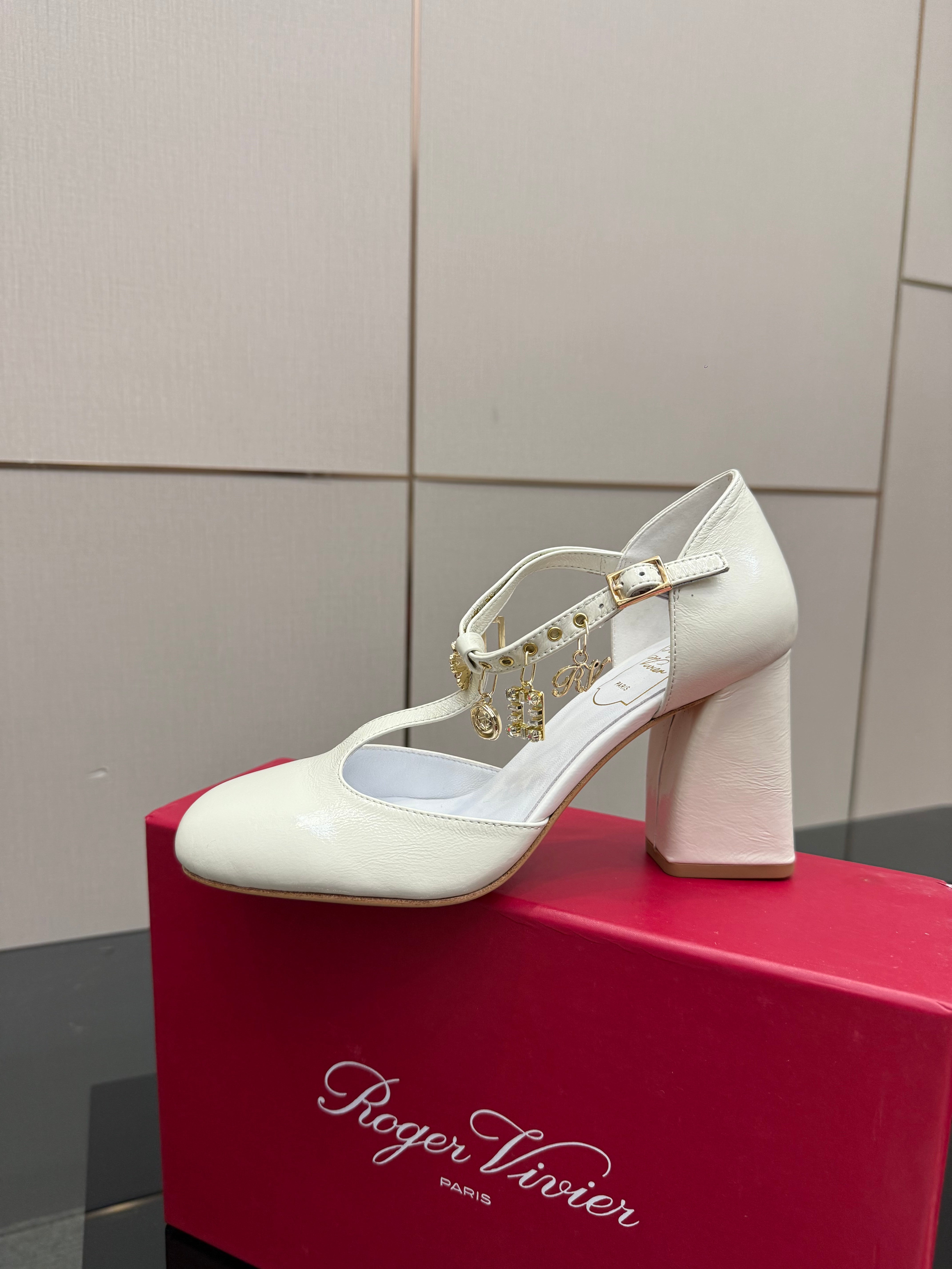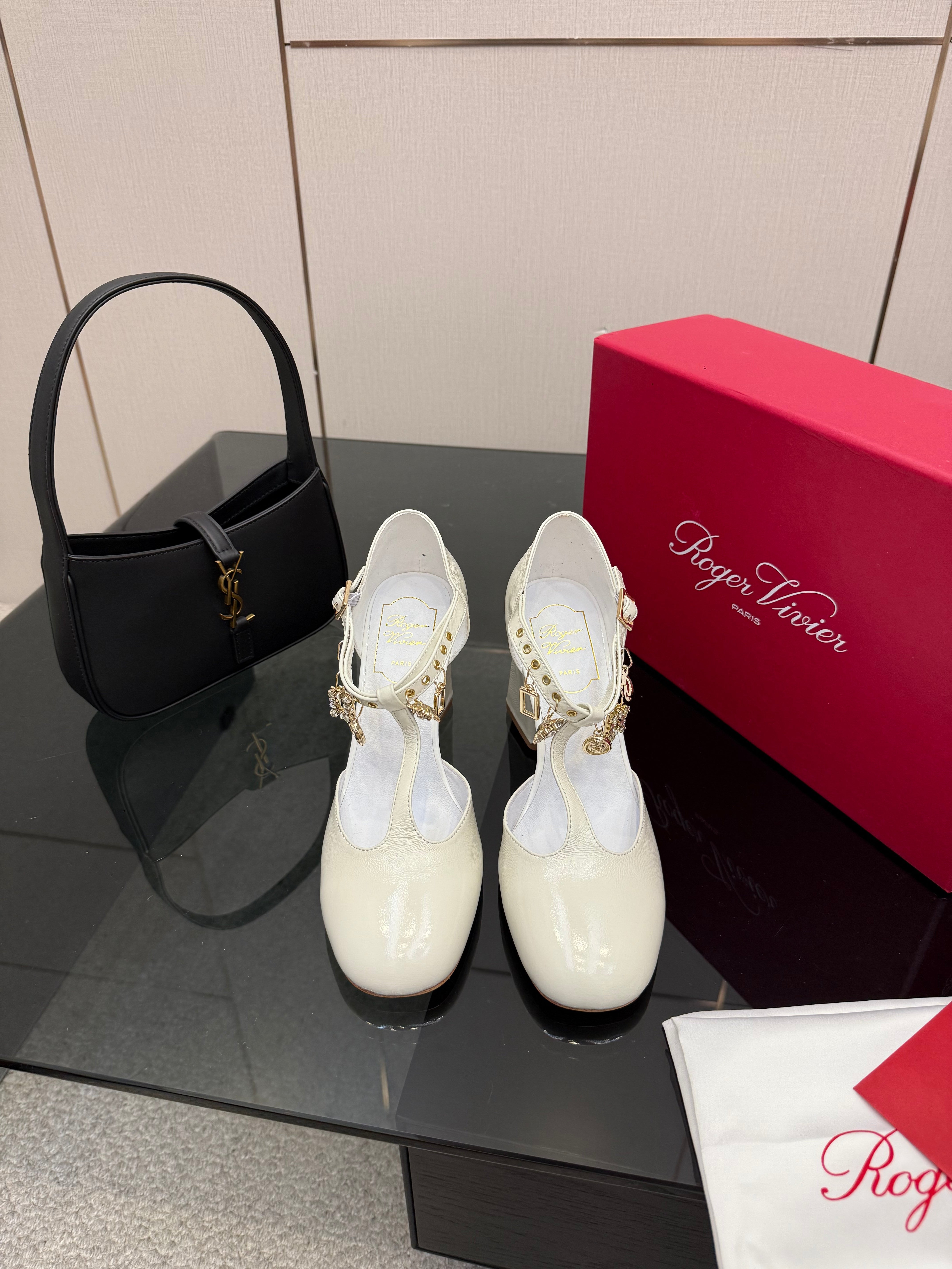 RV 26WF New T-Strap Rhinestone Strap Sandals 7cm White Patent Leather 629893