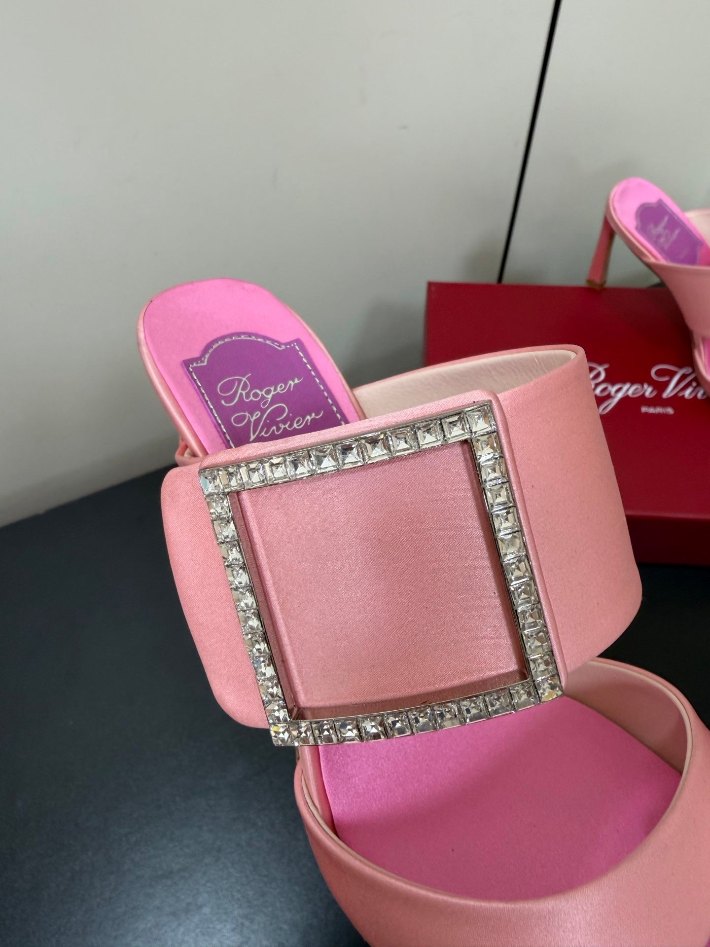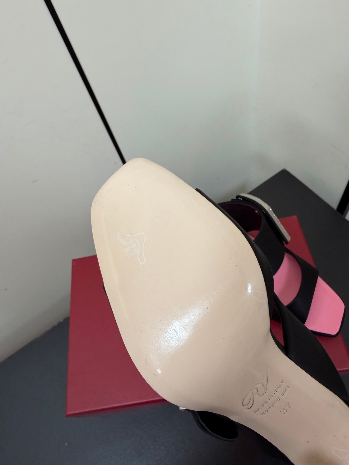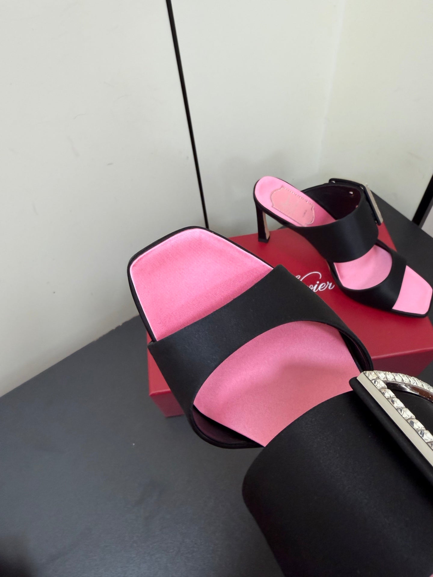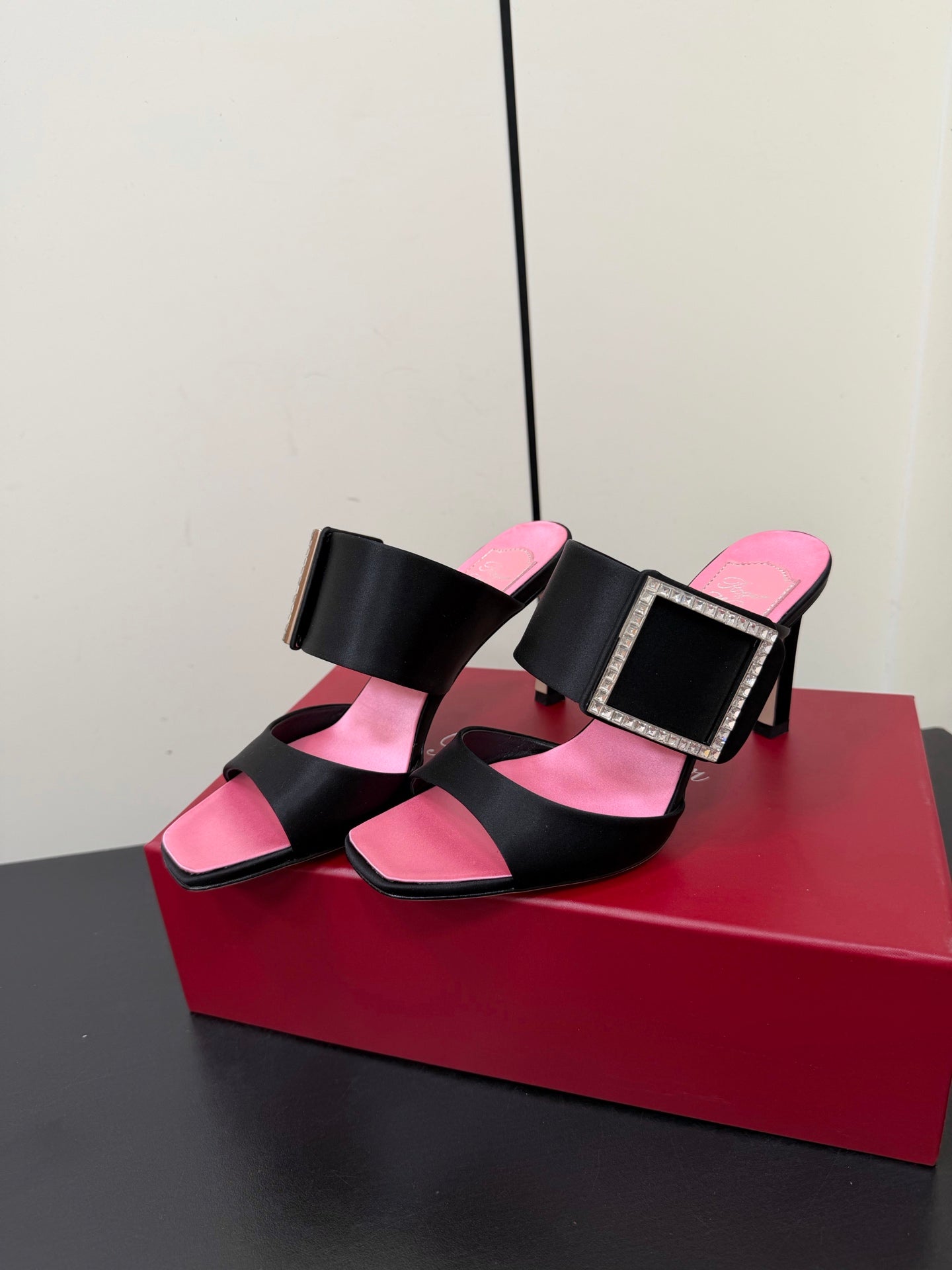 RV Trompette Sandals 8.5cm Black Pink Satin 619599